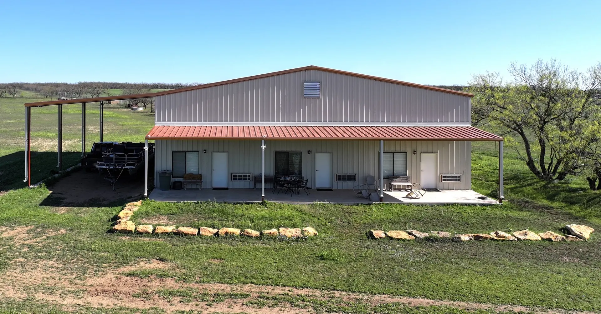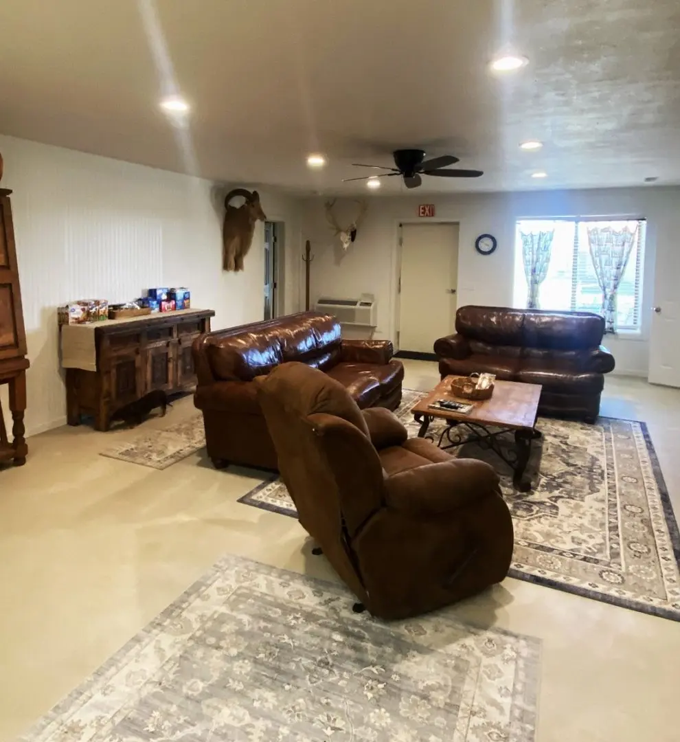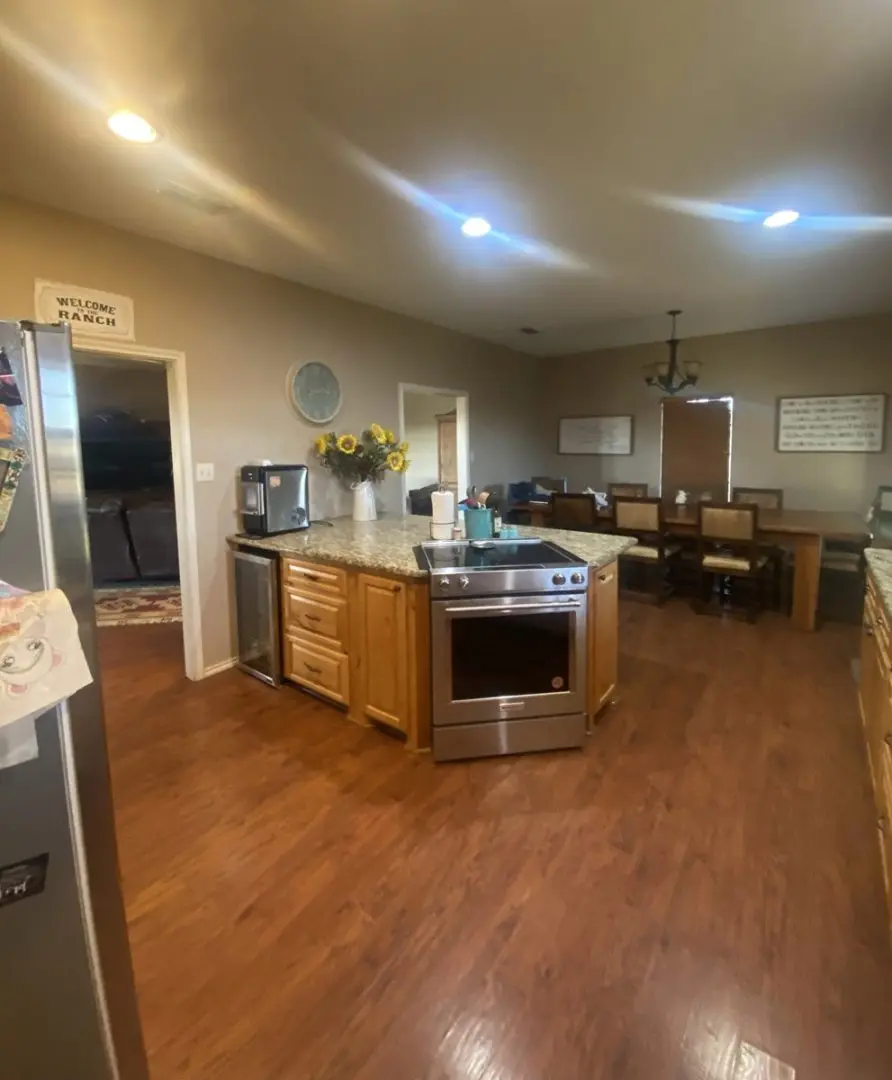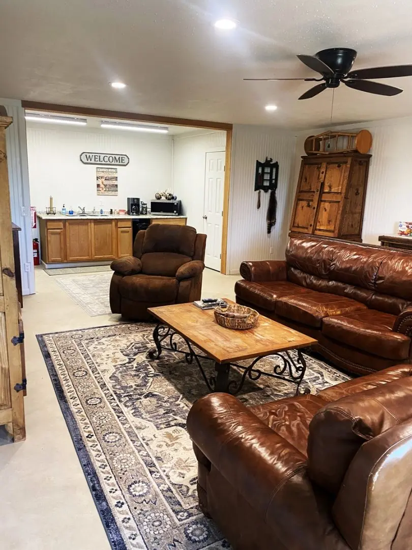 Adding to the allure of this ranch is a 60×60 metal shop building, with a dedicated living area encompassing 1350 square feet. This living space comprises 3 rooms and 2.5 bathrooms, accommodating up to 6 guests per room. A central common area, complete with a small kitchen and a half bath, serves as a gathering place for residents and visitors alike. Furthermore, a 60×20 overhang offers covered parking for RVs, boats, and other recreational vehicles.