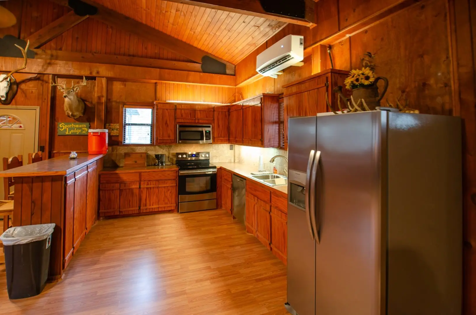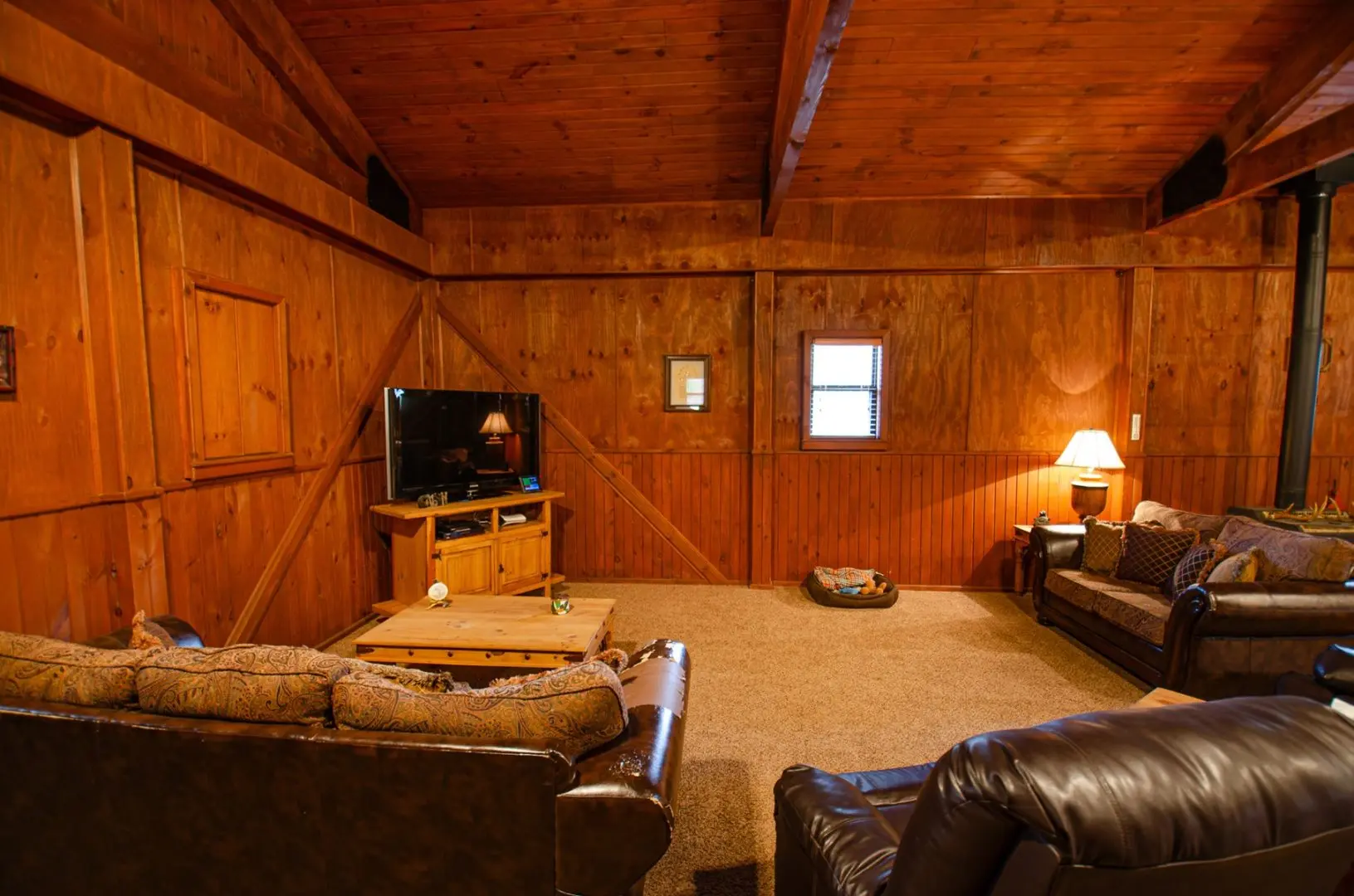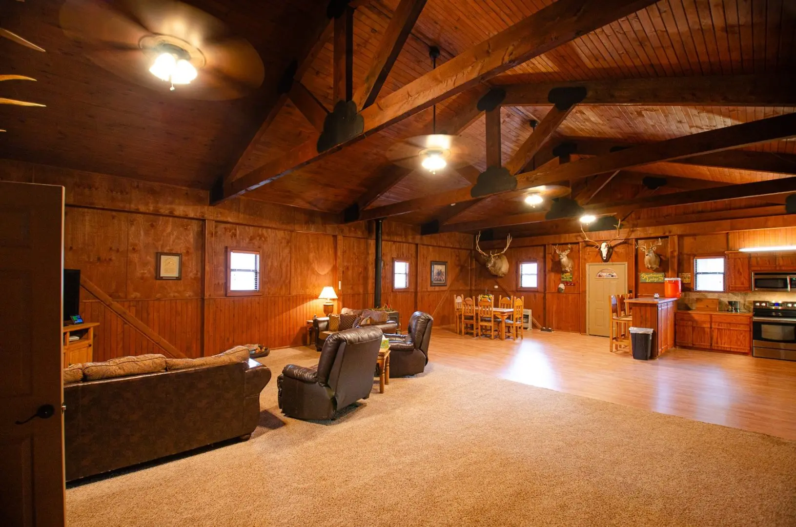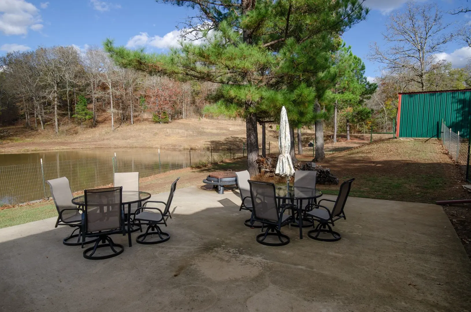 The home is 2100 sq ft, fully furnished, and has three bedrooms and two baths. It has a mudroom with a bench and storage cabinets. There is a covered enclosed patio with a grill, storage, and Refrigerator. There is also a 25 X 25 concrete deck with two sets of patio furniture and an HB 48″ fire pit with grill and shelf. There is a 20KW Backup generator with an auto-transfer switch that will supply all the power in each building.