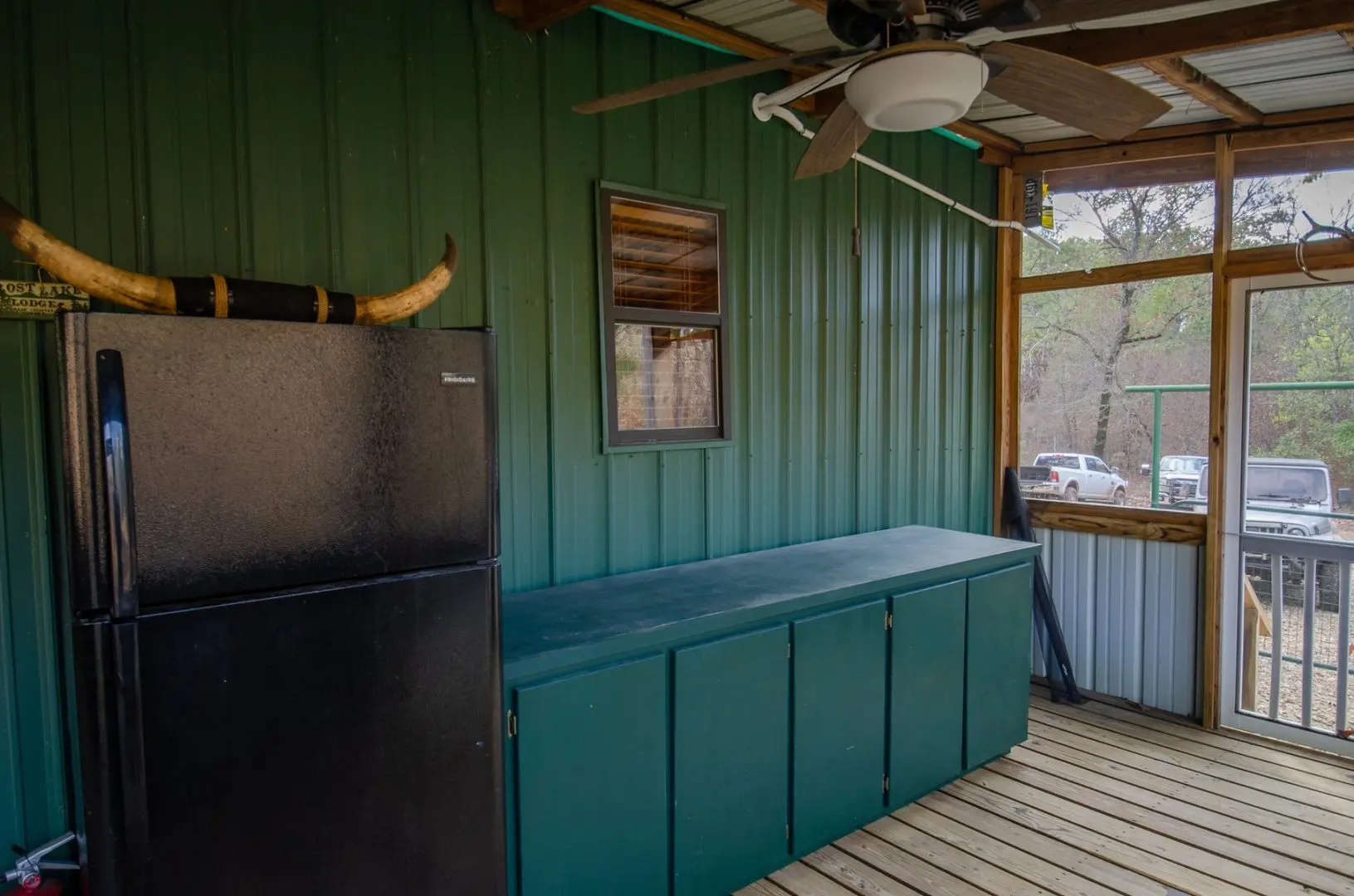 24 X 24 game processing building with a concrete floor with a drain, heated and cooled, water, a game hoist, a chest freezer, and, a refrigerator.