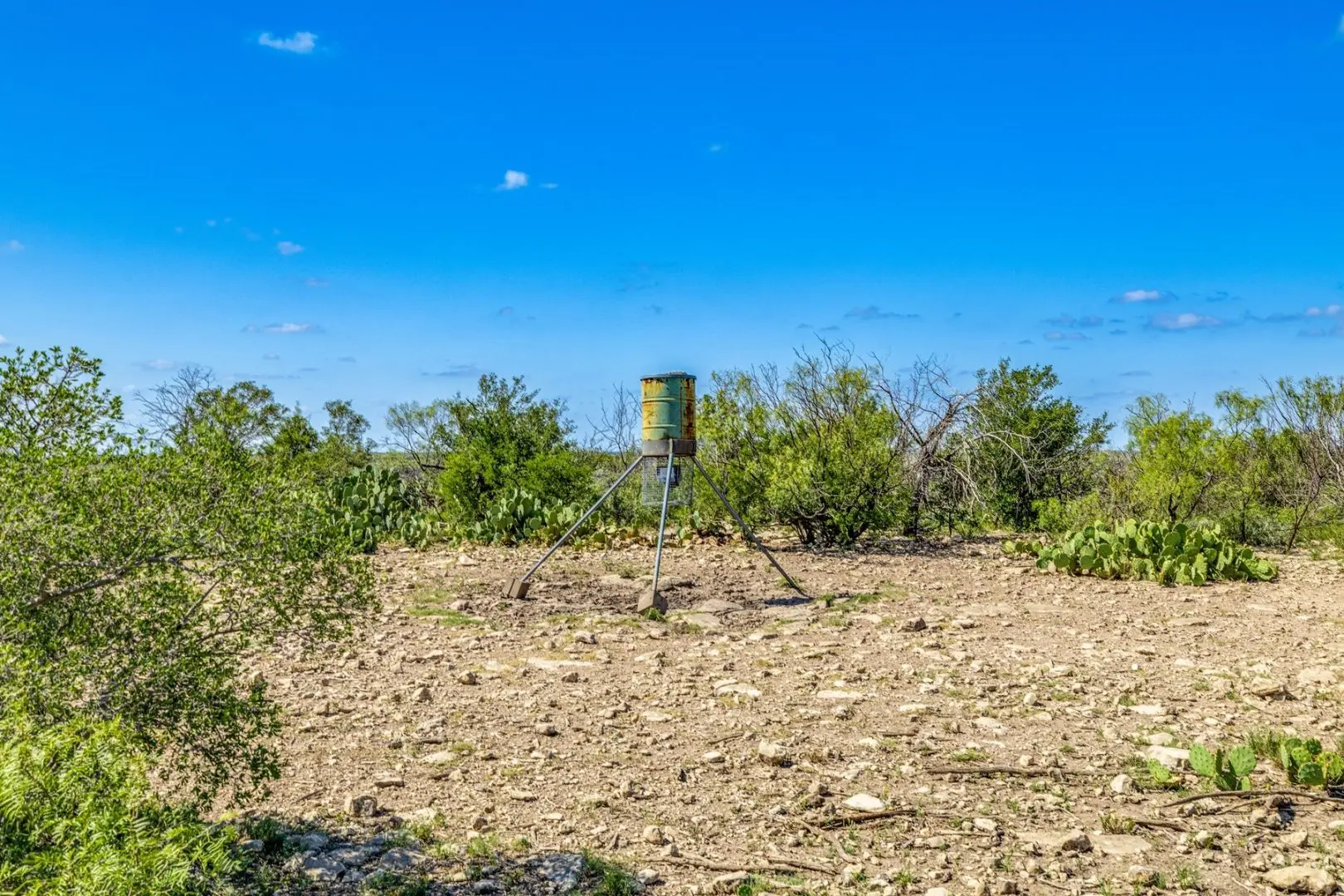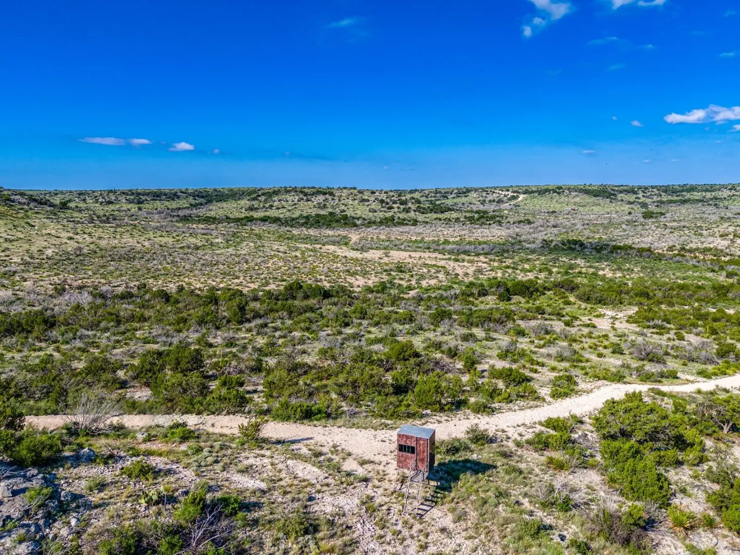 This 700-acre hunting ranch in Ozona is a well-maintained property that is set up great for deer hunting. The topography is very diverse from draw bottom land to high plateaus with plenty of cover for the game. It has a well-maintained road system accessing the property. Included are corn feeders, protein feeders and blinds that are strategically located throughout the property.