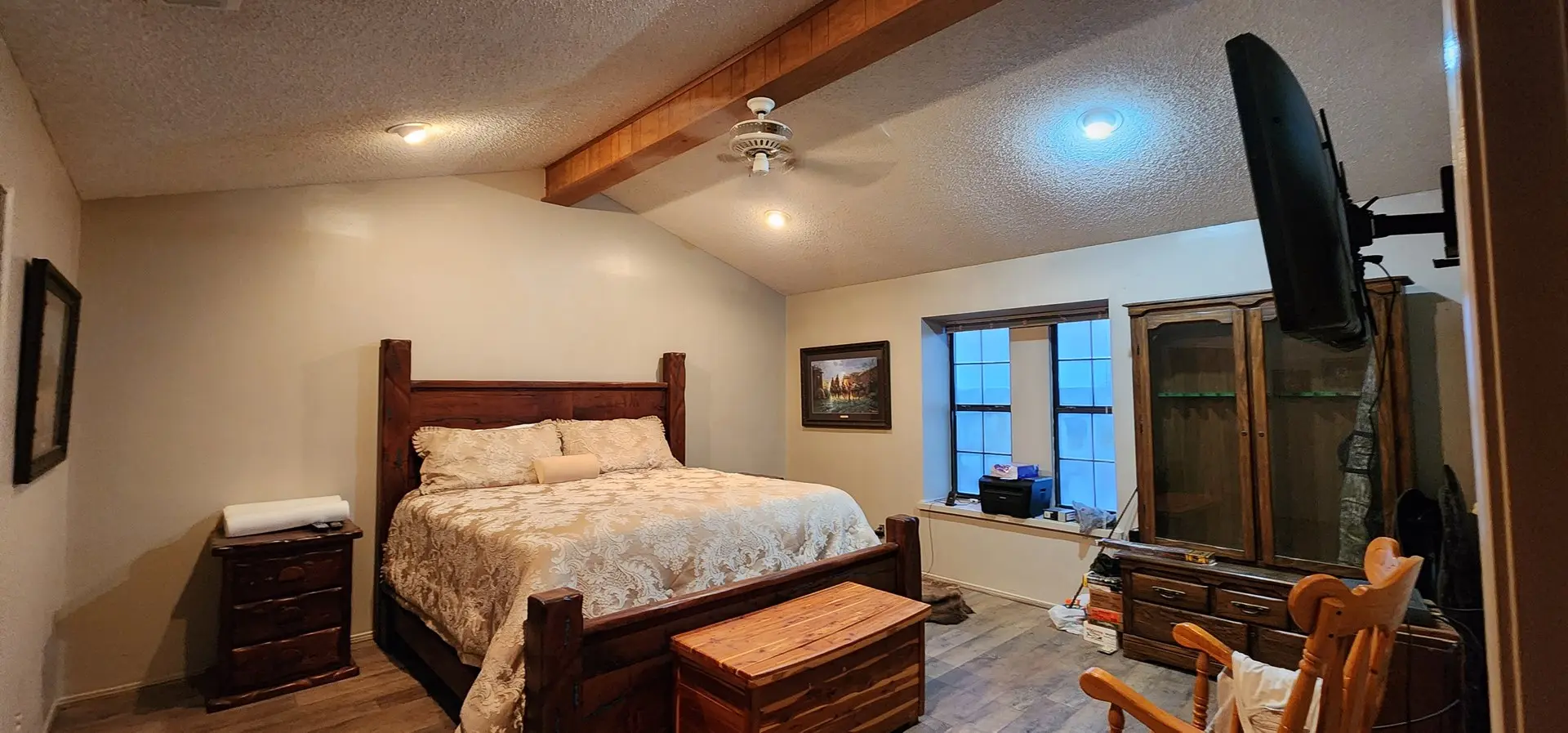 Also in the house trap, there is a set of working pens, a feed house, dog pens, extra lodging on skids, extra storage sheds, a shop, and a nice-sized dirt tank. The larger pasture sits behind the house trap and has elevation changes providing stunning views, food plots, and cover for wildlife. The dirt tanks and drinkers are strategically placed to make use of running draws as well as provide nearby water for all locations of the ranch.