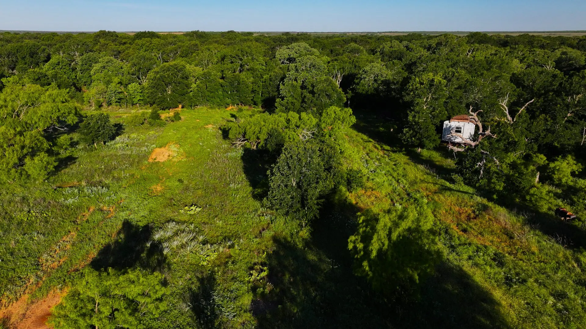 - Tree Cover: 100% native pasture; live oak, post oak, mesquite, hackberry,