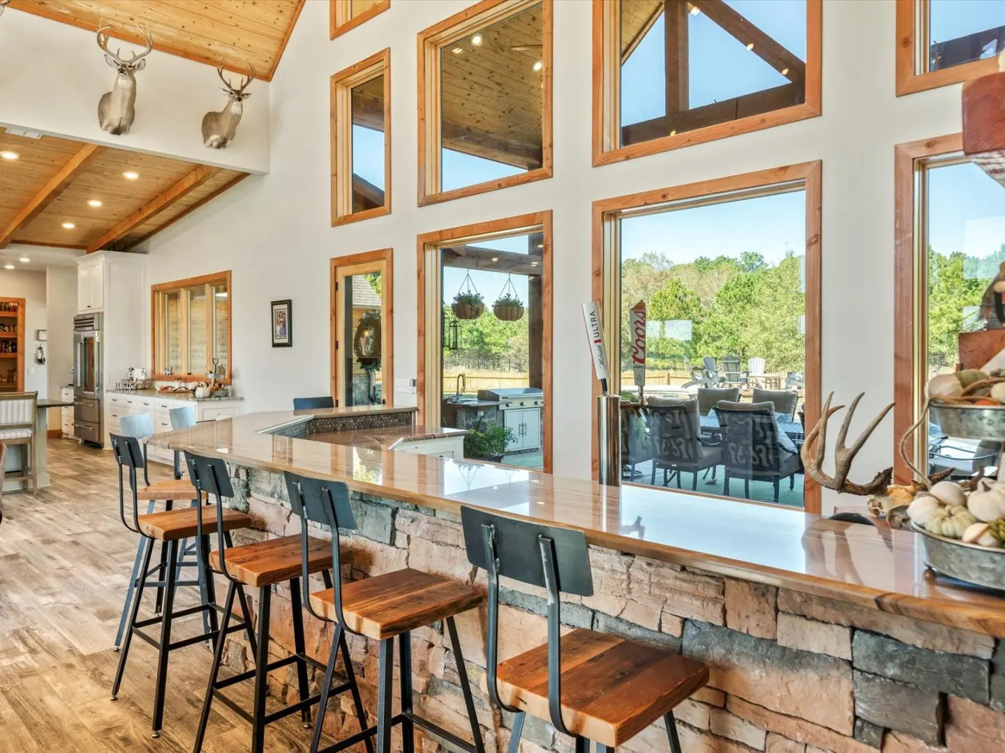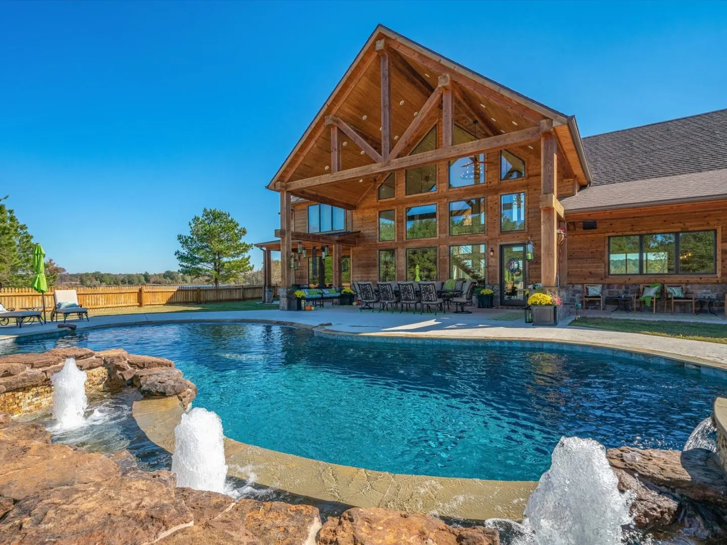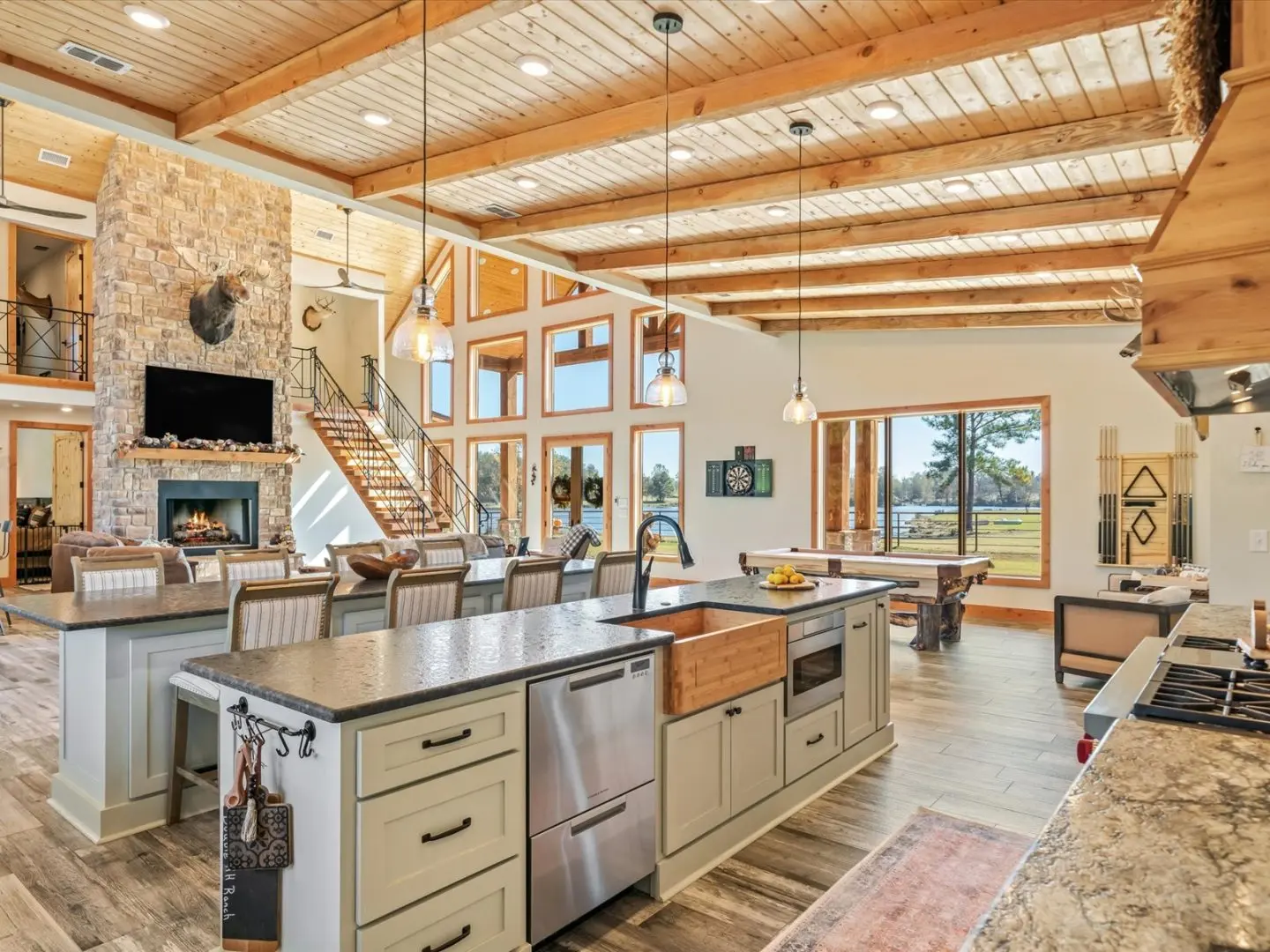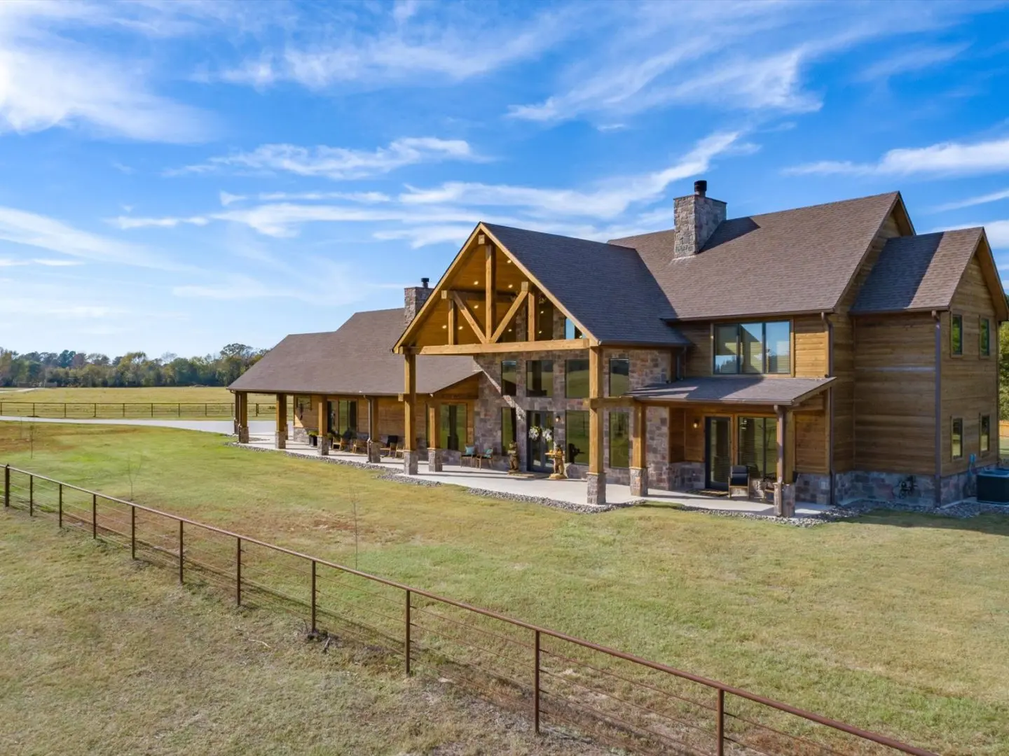 East Texas Game & Cattle Ranch with 1,146 acres of prime, picture-perfect land including a 30-acre lake, 14 small lakes/ponds & a creek! 3 1/2 miles of road frontage on 3 county roads & 1 FM road. 2020 built 5BD/6.5BA home meticulously designed for entertaining & function. Ultimate Lodge Style home features fabulous great room, open concept with stone FP, antler chandeliers, gorgeous bar & gourmet kitchen featuring WOLF range & SS appliances. Split primary en-suite has stacked stone FP & spa like bath with fabulous shower & mosaic tile soaking tub. Spacious guest bedrooms have private bathrooms. Home comes Fully Furnished. Oversized 2 car climate controlled garage with walk in cooler plus 2 car carport. Outdoor amenities include heated salt water pool with spa, water feature & outside grill. 3/2 brick + a 2/2 mobile home on property with separate entries from another county road. Shop, barn & working pens. 1 1/2 hours east of Dallas – DFW. Less than 30 minutes to Tyler.