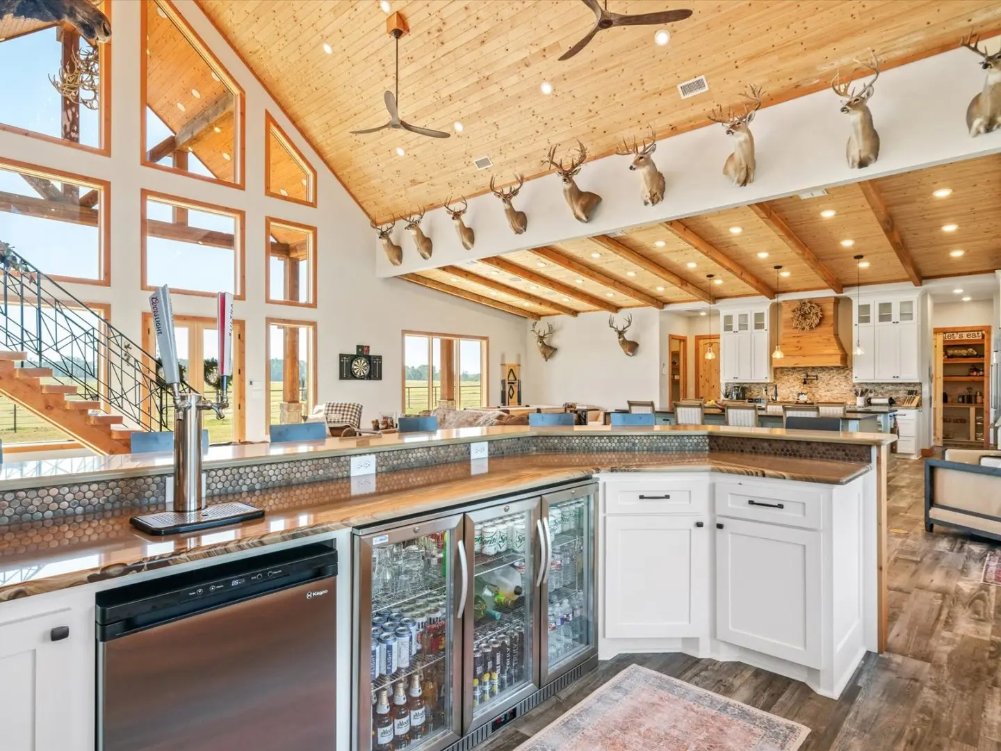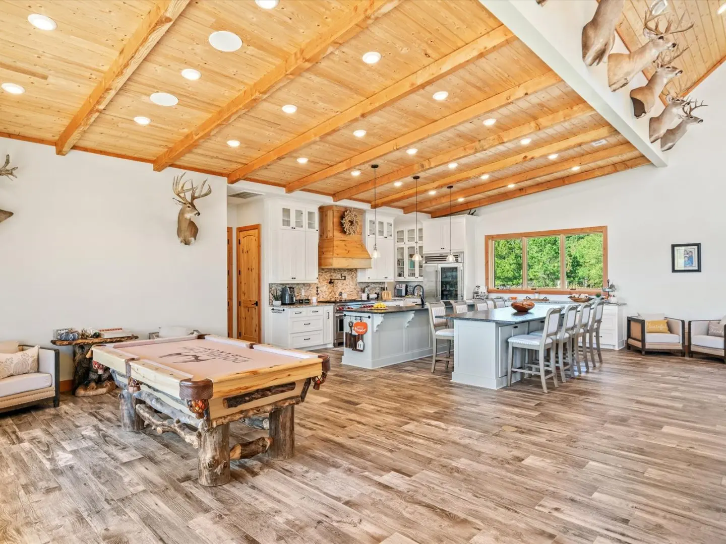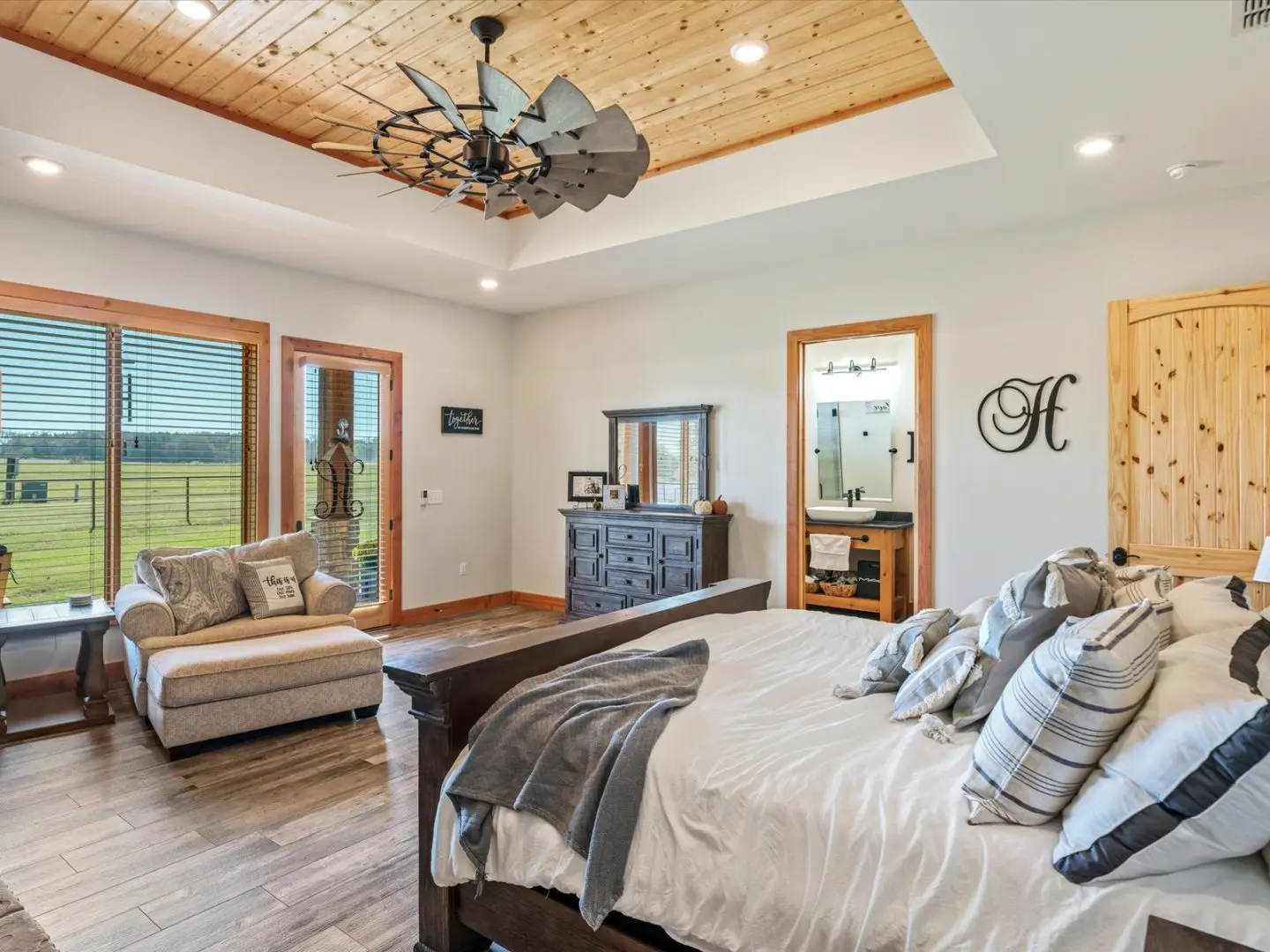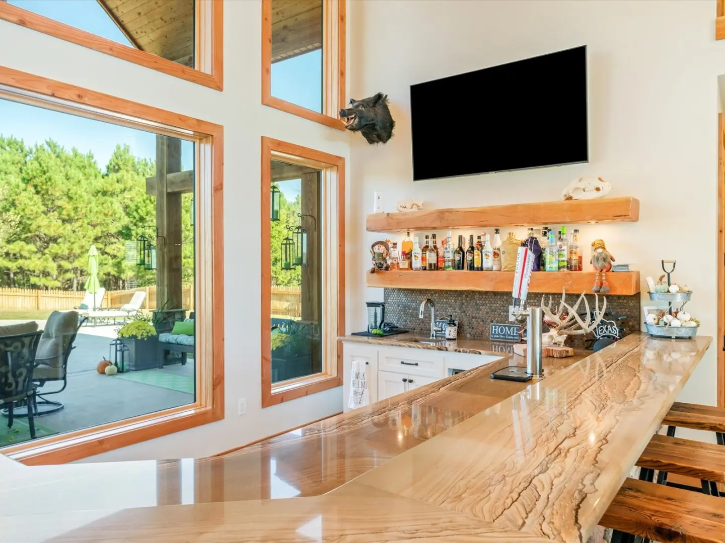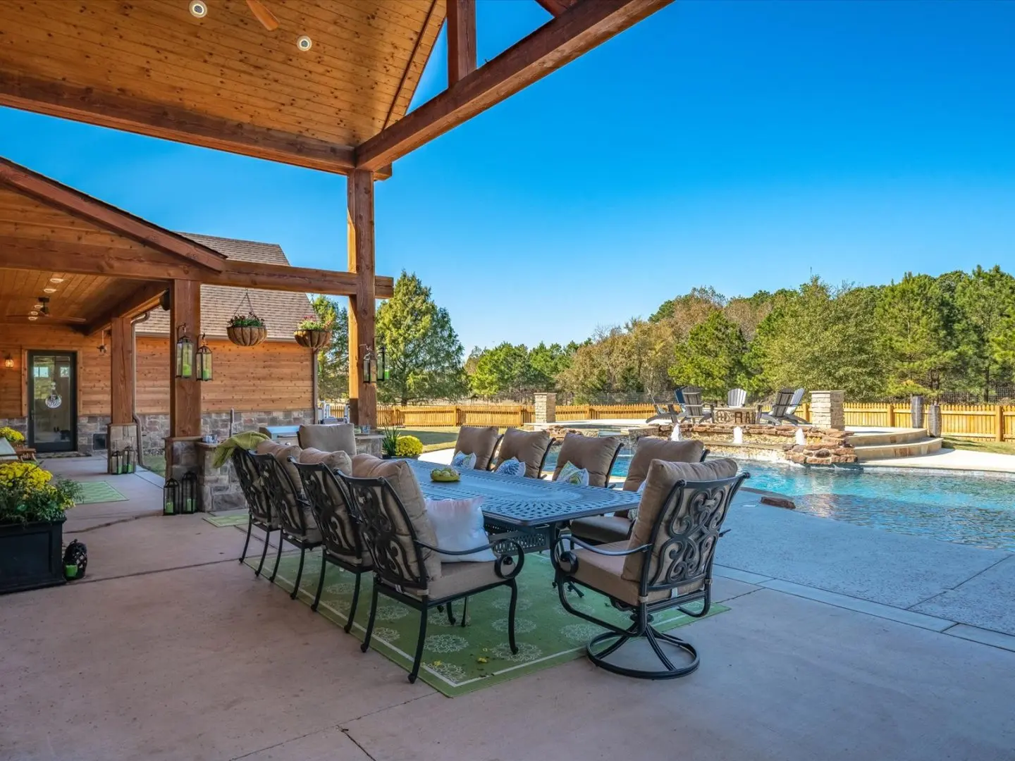 East Texas Game & Cattle Ranch with 1,146 acres of prime, picture-perfect land including a 30-acre lake, 14 small lakes/ponds & a creek! 3 1/2 miles of road frontage on 3 county roads & 1 FM road. 2020 built 5BD/6.5BA home meticulously designed for entertaining & function. Ultimate Lodge Style home features fabulous great room, open concept with stone FP, antler chandeliers, gorgeous bar & gourmet kitchen featuring WOLF range & SS appliances. Split primary en-suite has stacked stone FP & spa like bath with fabulous shower & mosaic tile soaking tub. Spacious guest bedrooms have private bathrooms. Home comes Fully Furnished. Oversized 2 car climate controlled garage with walk in cooler plus 2 car carport. Outdoor amenities include heated salt water pool with spa, water feature & outside grill. 3/2 brick + a 2/2 mobile home on property with separate entries from another county road. Shop, barn & working pens. 1 1/2 hours east of Dallas – DFW. Less than 30 minutes to Tyler.