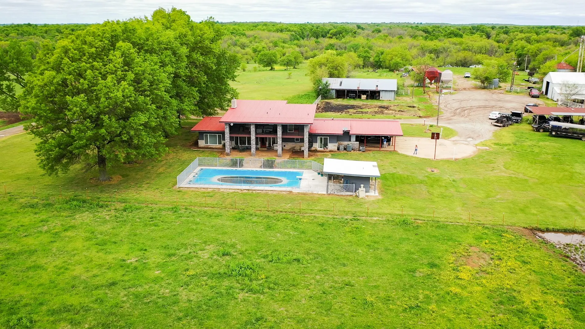 Updated 2-story Home on 200 acres in Oklahoma. This newly renovated ranch home is 5b/3b measuring 5,160sqft. As you enter this beautiful home you will notice its fully custom kitchen, including large granite countertops and solid wood cabinetry. Within this space you will recognize its industrial sized built-in refrigerator and freezer as well as plenty of counterspace for any size get together. Adjacent to the kitchen is a large laundry and mud room, key to any country home, allowing for a great place to take off your muddy boots and hang up your coat. Moving from the kitchen to the living area, you will notice an open concept, allowing for a great space to gather or relax with your family. A master bedroom is located on the main floor of the home. Features of the grand master include a full bathroom, large closet space for him and her and plenty of space in-between for your boots and shoes. A guest bedroom and full bath is also located on the bottom floor. New carpet has been installed in the living area as well as the upstairs. As you make your way up the stairway you will notice this space houses three bedrooms and full bath, each with plenty of space for comfort. A key highlight of this country home is its oversized balcony overlooking the beautiful ranch and large custom pool/ pool house. Contact today to schedule your showing of this one-of-a-kind luxury estate!