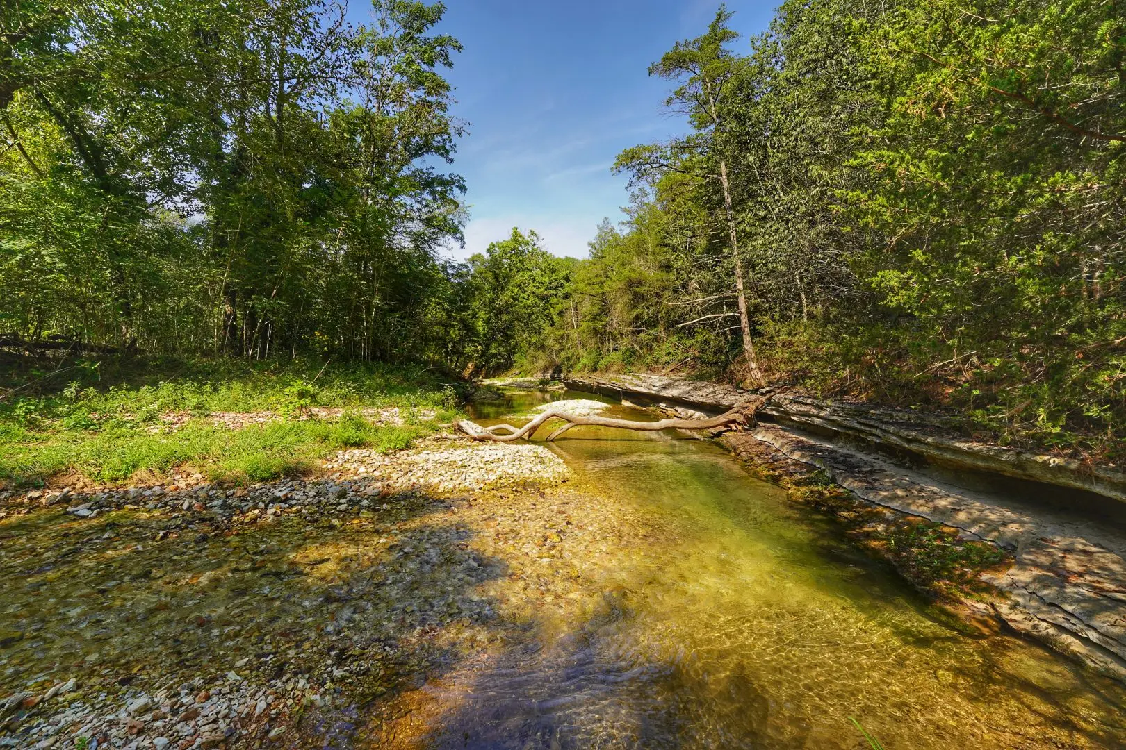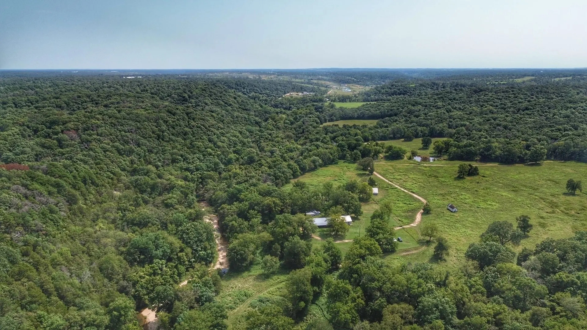With an established homestead, lodge, and barn already in place, this farm/ranch for sale in Benton County AR is ready for cattle, horses, or other ventures. The blend of open pasture and wooded acreage also creates excellent wildlife habitat, making it highly attractive for those seeking hunting land in Northwest Arkansas.