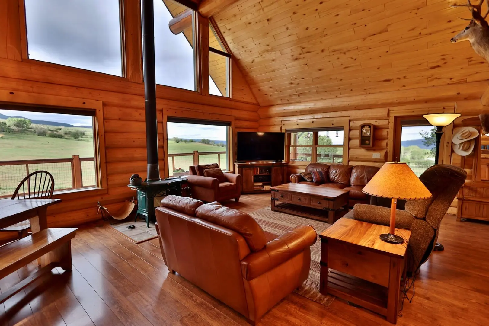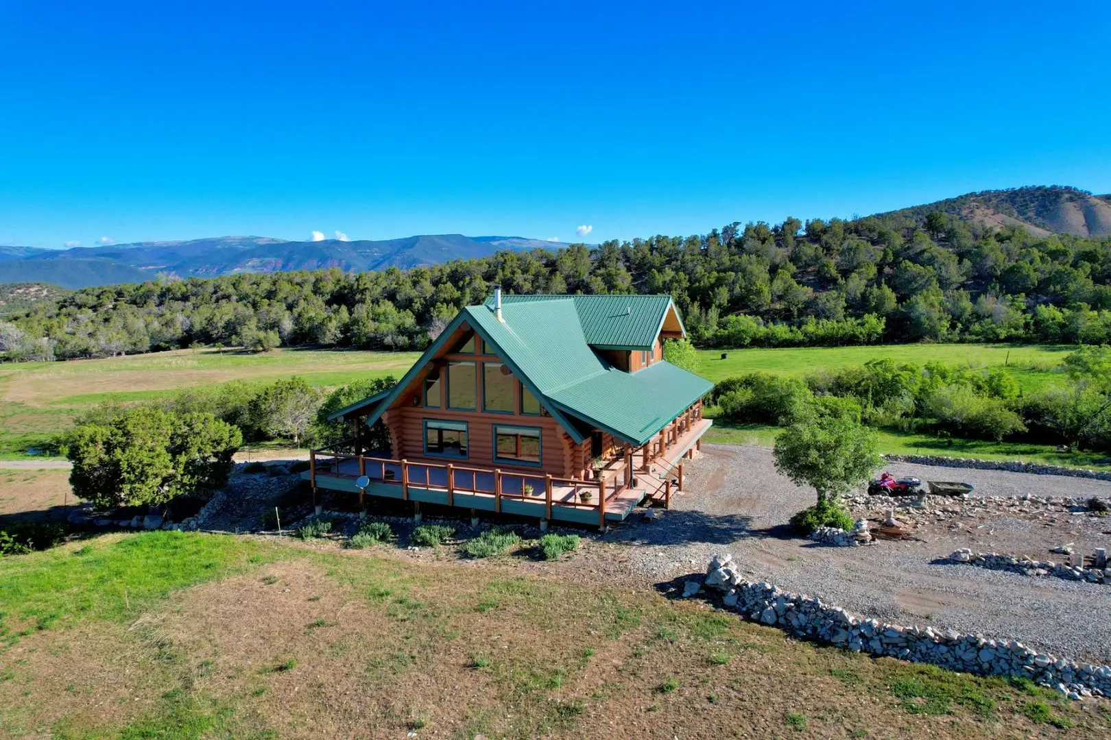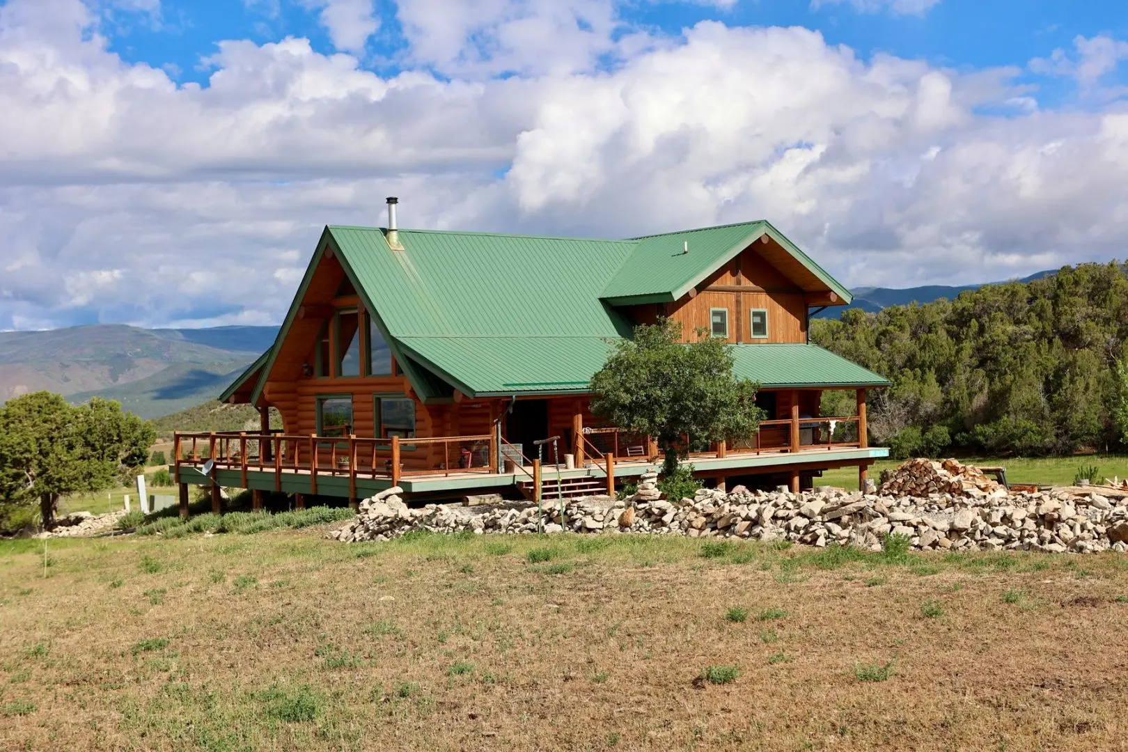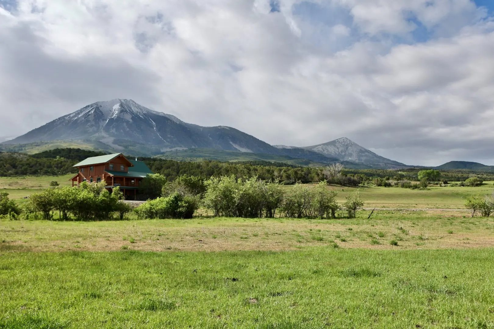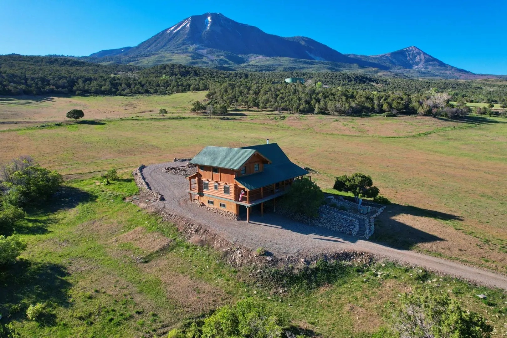 CO log home for sale has stunning views of the West Elk Mountains and Mt. Lamborn