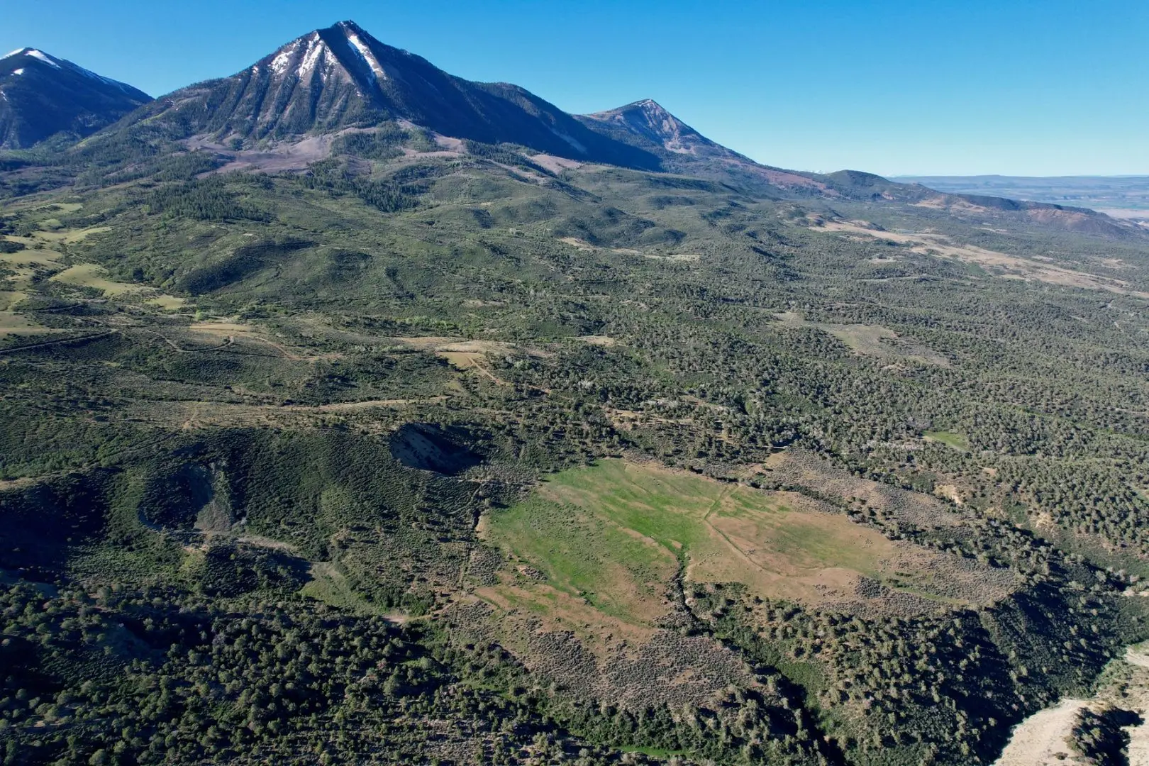 German Creek flows off the slopes of Mt. Lamborn through the ranch, which owns 1,858 shares of the Lone Cabin Ditch Company. In turn, the Lone Cabin Ditch company owns shares of two different reservoirs further up the mountain—3/16 of the Minnesota Reservoir and 1/16 of Beaver Reservoir. Additionally, the owner of the ranch has filed on two different springs popping up on the ranch, and owns a good well also. Water resources are so strong on the property that the Town of Paonia filed on a spring on the south side of the ranch and built a storage tank and therefore gave a domestic water tap to the ranch. The ranch currently has adequate water to irrigate about 60 acres, but the Natural Resources Conservation Service (NRCS) just approved an $8 million grant to pipe the Lone Cabin Ditch, which should double the amount of water available to the ranch. It should be possible to irrigate several meadows above the ranch to provide more grazing and improve wildlife habitat.
