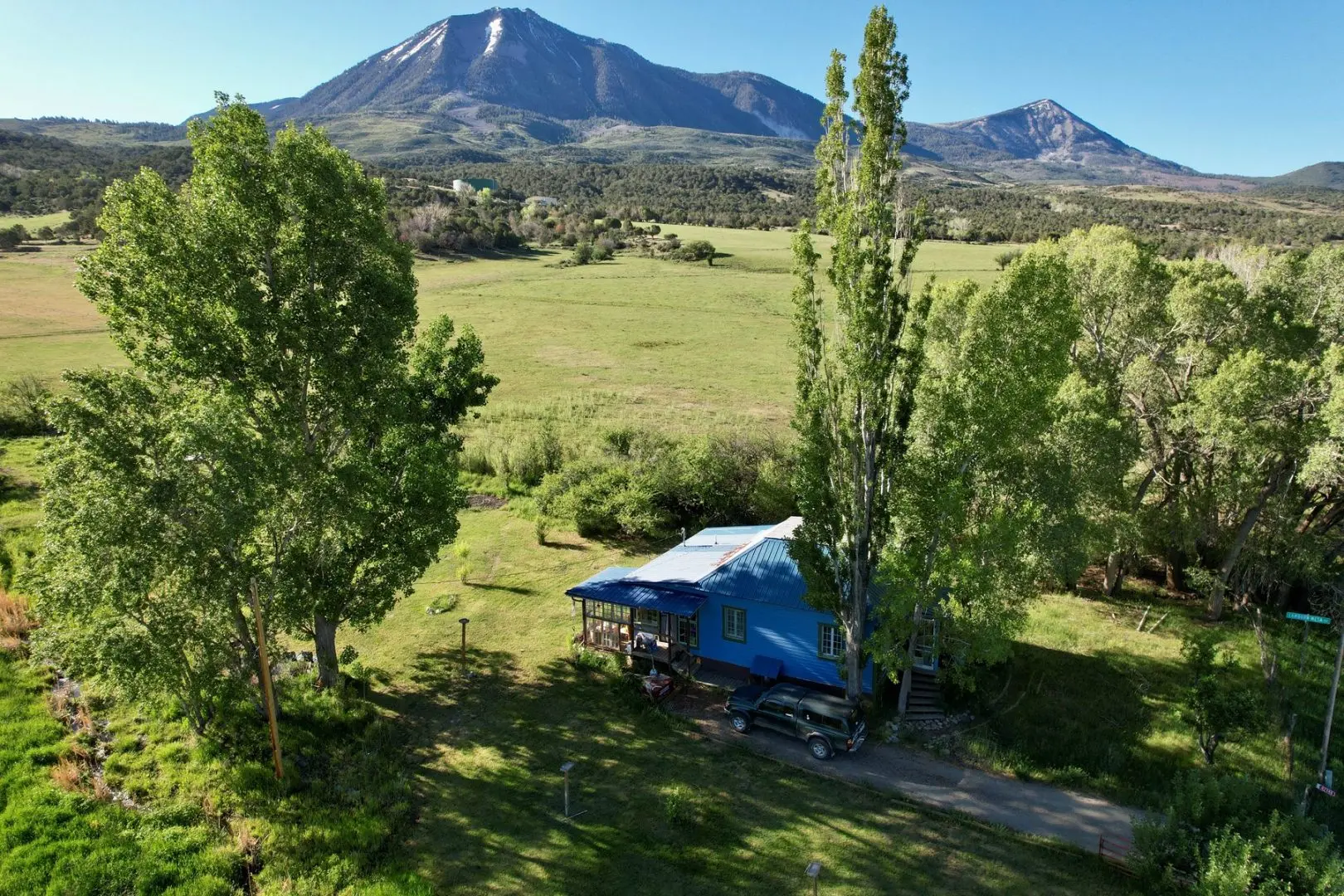Paonia is a funky little mountain town situated on the west side of McClure Pass between Aspen and Crested Butte. It is known for its mild climate, with local vintners and orchardists growing apples, pears, plums, cherries, wine grapes, peaches, and apricots. Paonia is a hotspot for organic farming, with farmers raising honey, melons, garlic, hemp, lamb, beef, goats, garden vegetables, and even such crops as eggplant and artichokes. While Paonia is at 5,700 feet in elevation, this property is situated less than 3 miles southeast of town, right at the base of Mount Lamborn. The home sits at 6,300 feet and enjoys cool mountain thermals coming down from Mt. Lamborn on a warm summer night. Paonia is a vibrant town with a K-8 school, a couple of banks, several restaurants and brewpubs, quite a few churches, a couple of liquor stores, and a thriving business community. Paonia has a good paved airstrip with refueling services. Many private jet pilots stop off in Paonia on their way to Aspen because fuel is cheaper there.