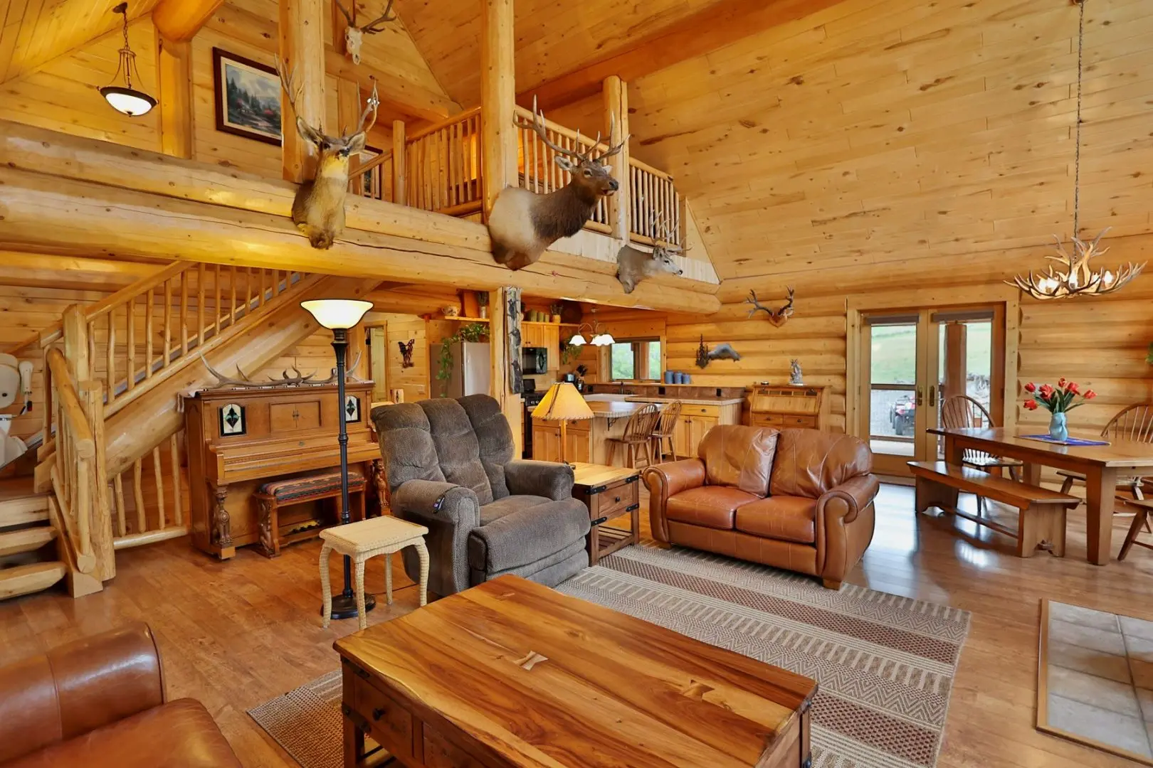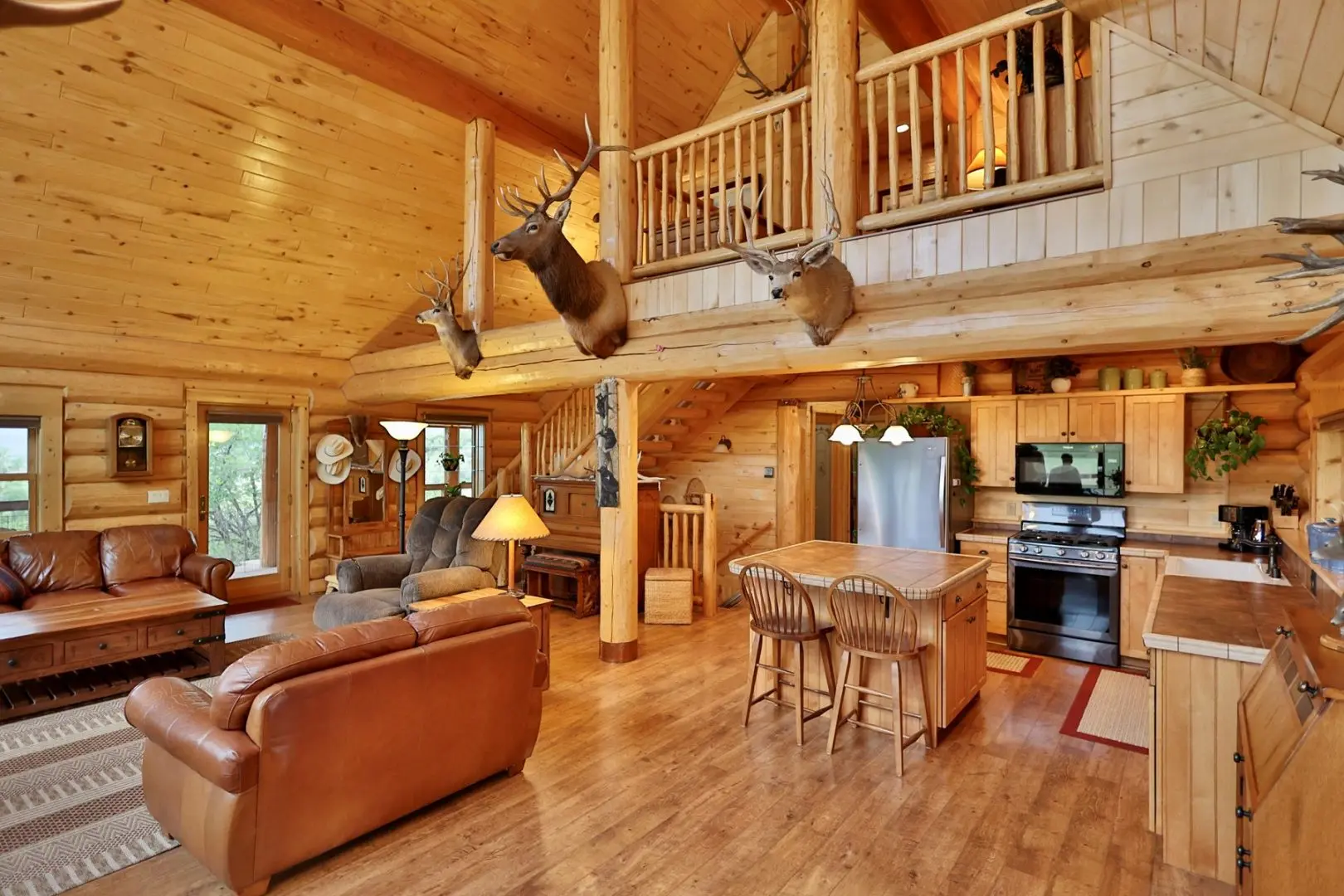 - Beautiful 2,100-square-foot custom log home w/3 BR, 2 BA