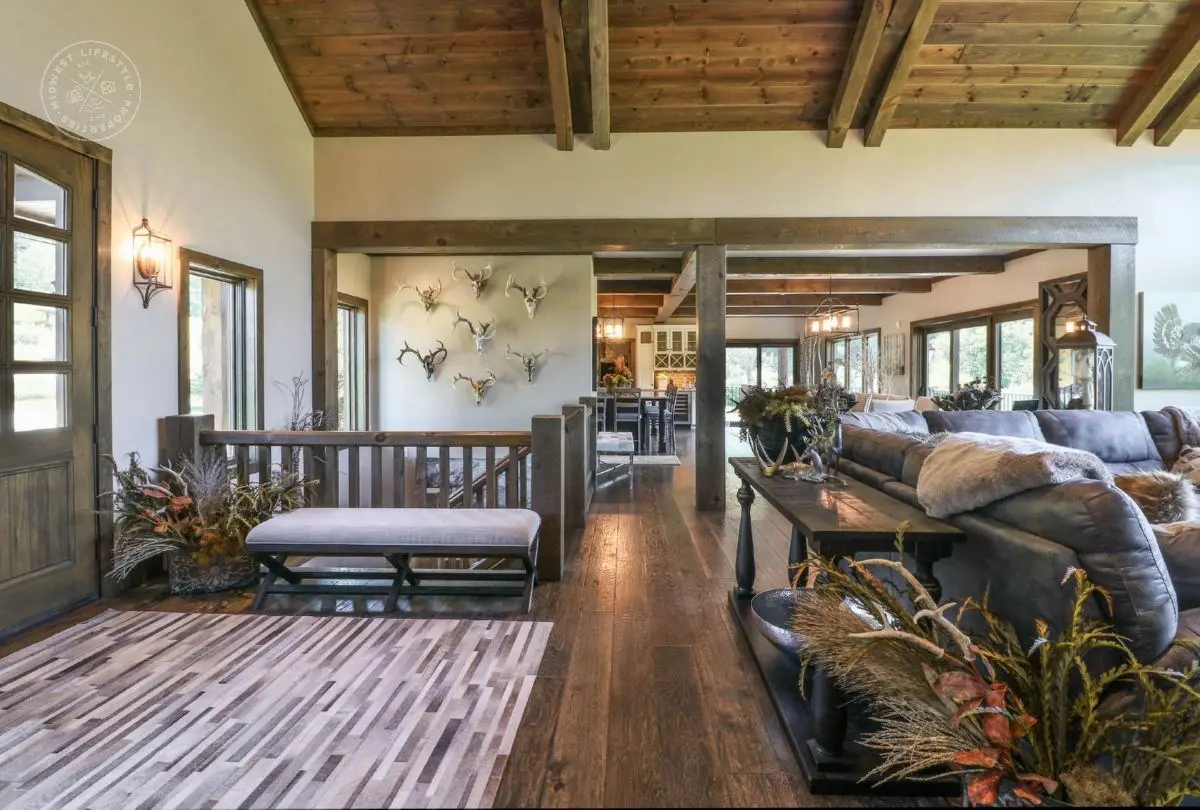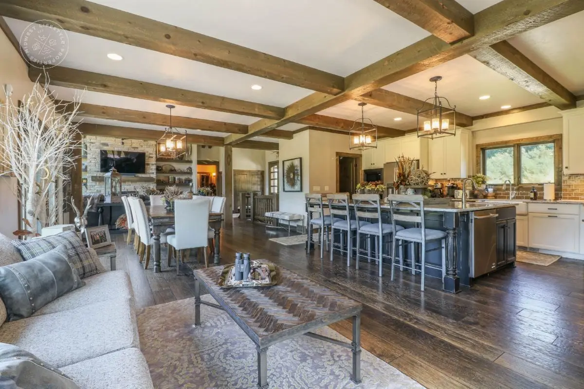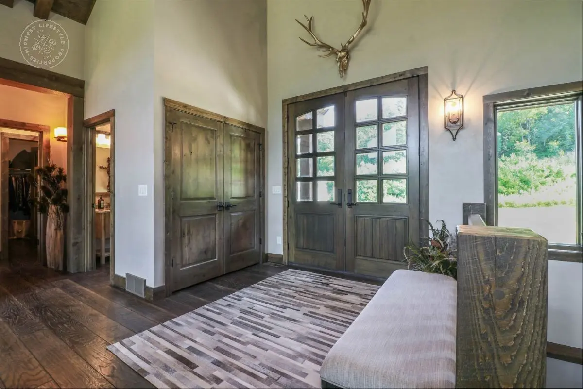 Enter the domain from a securely gated half-mile gravel base driveway that bisects two sky-high ridges. This tucked-away valley setting capstones seclusion and accentuates tranquility. Recognizing this ideal location, no expense was spared to create the setting for the massive nearly 6,000+/- sq ft lodge built in 2016, which is truly an architectural wonder. Rustic elegance is on full display within the estate, which affords 6-bedrooms, 6-baths, theatre room, 4-stall attached garage, east wing guest quarters and so much more. Perfect as a family or corporate retreat, the property can easily and comfortably accommodate 16 or more overnight guests, who will be treated to world-class amenities.