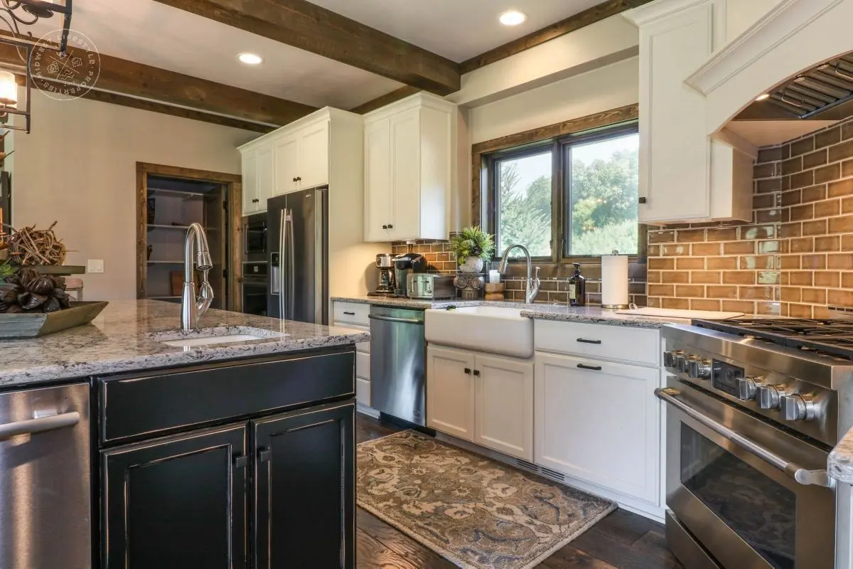 An attached garage provides (4) overhead entry doors as well as (2) rear side exit doors fully heated with a Sterling GG Series low-profile gas-fired heating unit that’s highly efficient and offers ‘inshot’ burner technology. The garage is fully drywalled, surfaced with concrete, in-floor drains and a utility sink.