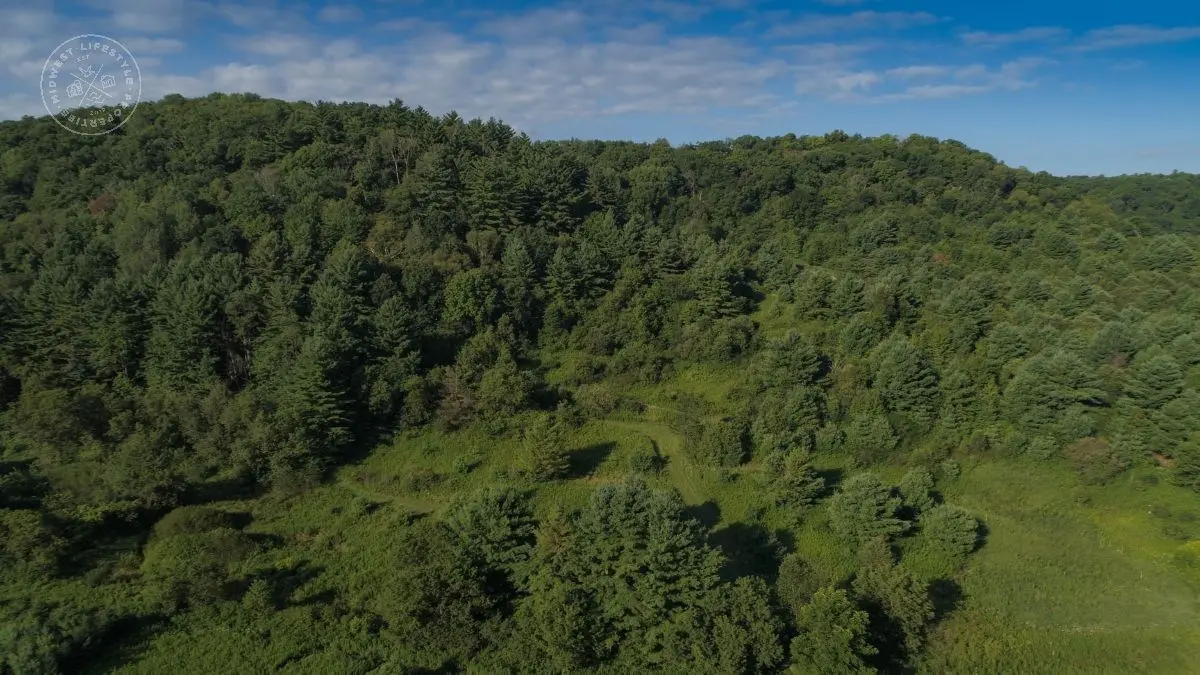 A natural spring near the southerly end of the property continuously feeds the centrally located pond. There’re 12-distinct main ridge systems that warp the landscape into a heavenly formation of ecstasy. In size, the land extends nearly 2-miles from east to west and over a mile north to south encompassing an array of hardwood timber, thousands of apples trees, stunning rock outcroppings and open meadows.