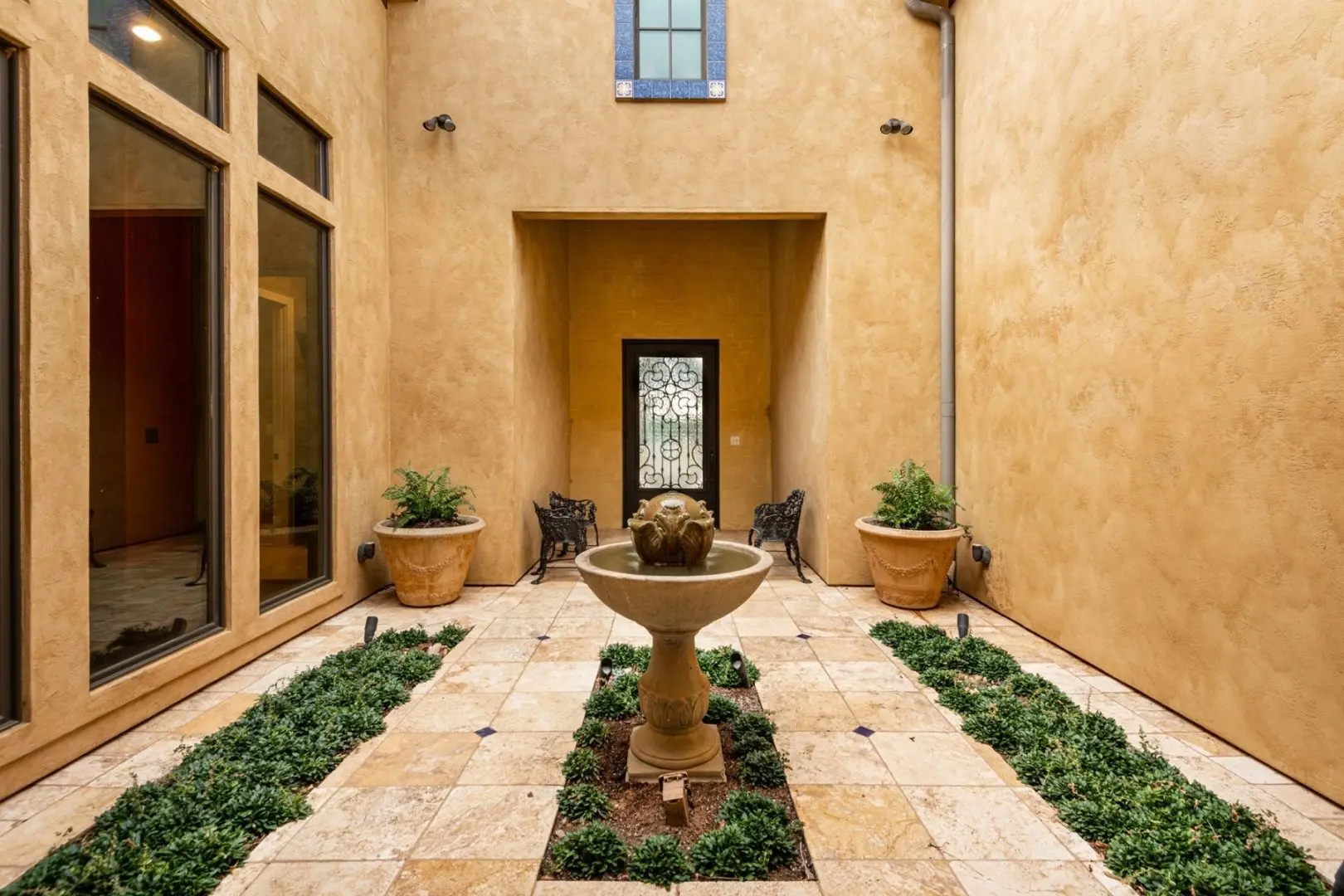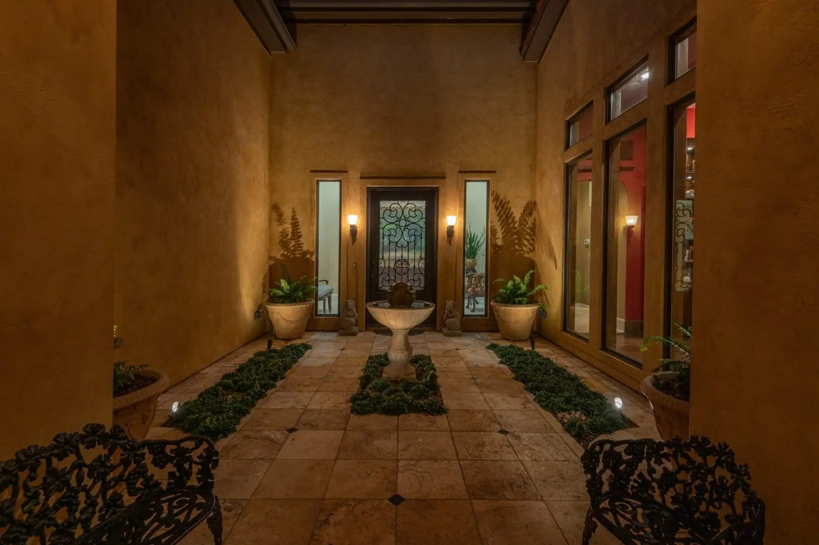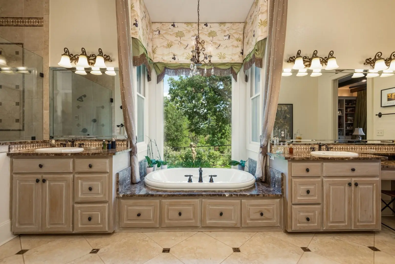 The gated entry ensures privacy on your East Texas Luxury Ranch, which is fully fenced and cross-fenced, including pipe and barbed wire. The winding paved entry road leads to the home’s front entrance circle drive. The Luxury Spanish Hacienda sits high atop a hill, majestically overlooking panoramic views of the pastoral landscape with manicured pastures, a hay meadow, woodlands, a 3-acre lake, and a 1-acre pond. Quality craftsmanship, creative design, superior materials, and careful attention to detail are evident in one of East Texas’ finest homes.
