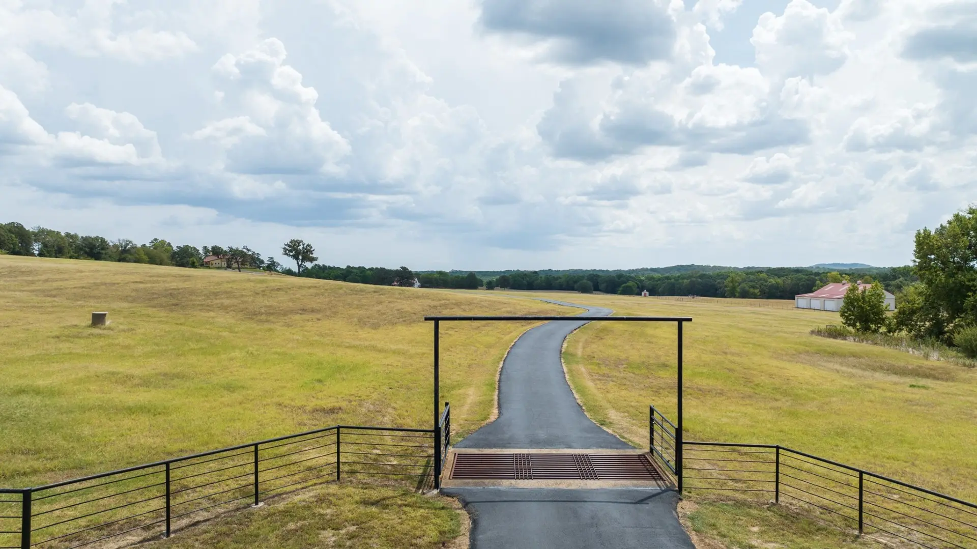 Cattle graze native and coastal Bermuda in the pastures on the Upshur County ranch for sale with Tifton 85 in the productive hay meadow. Much of the perimeter fencing is pipe fencing with a portion of barbed wire. The cross-fencing is a combination of pipe and barbed wire. There is water in each pasture for livestock and wildlife. A large barn with sliding doors on each end offers plenty of storage for hay and other ranch equipment. The barn design allows for the easy addition of horse stalls on one side, while the arrangement of the pipe cattle working pens provides easy access and flow of livestock.