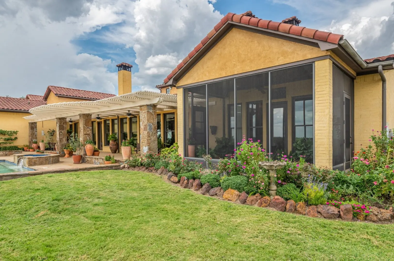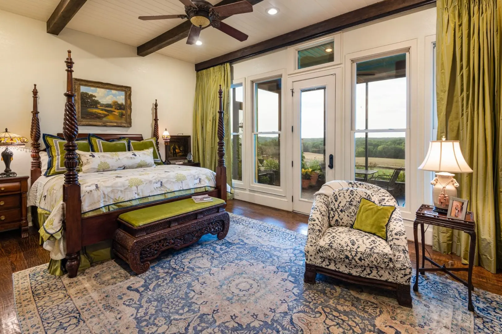 The 3-bedroom, 3.5-bath Texas country estate provides sophisticated and classic accommodations for your family and guests. The large wall of windows captures abundant natural light and extraordinary views of the ranch land from all bedrooms and the family room. The tall ceilings lend an additional sense of openness to the spacious rooms. Practical amenities like the screened porch off the main suite and guest rooms, a laundry room, and a security system add convenience, value, and peace of mind
