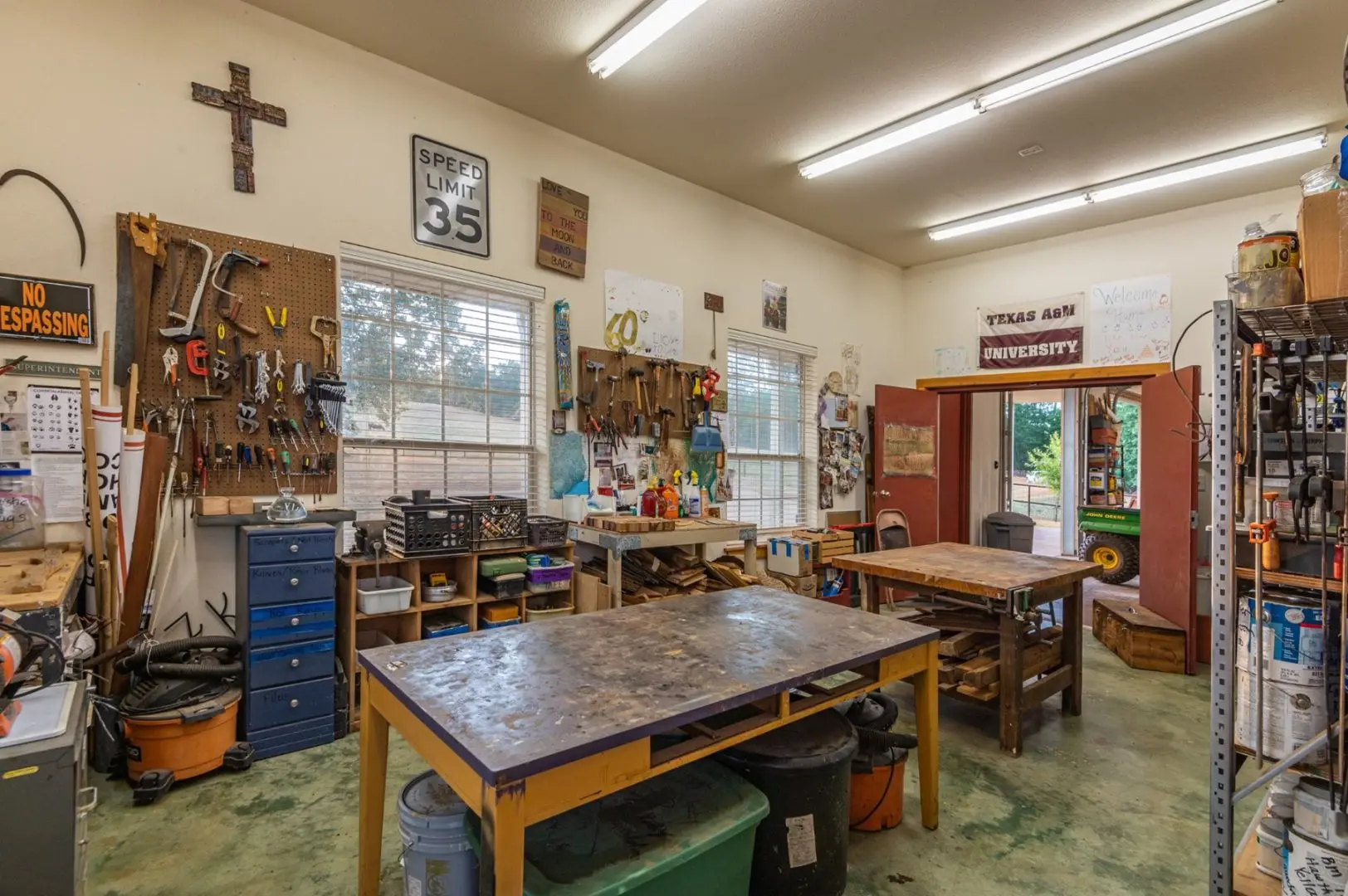 Offer private accommodations for visiting family or friends at the separate Barndominium Guest house on Byrd Ranch. The barndo features four bedrooms, living room with fireplace, lovely kitchen, and an additional climate-controlled storage area. Sit on the front covered porch and enjoy views of the 3-acre lake and rolling pasture land. There is an outdoor kitchen with a gas grill, cooktop, sink, and granite food prep area for outdoor fun and entertaining. The attached shop and equipment storage area includes four rollup doors with electric openers. Pipe fencing with hog fence protection surrounds the entire guest house area.