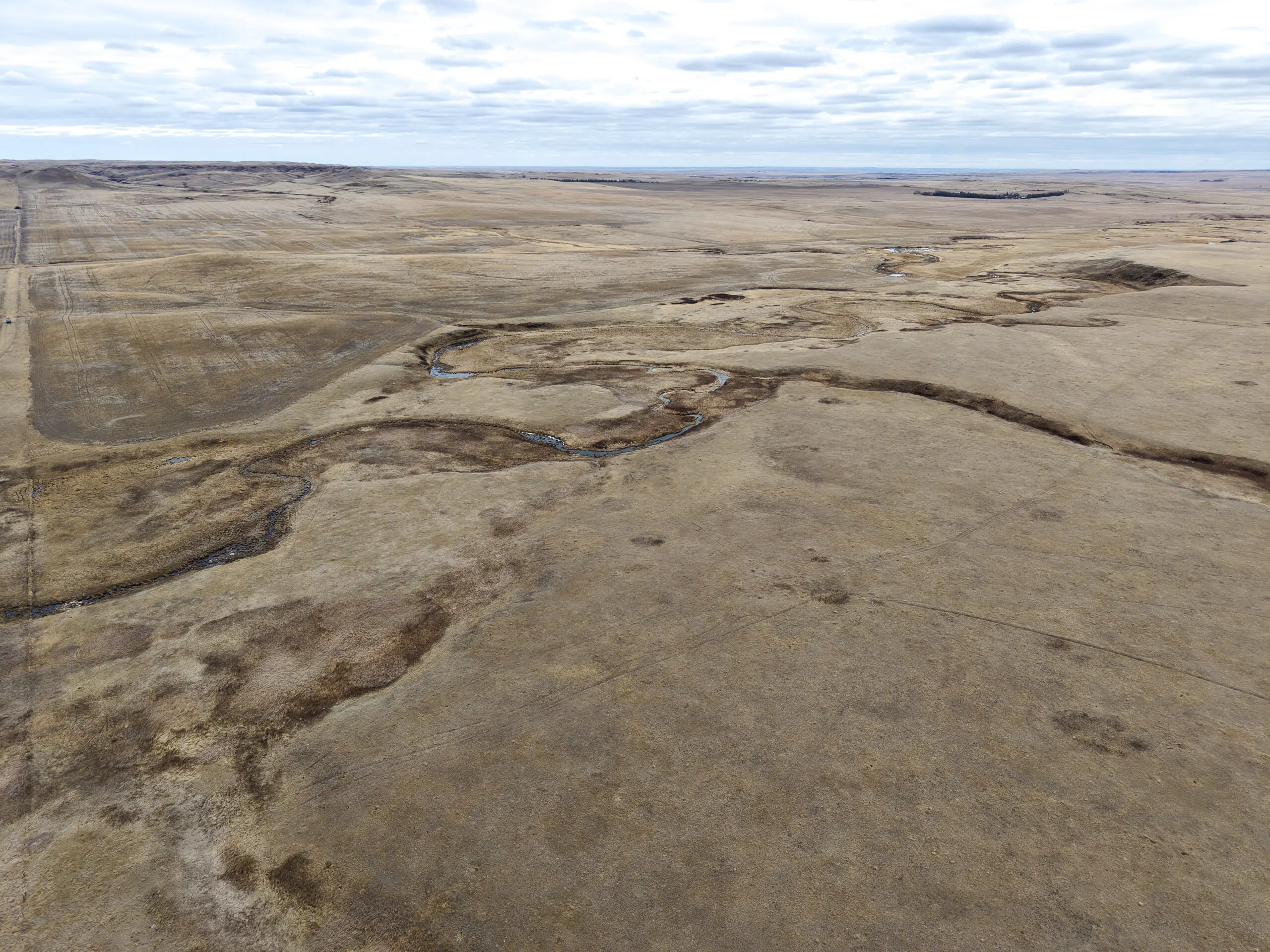 One of the defining features of this property is Malcolm Creek, which winds for approximately two miles through the farm, creating a rare combination of sub-irrigated dryland hayground and productive creek bottom habitat. In an area where dependable water sources can be limited, the presence of Malcolm Creek significantly enhances the agricultural and wildlife value of the property. The creek corridor supports lush grass stands and naturally sub-irrigated soils, producing quality dryland hay and grazing forage that is difficult to find in many parts of Sheridan County.