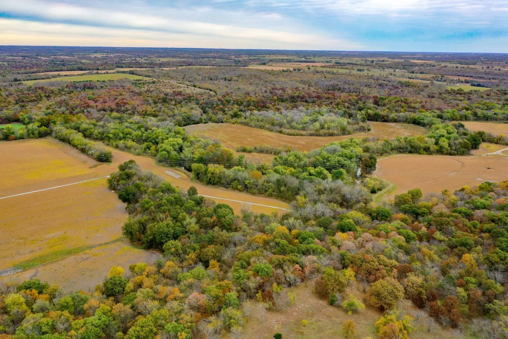 GENERAL DESCRIPTION: Outstanding wildlife habitat development and improvements have been made on this farm over the years. Consisting of 972+/- acres of rolling timber, pasture and cropland make this property one of the finest hunting farms we have seen to date. This property consistently produces monster whitetails and is loaded with turkey and a variety of other game. Strategically placed feeders and tower blinds around the property allow an avid hunter to manage variances in the wind direction and climate conditions. The property is served by improved rocked roads and careful consideration has been given to tract selection and lot splits for this auction. In addition, the property has multiple streams of revenue stemming from oil & gas production, home rental, marketable timber, and crop production. This property is one of the finest investment farms in Miami County, Kansas with huge investment potential.