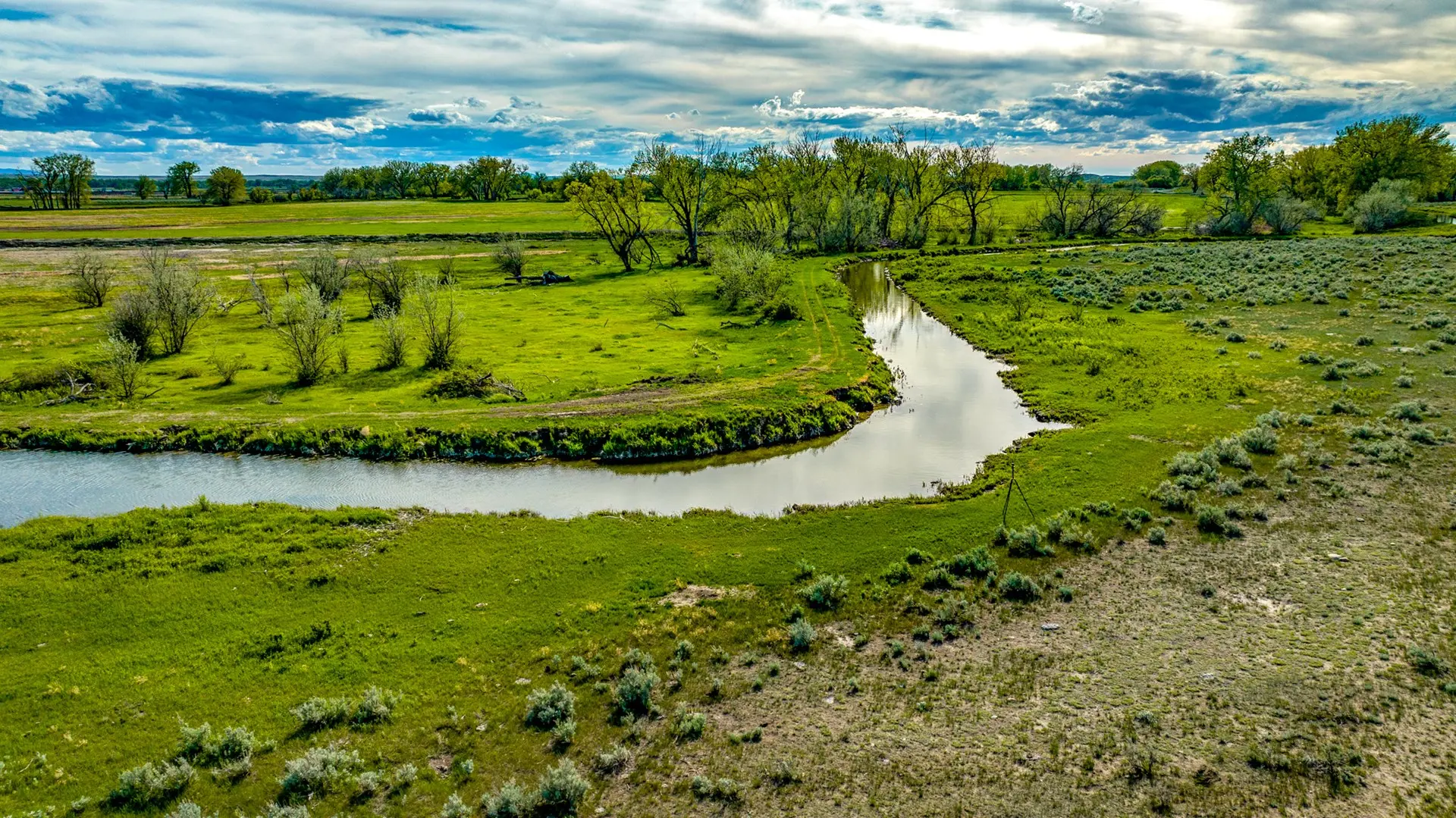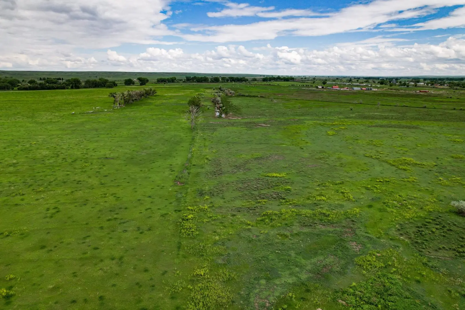 The west unit consists of 2,586± deeded acres, of which 259± acres are irrigated by the Dodson Pump Canal. The western unit of the ranch boasts nearly 9.5 miles of Dodson Creek running the length of the unit; water pockets in the creek typically hold water year-round. There is a large dam on the north end of the property and another on the south, with a well located halfway up the Dodson creek service by a new solar pump. A 400 gallon per minute well is located on the south end of the property on the edge of the irrigated acreage that has not been utilized. The west unit is allotted 259+/- acres of ditch rights associated with the North Dodson Irrigation System and typically gets 2 or 3 irrigations per year. The irrigated acres on the west unit have been utilized for grazing purposes.