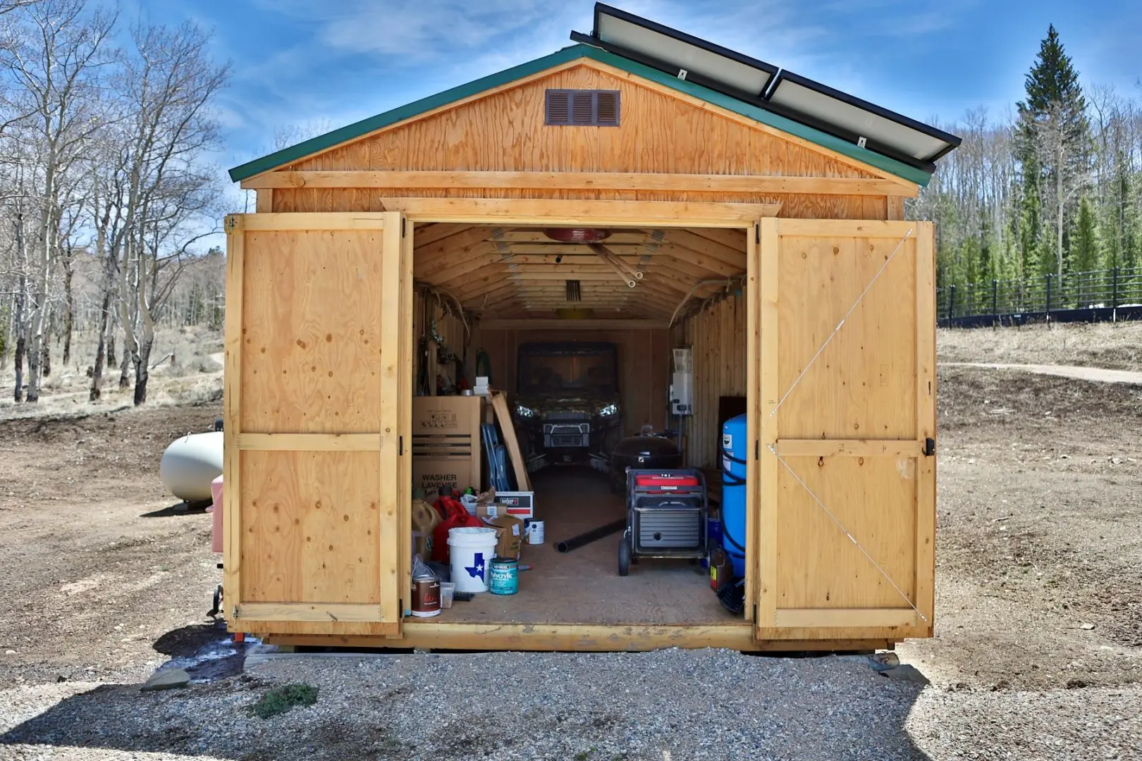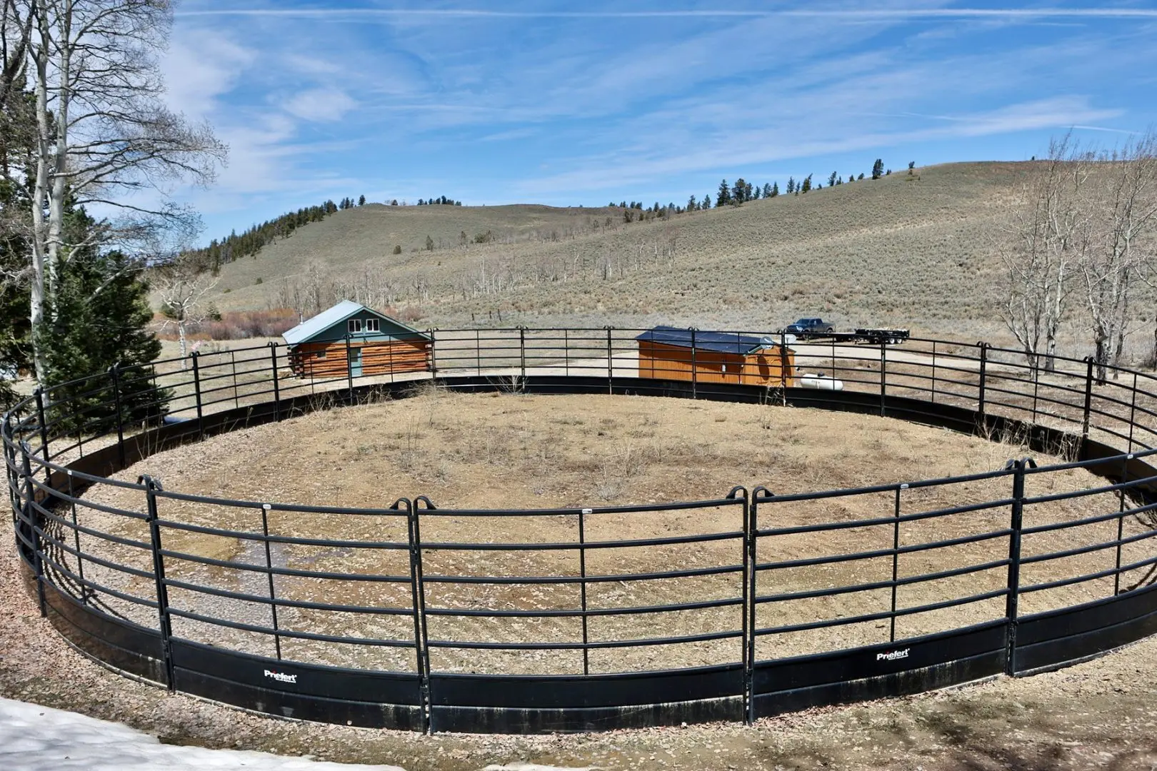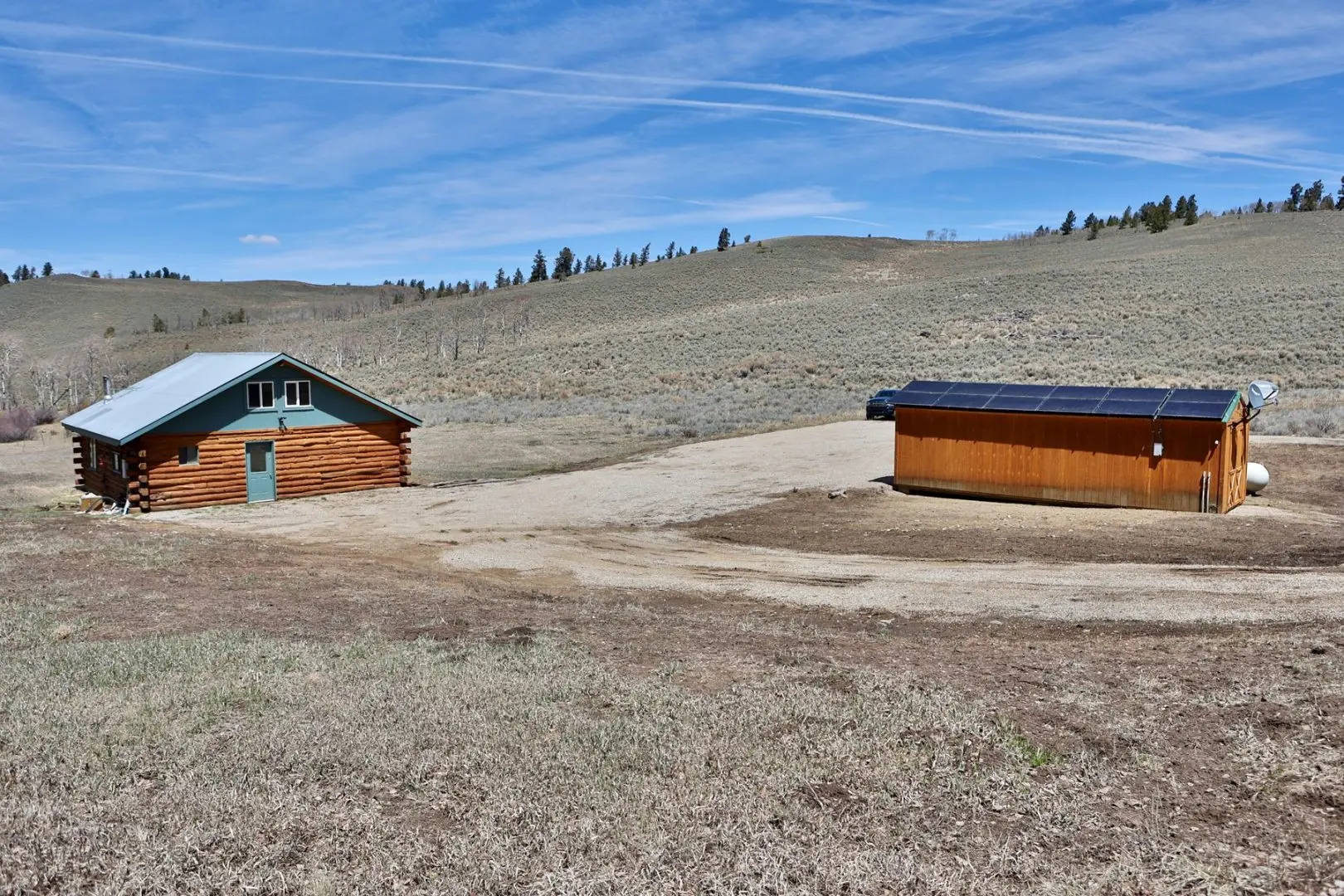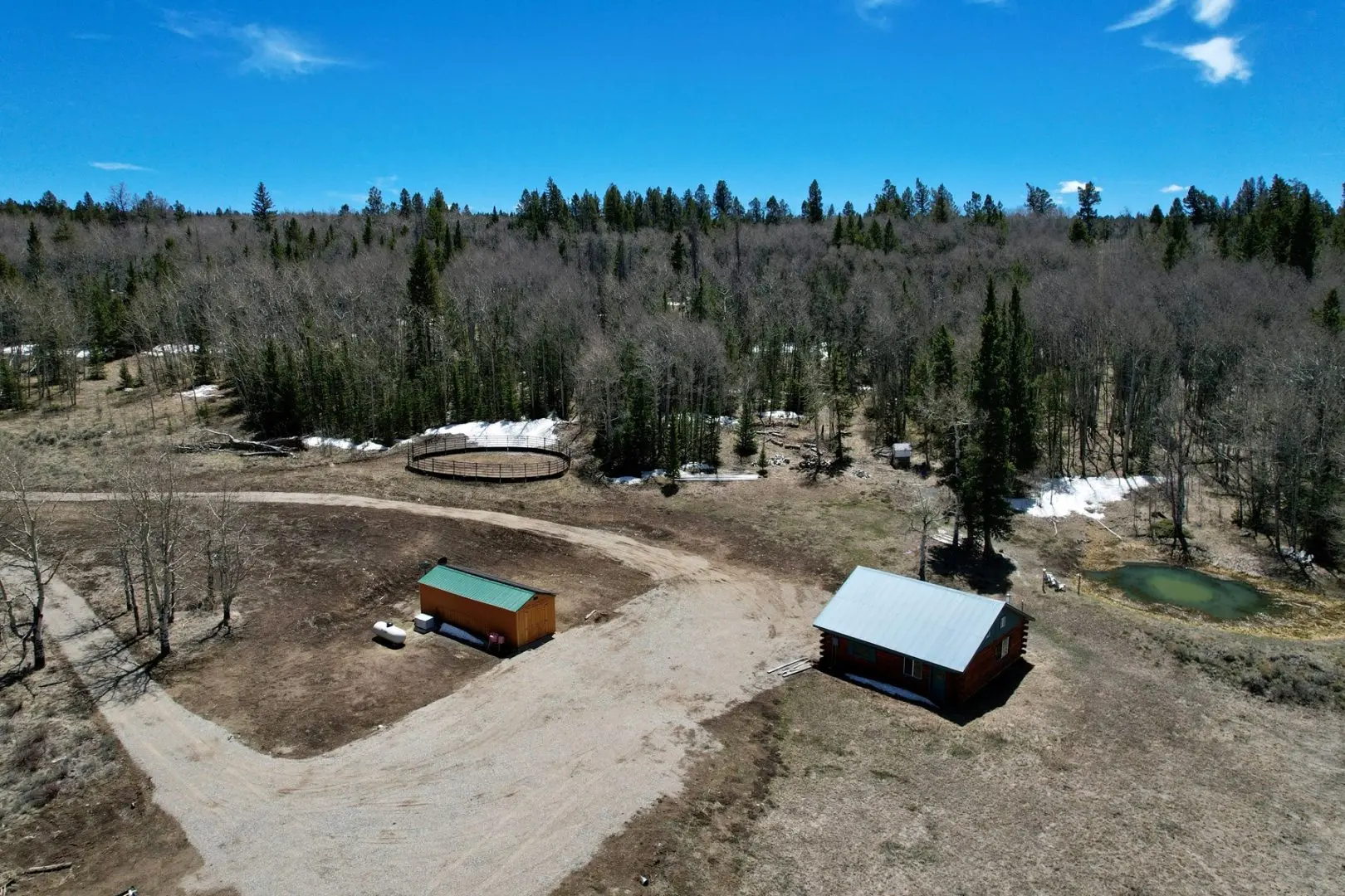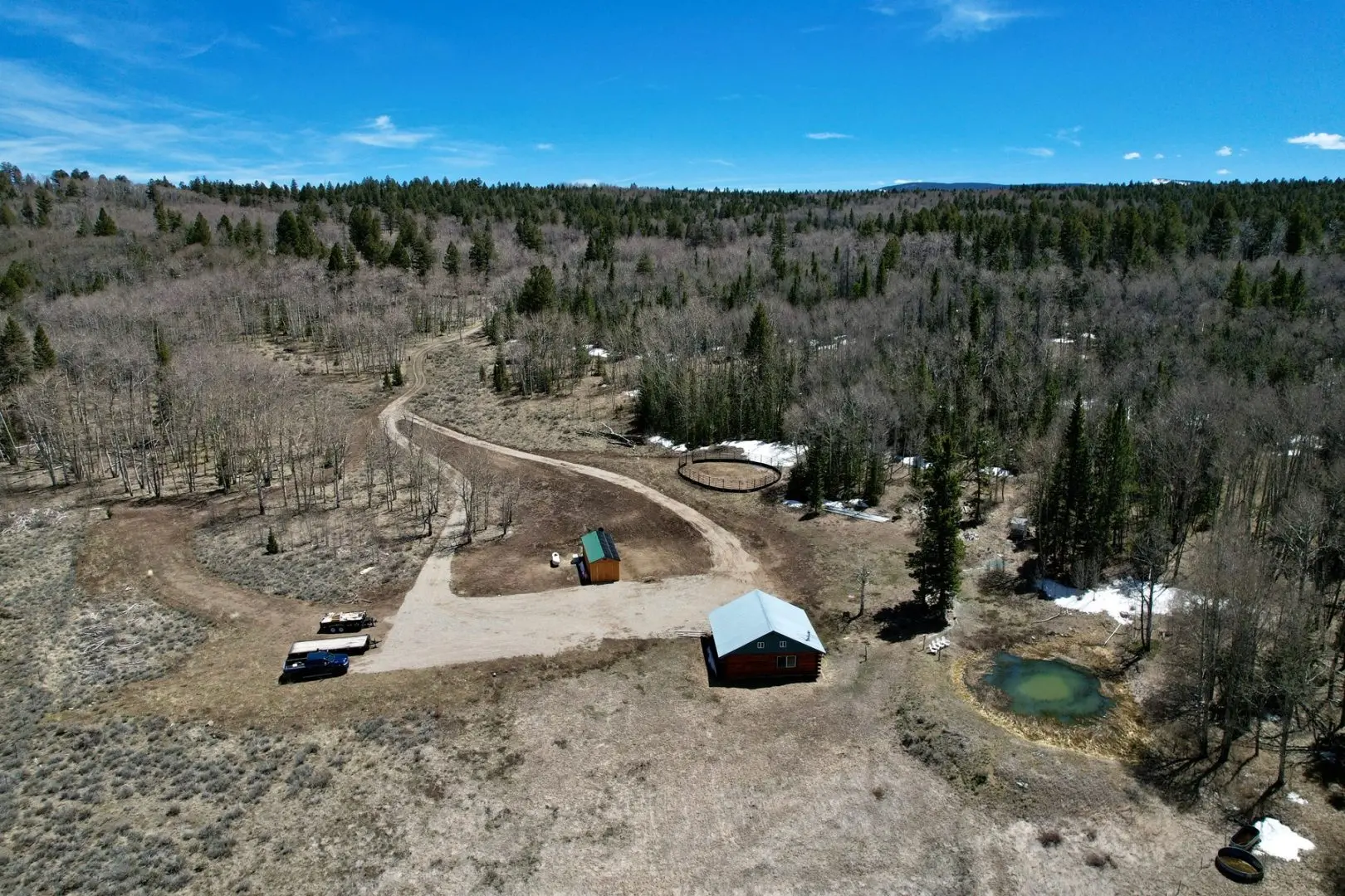 The main entrance to the cabin has a newly graveled cul-de-sac for easy entrance and exit with truck and trailer. Horse corrals set up for equine use hunting or pursuing mountain recreation in the summer, and a large 360 square foot shed easily houses UTV/ATV and other gear. A turn-key mountain recreation property with great amenities, and still only about 25 minutes from town.