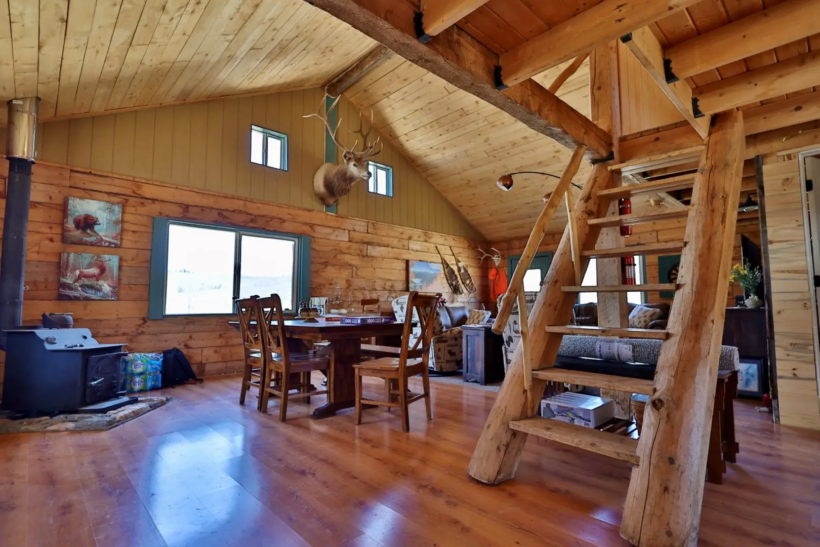 Mountain off-grid living at its finest. The cabin loft easily fits two queen beds and comes fully furnished. With the pull-out couch, it can easily sleep 8. Cabin has it’s own septic system as well.