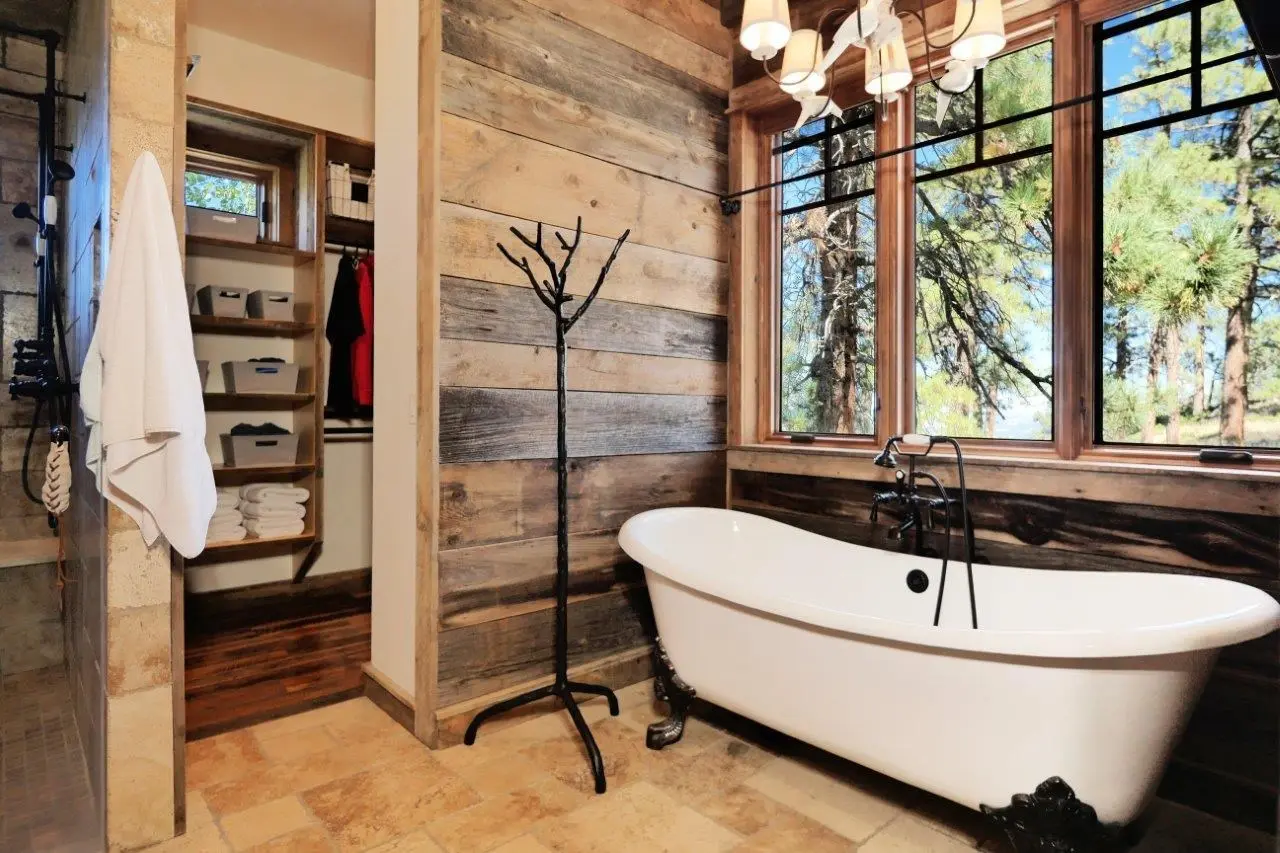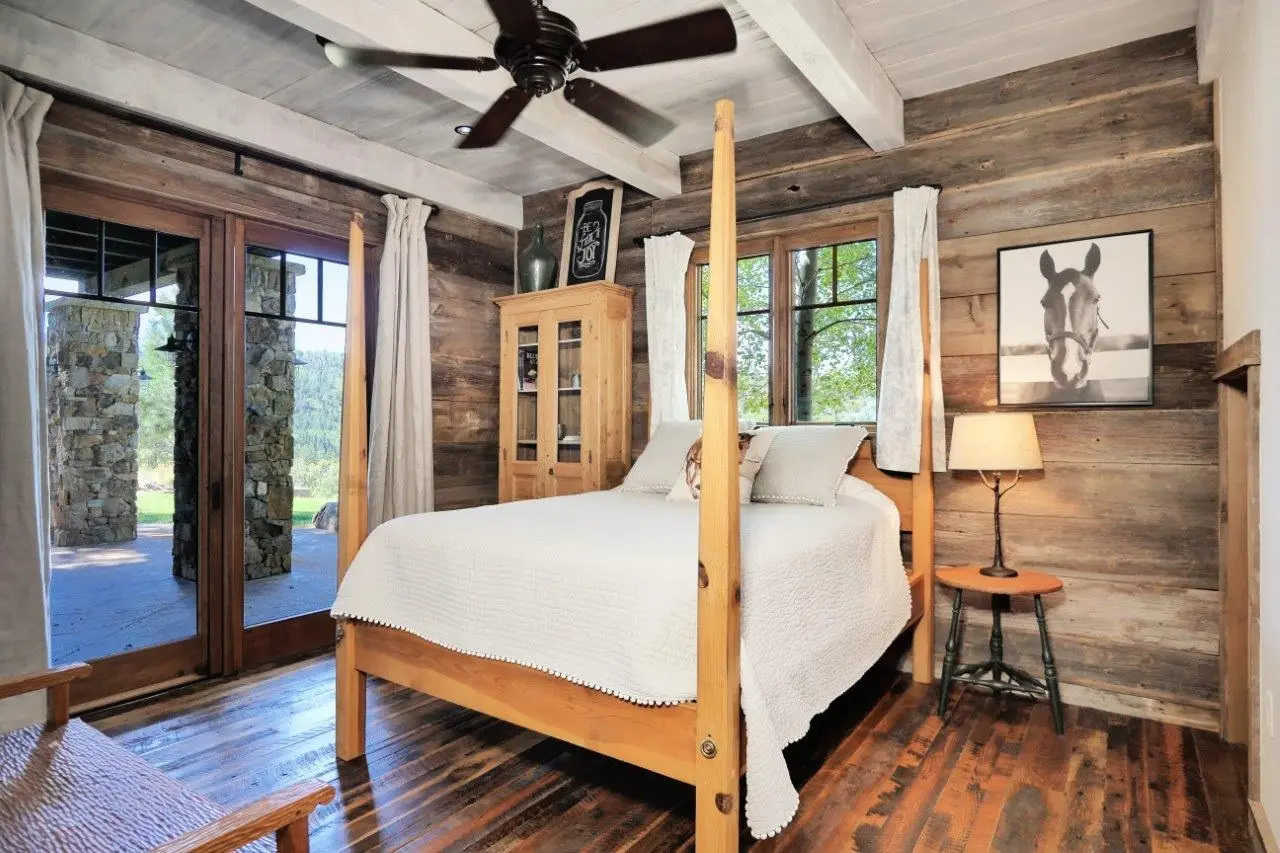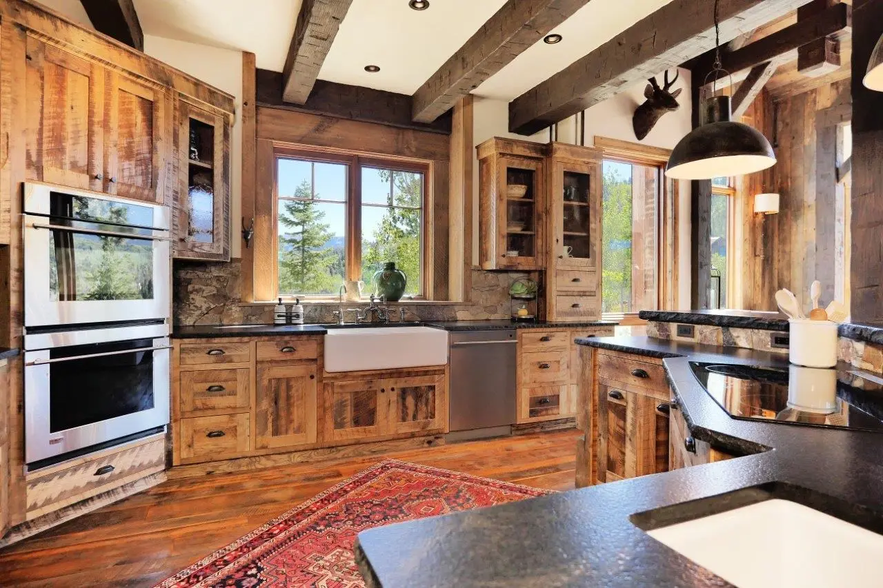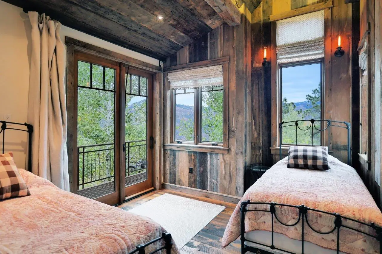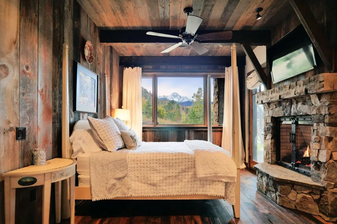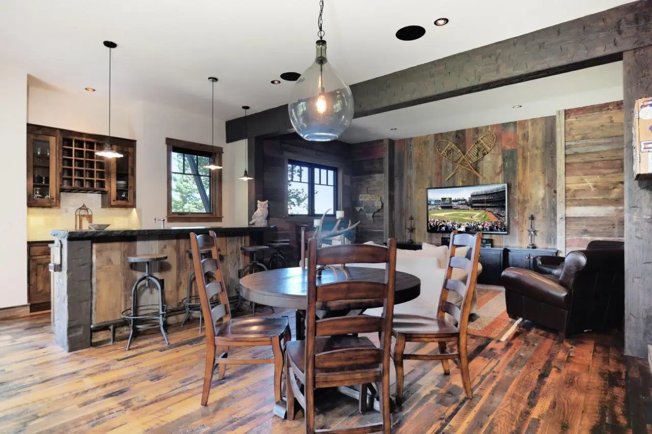 The home, nestled amidst towering Ponderosa pines, frames the awe-inspiring Mount Sneffels, evident in nearly every room, especially the soaring 22-foot-high great room. With a thoughtful layout accommodating 8 adults and 8 children, the interior showcases the perfect fusion of materials such as stone, steel, wood, and plaster, including over 30,000 board feet of reclaimed barnwood and antique oak circle-sawn flooring. The meticulous craftsmanship of local artisans is reflected in the masonry and awe-inspiring Douglas-fir timbers sourced from Washington State and British Columbia.