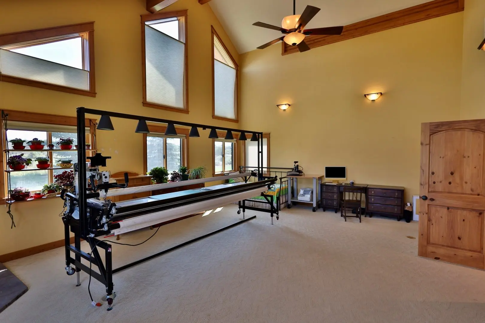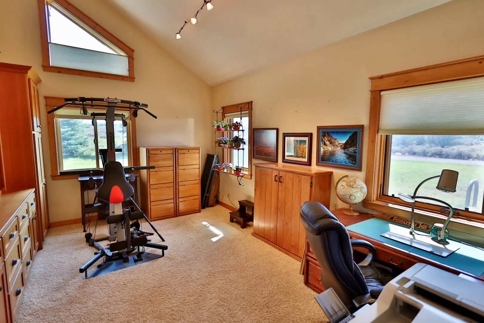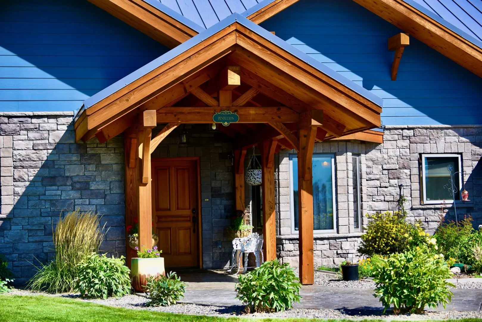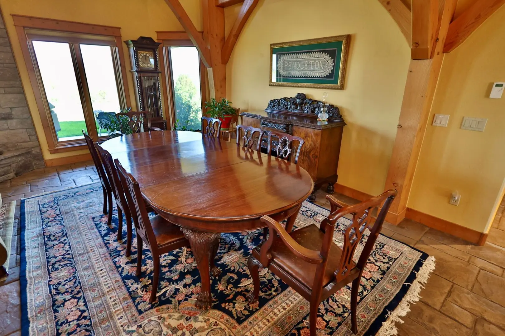 This timber-frame home on almost 47 acres has a spacious footprint of 3,487 square feet with 4 bedrooms and 3 baths, all on one level. There are no stairs in the home. In addition, there are over 1,100 square feet of covered porches for beautiful outdoor living. The main floors, patios, and entryway of the home are all stamped concrete, with in-floor radiant heat throughout the home. The bedrooms are carpeted. The main living area features a beautifully vaulted framework of mortise-and-tenon joinery of Douglas fir timbers. The exterior walls and ceiling are made of structural insulated panels, known for incredible energy efficiency and strength. The spacious kitchen has high-end appliances, including a 6-burner Viking propane stove, Sub-Zero refrigerator, granite countertops, wine refrigerator, walk-in pantry, and clear Douglas fir cabinets. The master suite features a 5-piece bath and spacious walk-in closet, along with an outside porch access to see the Western sunset. On the east end of the house are three other bedrooms, one of which is a very large hobby room that could double as a workout room, dance or music studio, or family room. Adjacent to that is a third bathroom and a comfortable office. The home has a total of three fireplaces in the living room, master suite, and hobby room for cozy winter heat. Summer cooling is provided by twin evaporative coolers. The home has a spacious 3-car attached garage. There is no HOA and there are no covenants.