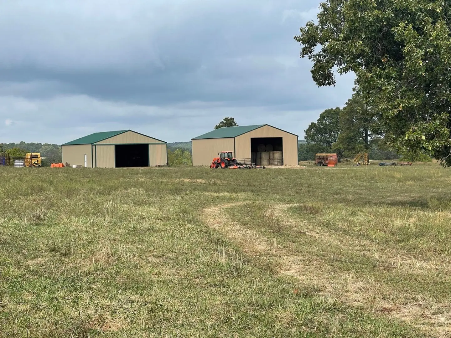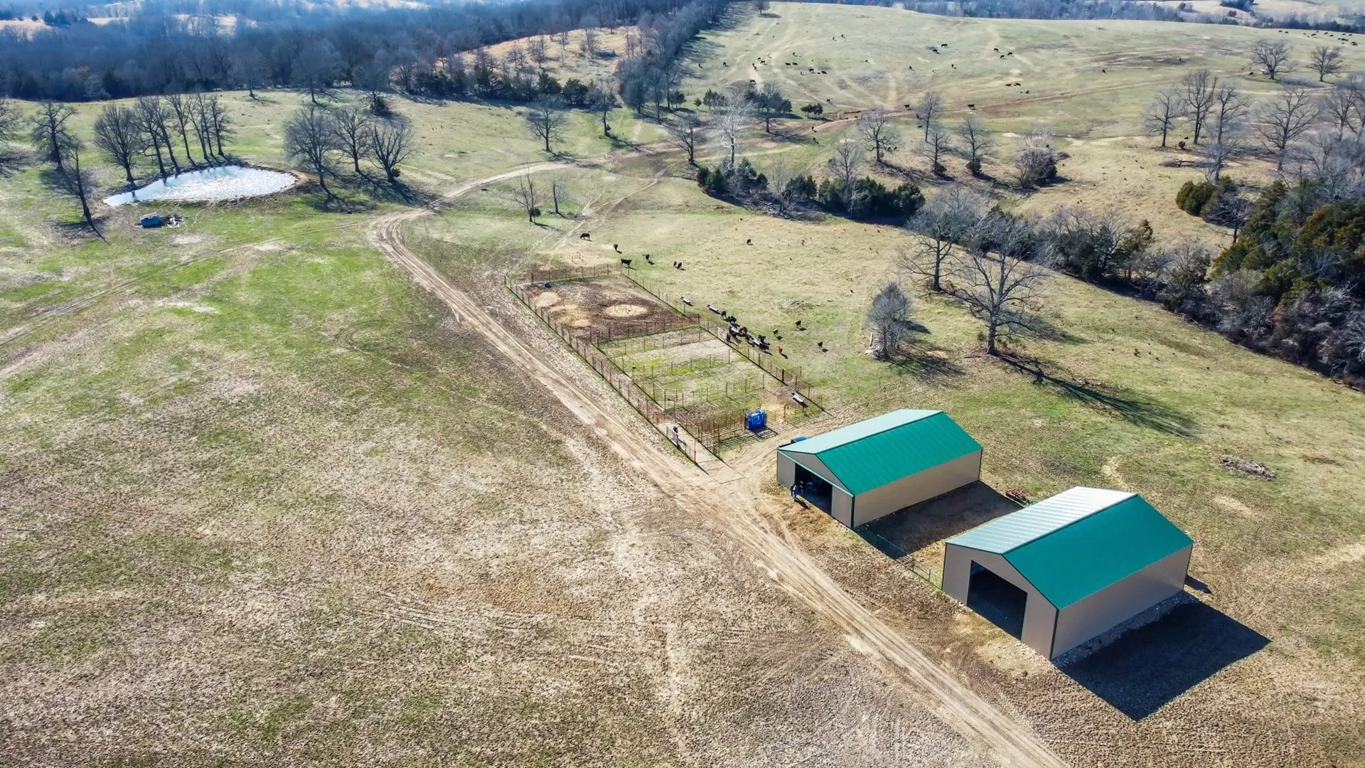 425 Acre Missouri Ozarks cattle farm for sale with major live water – Springs, Springhouse with abundance of water crest and 2 Year Around Spring-fed Creeks. Mostly all in lush pasture, 2 hayfields, fenced and cross fenced, auto waters, covered working corrals. There is lots of new fencing and gates and with efficient working corrals and funnel system makes these cattle working set up easy to manage your livestock. There are two beautiful hayfields that are high producing. There is a 40’x60’ hay barn & equipment storage, another barn/storage building is 30’x60’, both with 14’ openings & there is a 30’x50’ shop with 14’ lean-to with electric, insulation & concrete floor. Rotational grazing pastures, barns and working facilities all have excellent roads for easy access.