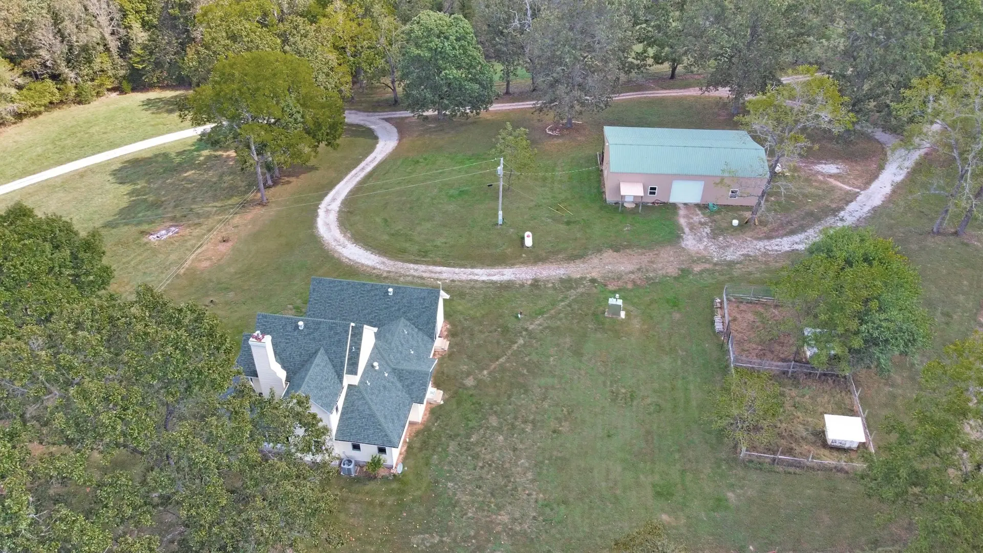 The ranch-style home has a beautiful private hilltop setting with amazing views of your farm and the Ozarks! There is open floor plan with 4 bedrooms and 3 baths. The living room is set-up for fireplace or wood stove. There is gourmet kitchen with granite and island bar. The master bedroom has soaking tub and walk-in shower. There are two heating options – Hardy wood stove that heats the house and water and there is also propane heat. There is Generac whole house generator with dedicated propane tank. The live water, wood heat and generator truly make this a self-sufficient ranch!