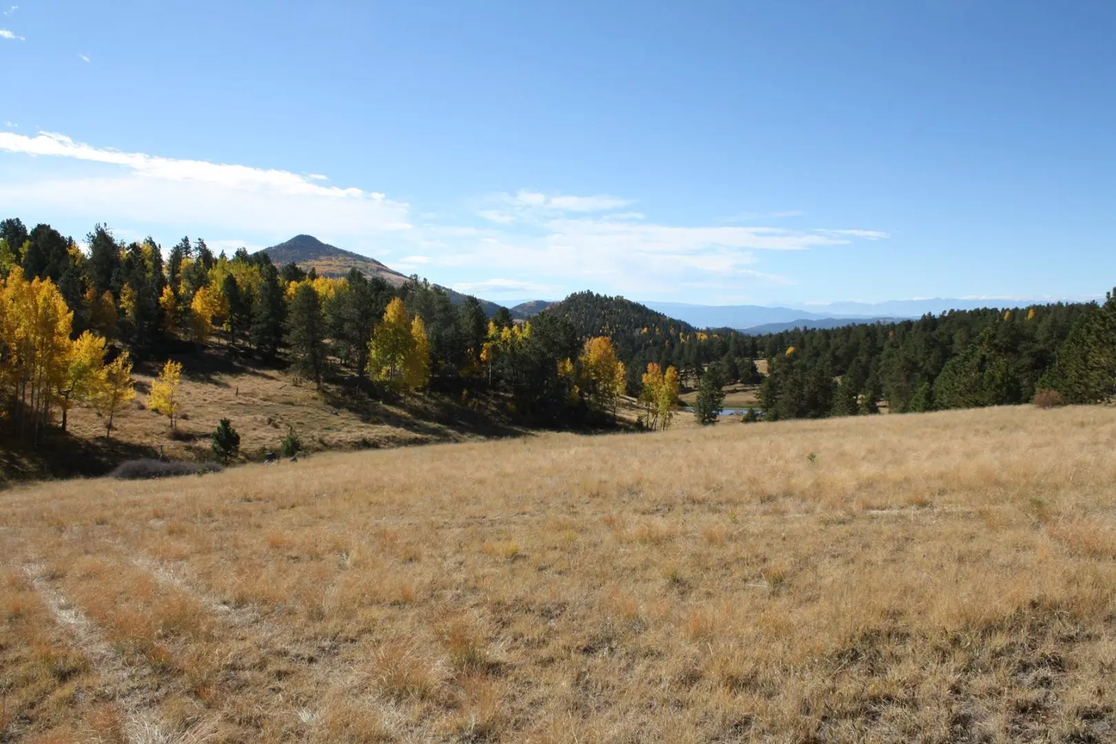 PK Ranch is one of the most desirable and inspiring ranches remaining along the Front Range. This 375+ acre ranch offers the utmost in privacy and seclusion while providing some of the best big game hunting all within 50 miles of Colorado Springs. There are 4 decreed springs on the ranch providing ample water for wildlife and creating lush green meadows. There are also two stock ponds located in scenic high mountain meadows with a filed water right for each. Access to the ranch is via a private ranch road with this ranch being at the end of the road. The ranch borders BLM lands on south and a conserved ranch on the west .