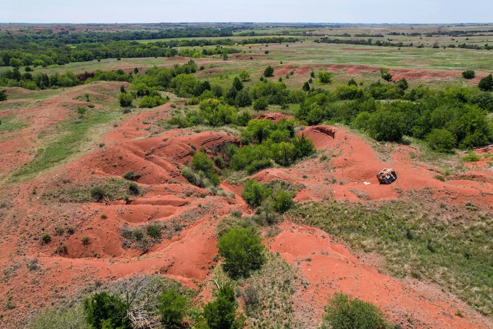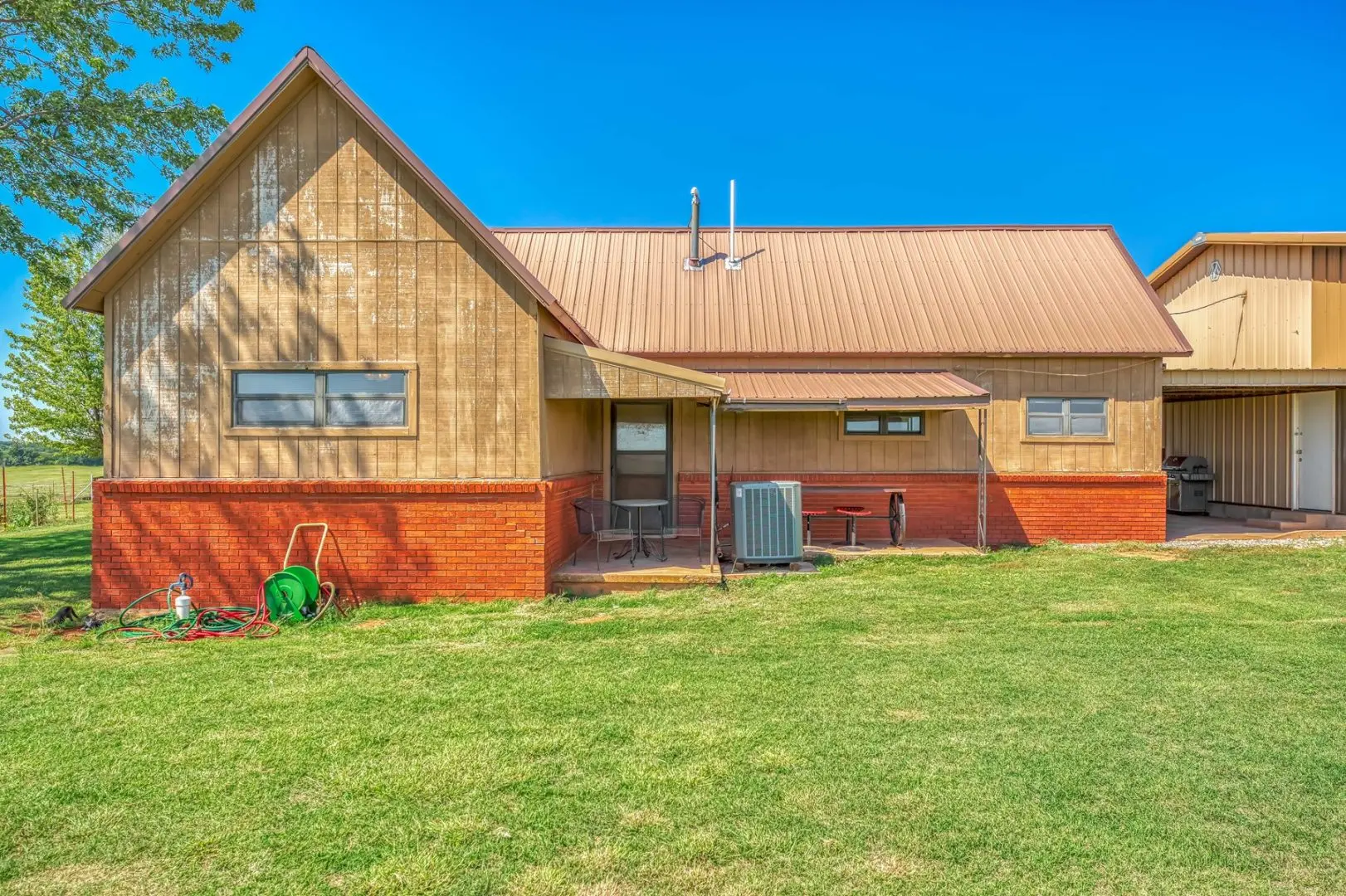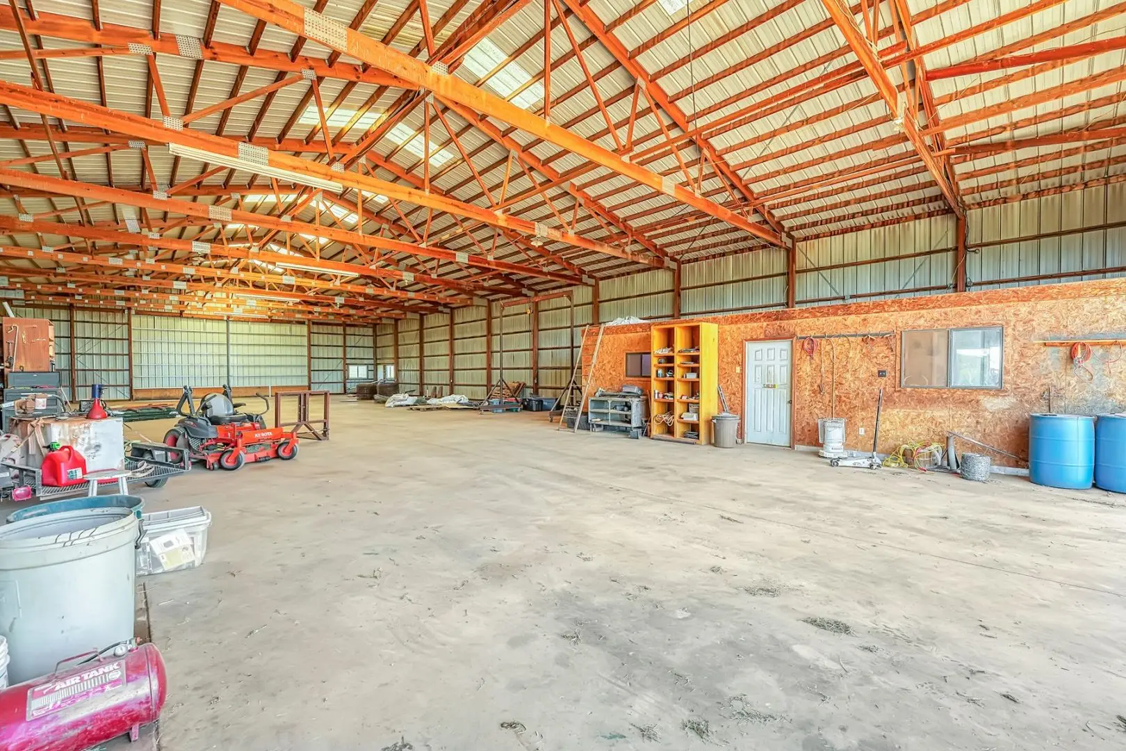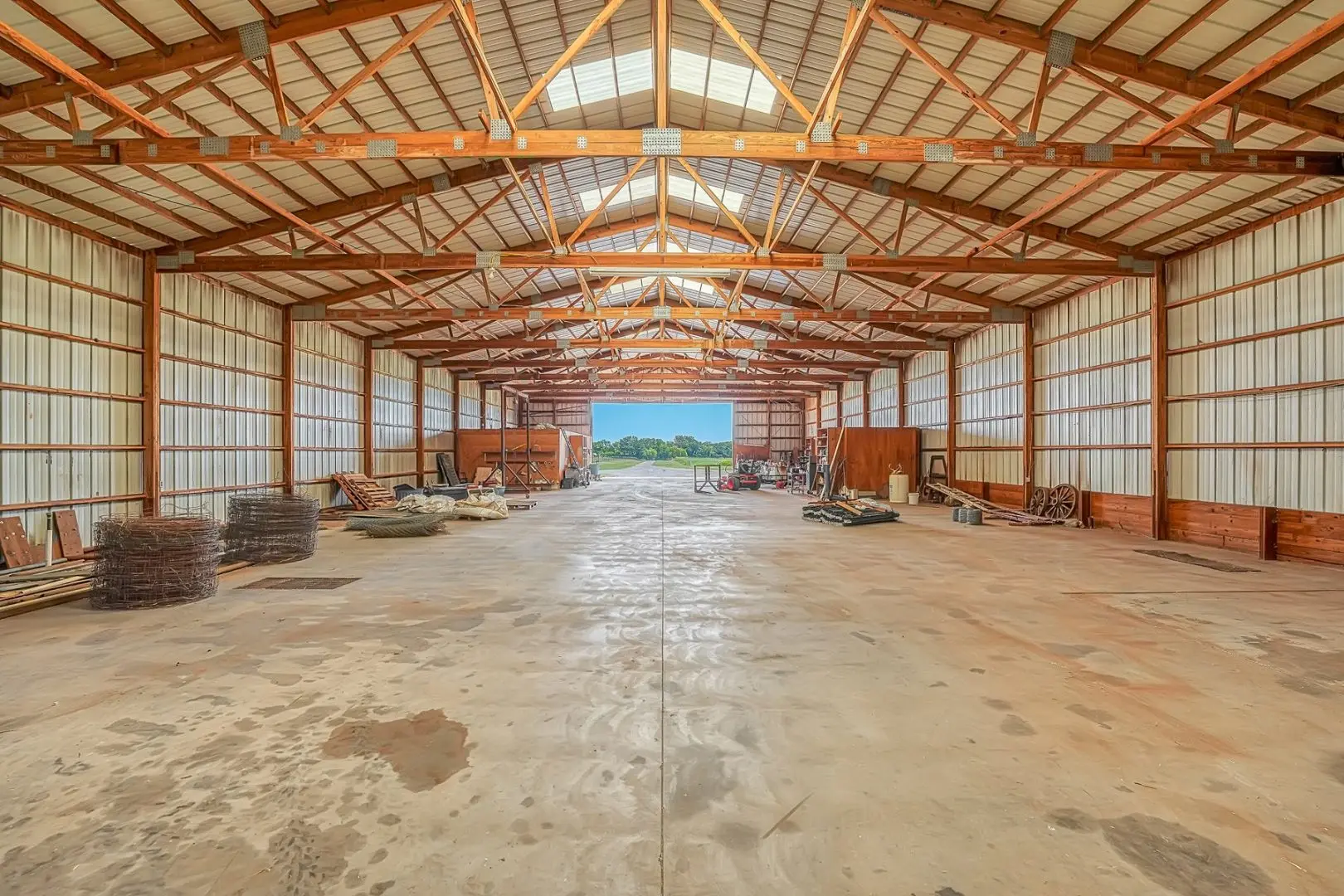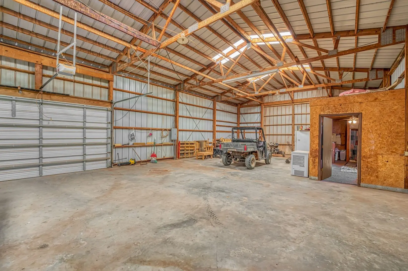 434 Acres MOL for sale in Western Oklahoma. The Washita County farm for sale is located near Foss Lake. The Foss Oklahoma land is suited for a variety of uses including ranching, farming, recreational and hunting. Oak creek runs through the south 160 acres which is composed of mostly bottom ground. The farm for sale includes a 60’ x 120’ Morton Barn with a kitchenette, wash pad, electricity and a 120’ lean to. Located on the eastern side of the property is a 1,500 square foot, 3 bed, 1 bath, county home that has been recently renovated and includes a large sunroom, open kitchen, and a 40’ x 60’ shop. The shop features an overhead door and a full bathroom. Also on the property is a large corral, well house with a 3 1/2 HP pump, 2 water wells, a 2018 Generac 15K generator, and 8 hydrants. The Rural Oklahoma Ranch provides many amenities and features.