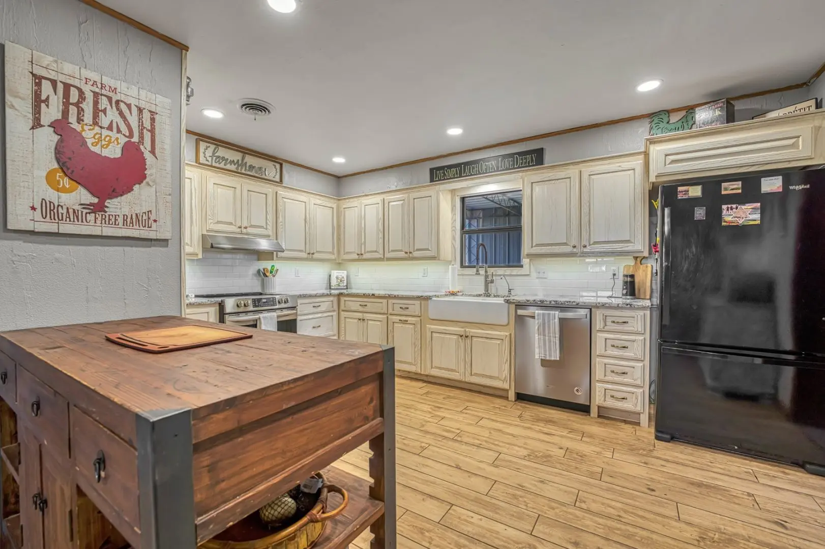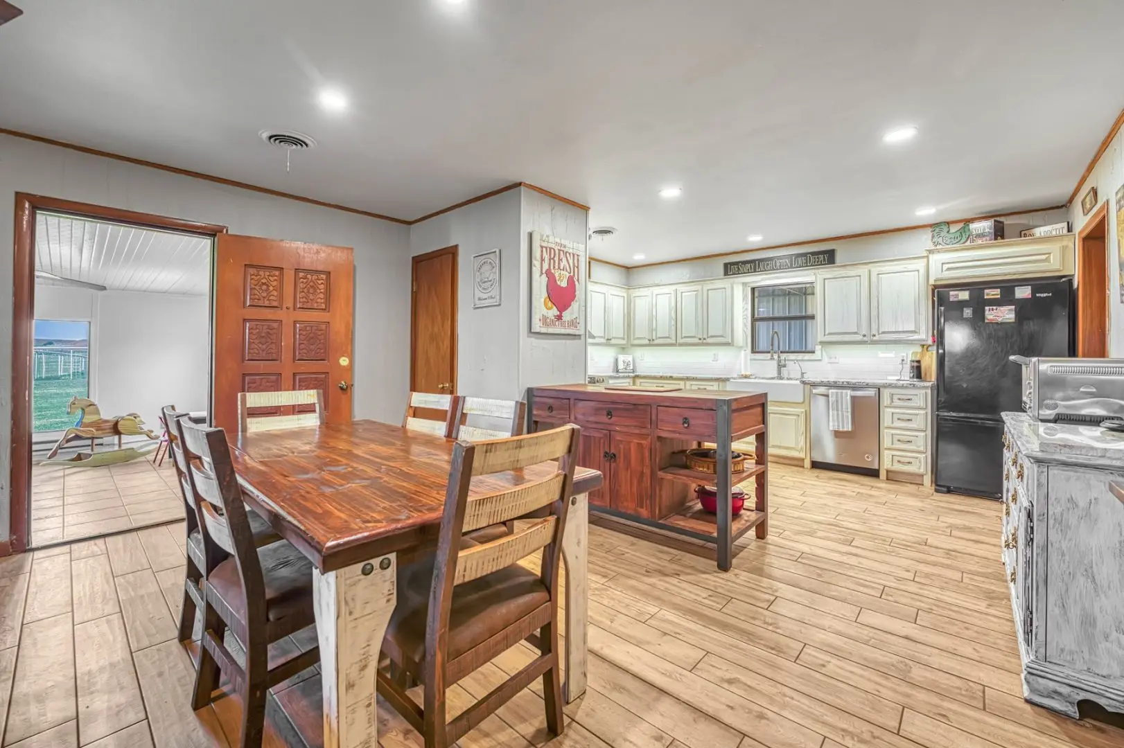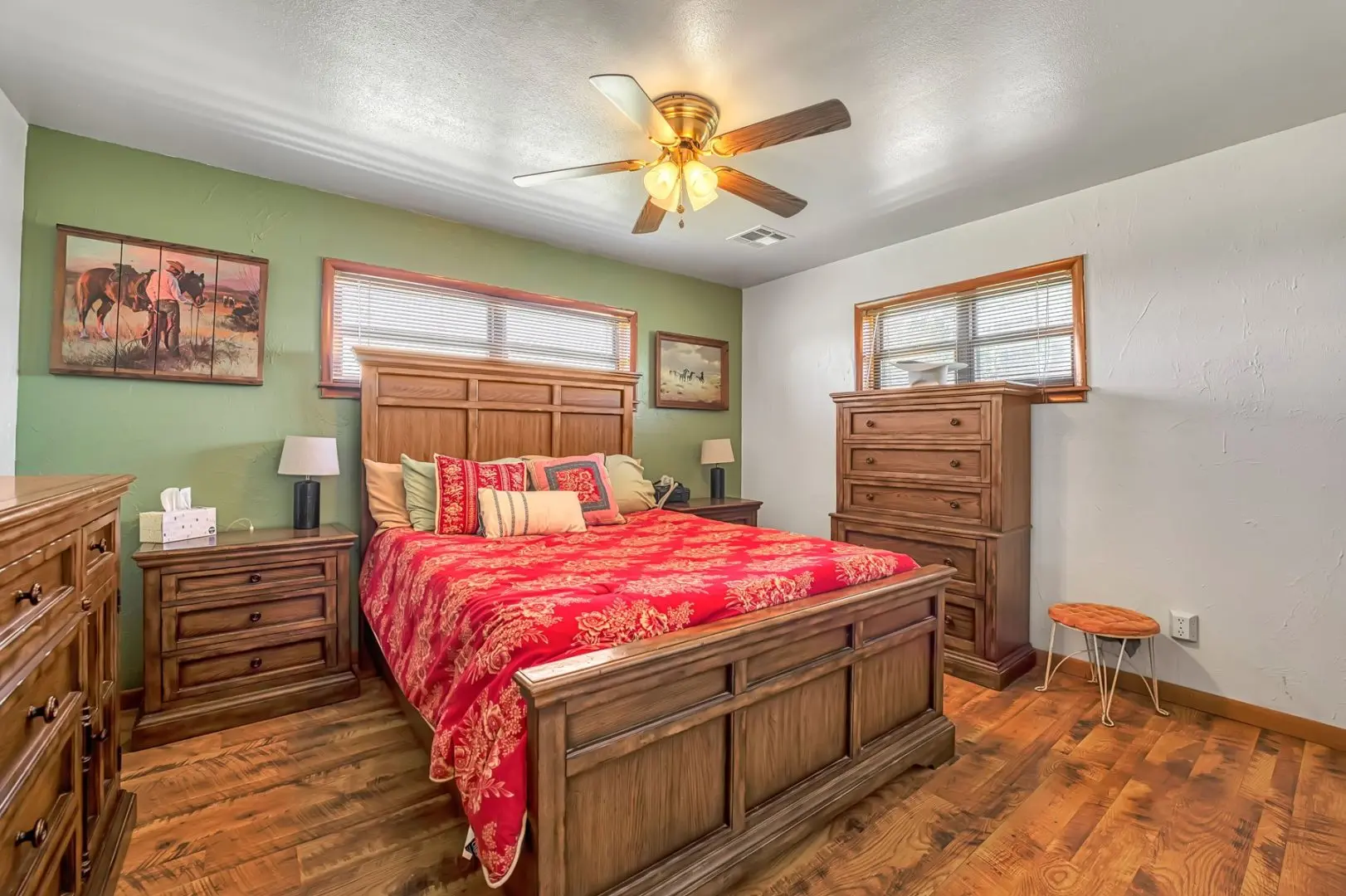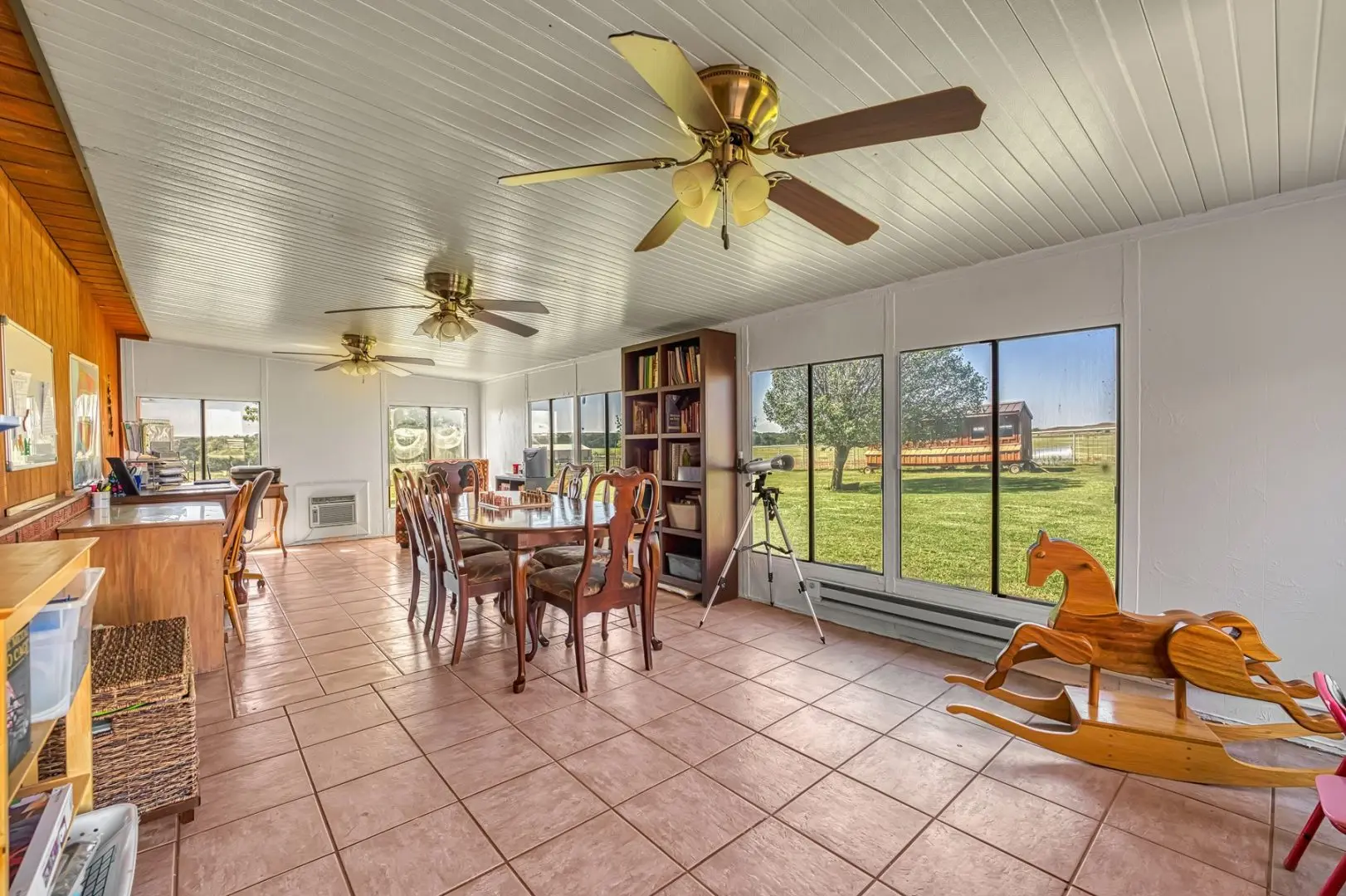 434 Acres MOL for sale in Western Oklahoma. The Washita County farm for sale is located near Foss Lake. The Foss Oklahoma land is suited for a variety of uses including ranching, farming, recreational and hunting. Oak creek runs through the south 160 acres which is composed of mostly bottom ground. The farm for sale includes a 60’ x 120’ Morton Barn with a kitchenette, wash pad, electricity and a 120’ lean to. Located on the eastern side of the property is a 1,500 square foot, 3 bed, 1 bath, county home that has been recently renovated and includes a large sunroom, open kitchen, and a 40’ x 60’ shop. The shop features an overhead door and a full bathroom. Also on the property is a large corral, well house with a 3 1/2 HP pump, 2 water wells, a 2018 Generac 15K generator, and 8 hydrants. The Rural Oklahoma Ranch provides many amenities and features.