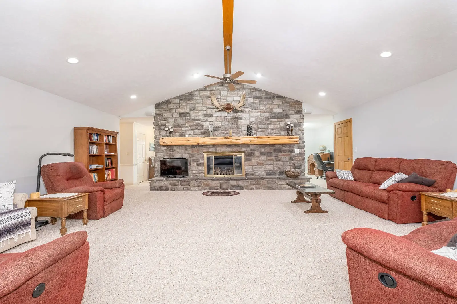 The original house was built in 1978, but in 2009 it was completely remodeled and more than doubled in size. Now it boast almost 5,000 sq. ft of living space, five bedrooms, four full bathrooms, office and flex space, large kitchen with custom built hickory cabinets, a big stone fireplace, central vac system, integrated home sound system, and an 1800 sq. ft heated and cooled garage! The yard has numerous mature shade trees and plenty of space to play and relax.