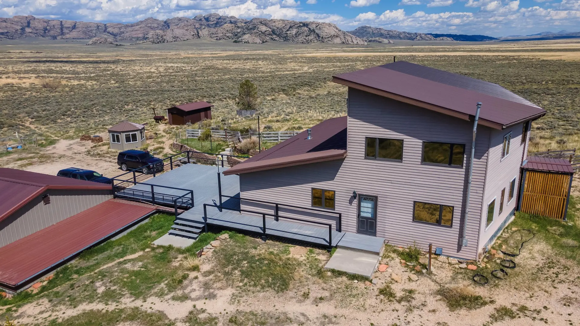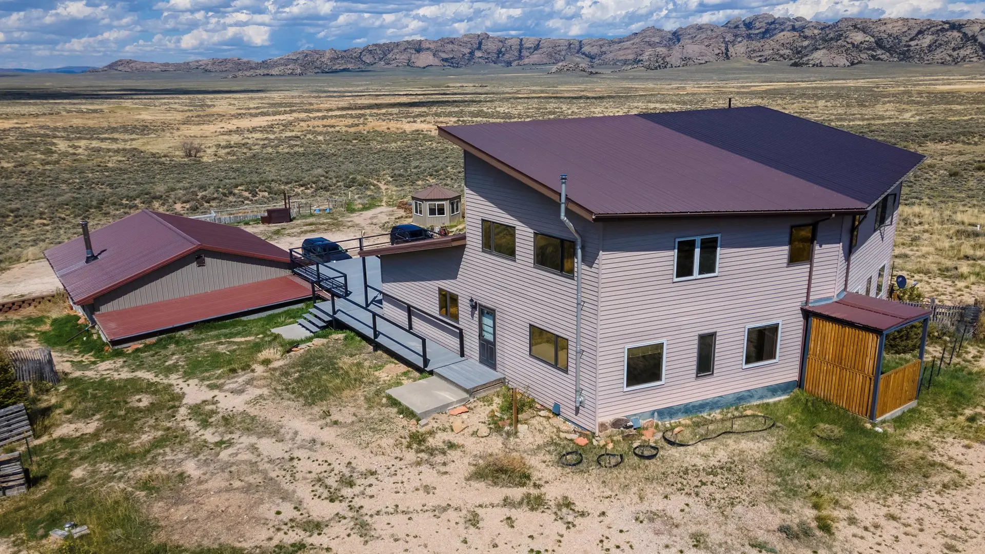 Against many of Wyoming’s diverse landscapes, this 80-acre ranch in Alcova combines the best of rural living and rich history. Located just 75 miles south of Casper off Hwy 220, the ranch offers easy access to both tranquility and adventure, with close proximity to Alcova and Pathfinder Reservoirs. At the center of this ranch sits a family built 5,599 sq ft home featuring 5 bedrooms and 2.75 bathrooms. This spacious home was designed with both family and comfort in mind making it great for holiday gatherings or entertaining. Accompanying the main residence is a 1,500 sq ft bunkhouse duplex, complete with 2 bathrooms and loft spaces, ideal for guest accommodations or a seasonal rental opportunity.