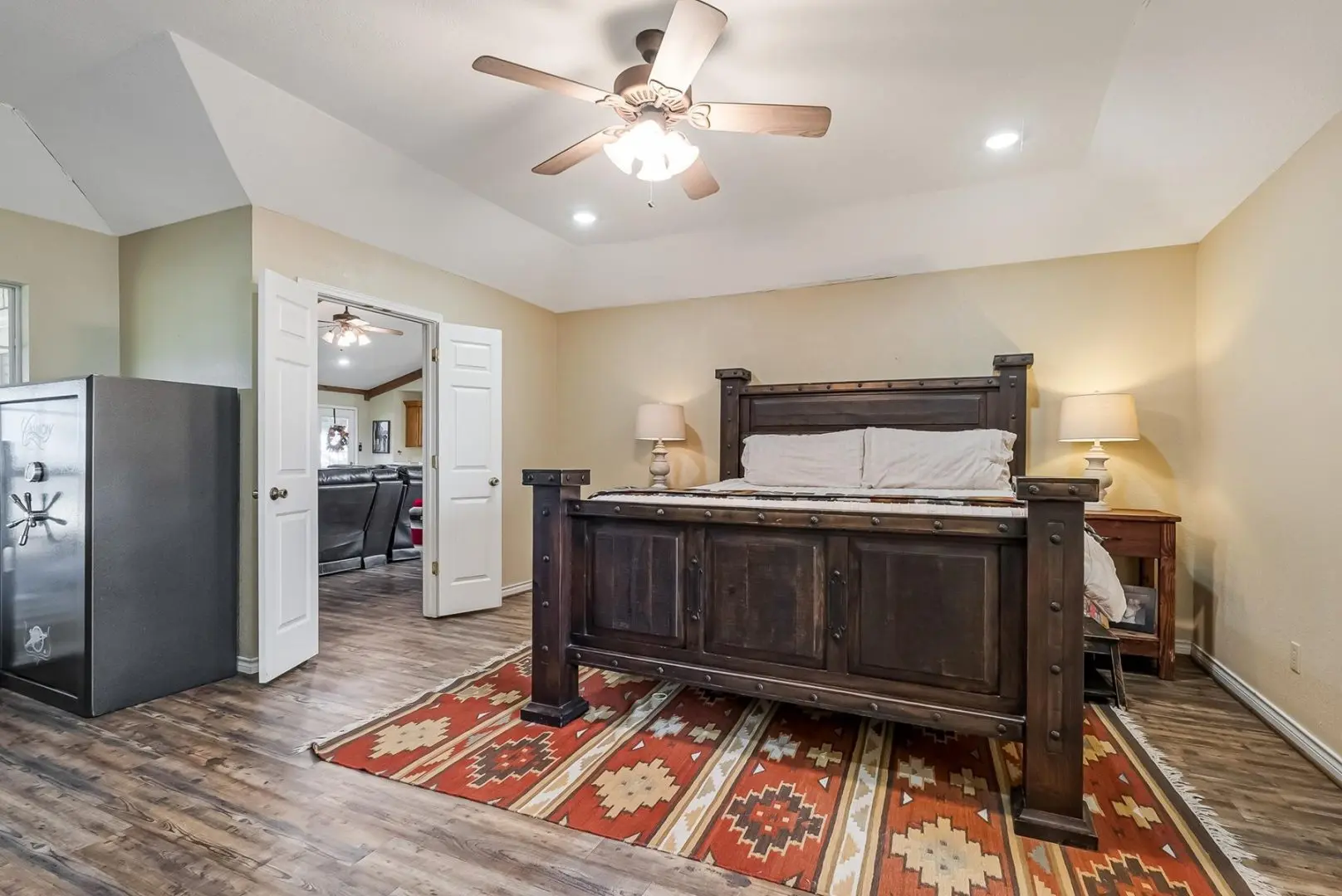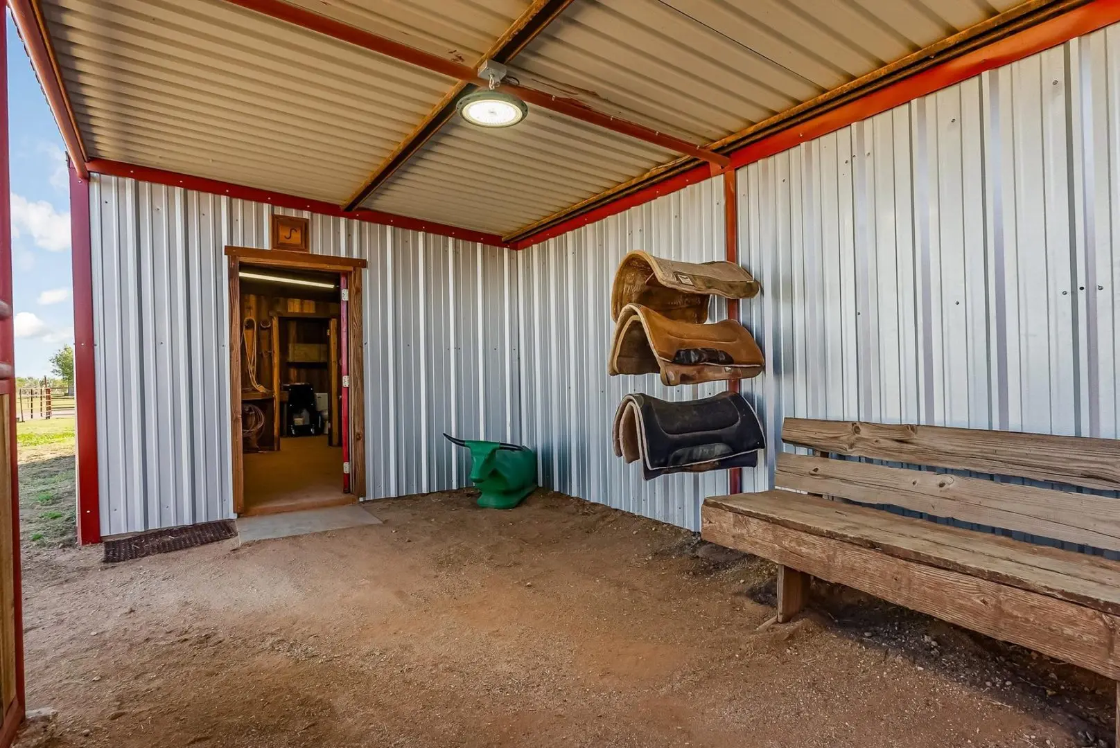 This ranch in Anson is strategically cross fenced into 5 large traps, currently producing beardless wheat. Infrastructure includes an enclosed hay barn, custom tack room, fuel storage, and comprehensive feeding systems with automatic waters throughout. This income-producing property offers immediate operational capacity for both equestrian and cattle enterprises, with all necessary amenities already in place.
