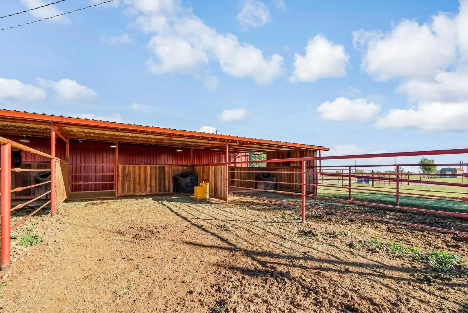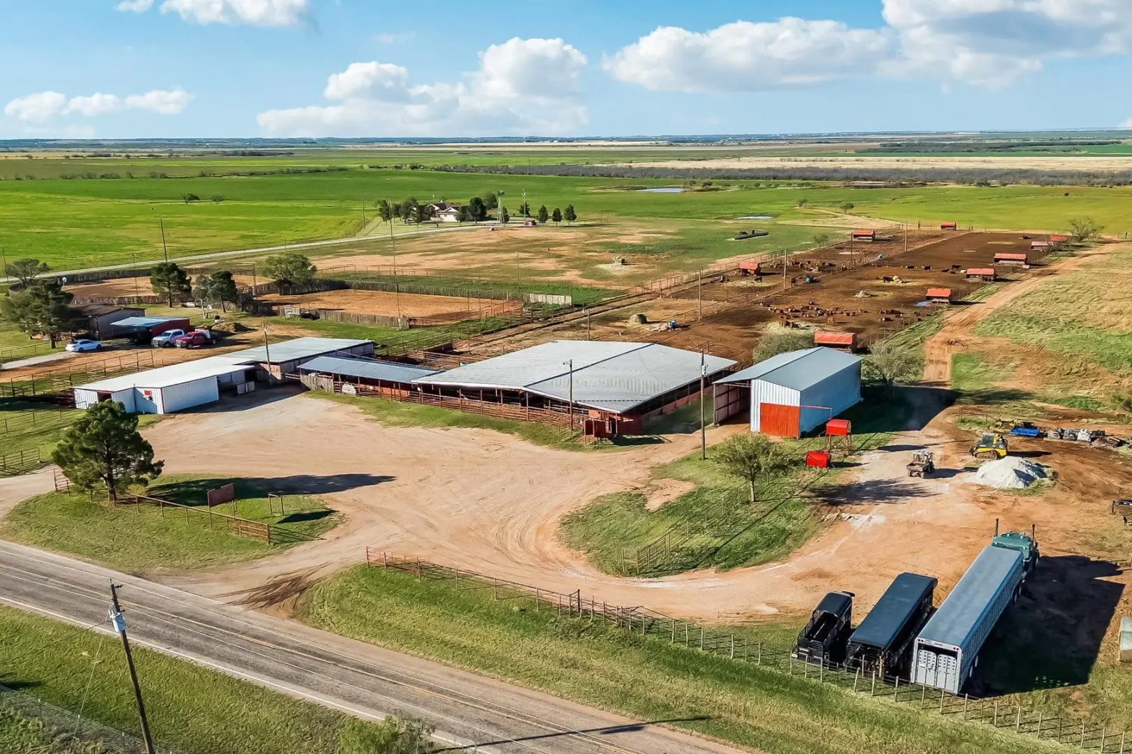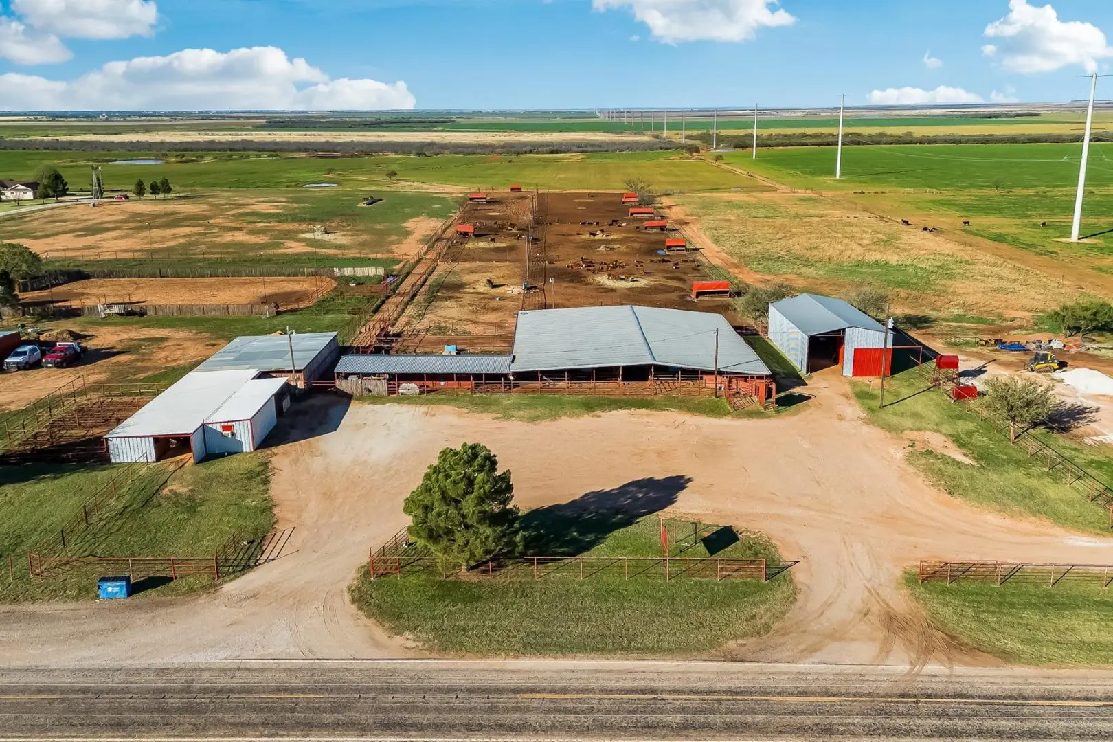 This exceptional 320-acre ranch in Anson, Texas combines premier equestrian facilities with robust cattle operations. The ranch-style brick home features 3 bedrooms, 2 bathrooms, and a covered back porch showcasing panoramic views of the surrounding farmland. The turnkey equestrian setup includes an 8-stall horse barn and two well-maintained arenas, while the cattle infrastructure features 6 large feedlot pens and a covered processing facility with hydraulic chute.