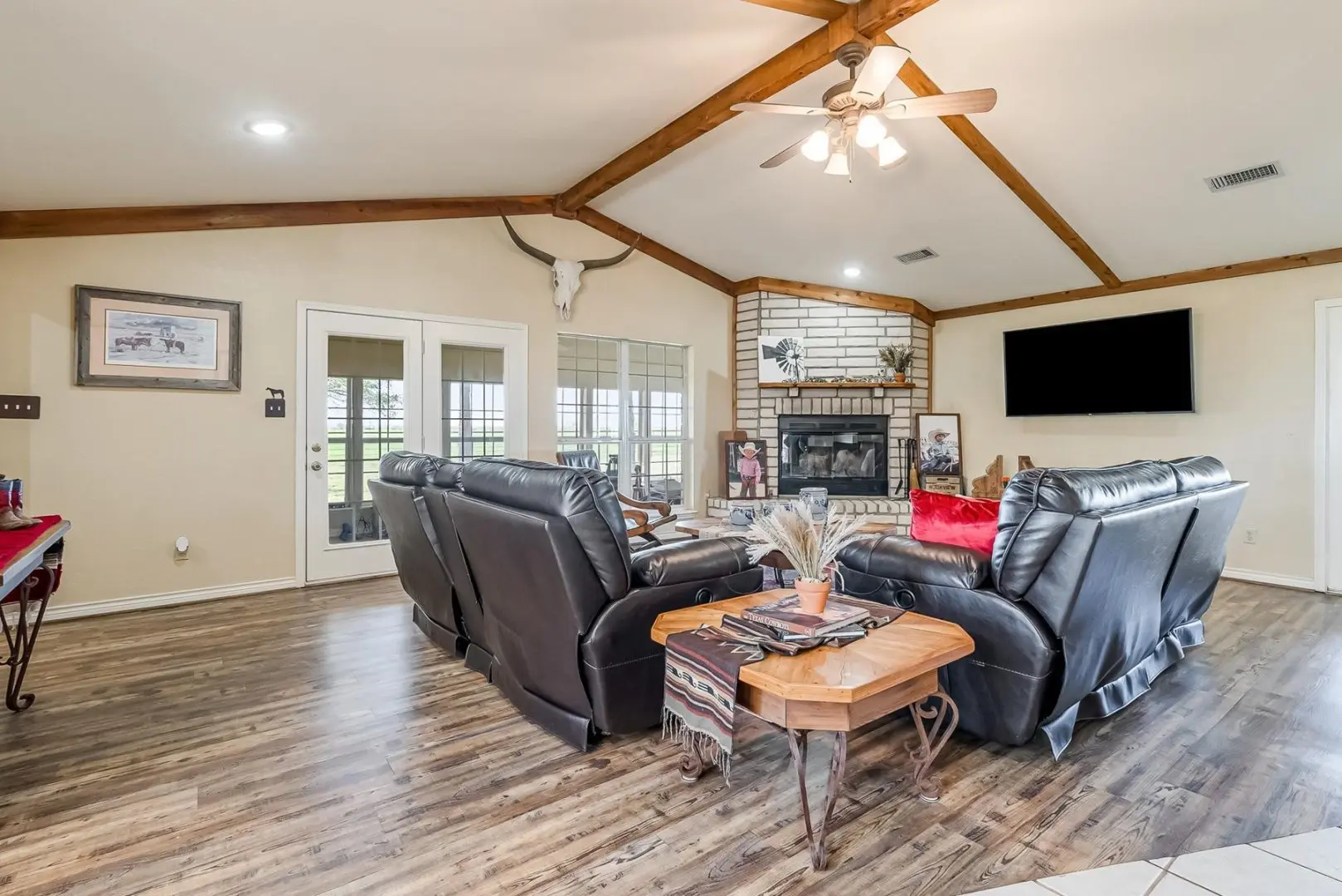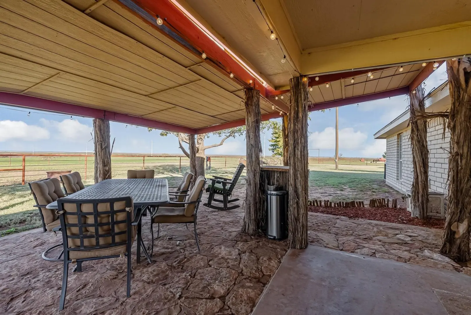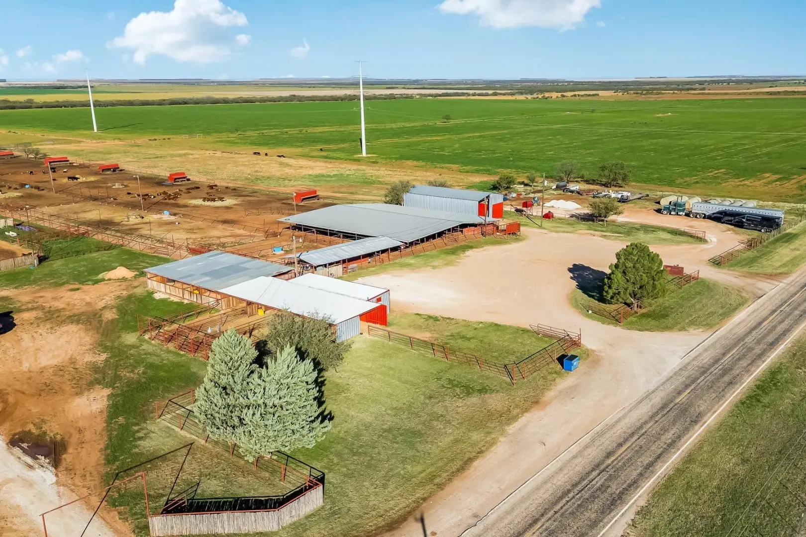 This exceptional 320-acre ranch in Anson, Texas combines premier equestrian facilities with robust cattle operations. The ranch-style brick home features 3 bedrooms, 2 bathrooms, and a covered back porch showcasing panoramic views of the surrounding farmland. The turnkey equestrian setup includes an 8-stall horse barn and two well-maintained arenas, while the cattle infrastructure features 6 large feedlot pens and a covered processing facility with hydraulic chute.