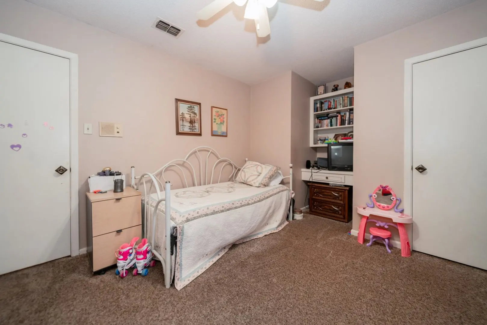 With an abundance of storage through its numerous closets and built-ins, and featuring four versatile bedrooms, this home serves as an ideal canvas for both large families and those just starting out. There is even room for a home office, offering all you need. The master suite serves as a haven separate from the rest of the house, with sliding glass doors opening to the patio and backyard. The master bathroom, complete with a vanity, is neatly separated from the bath and toilet.