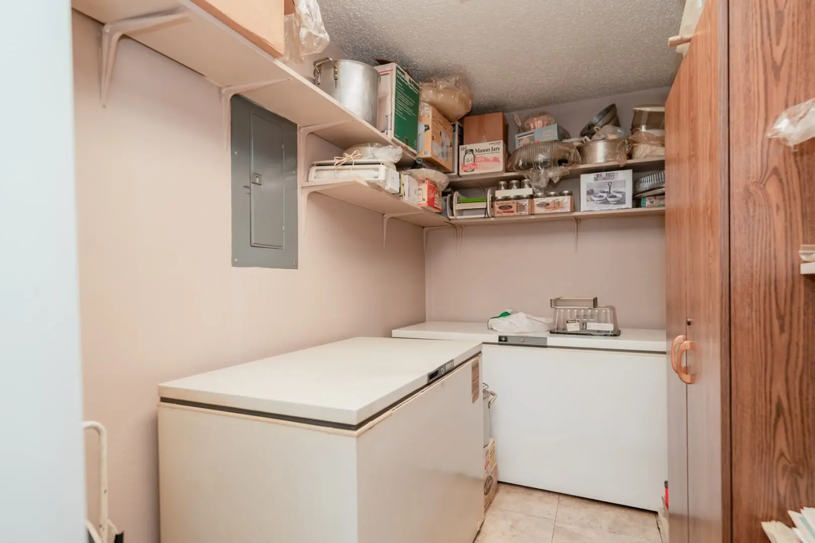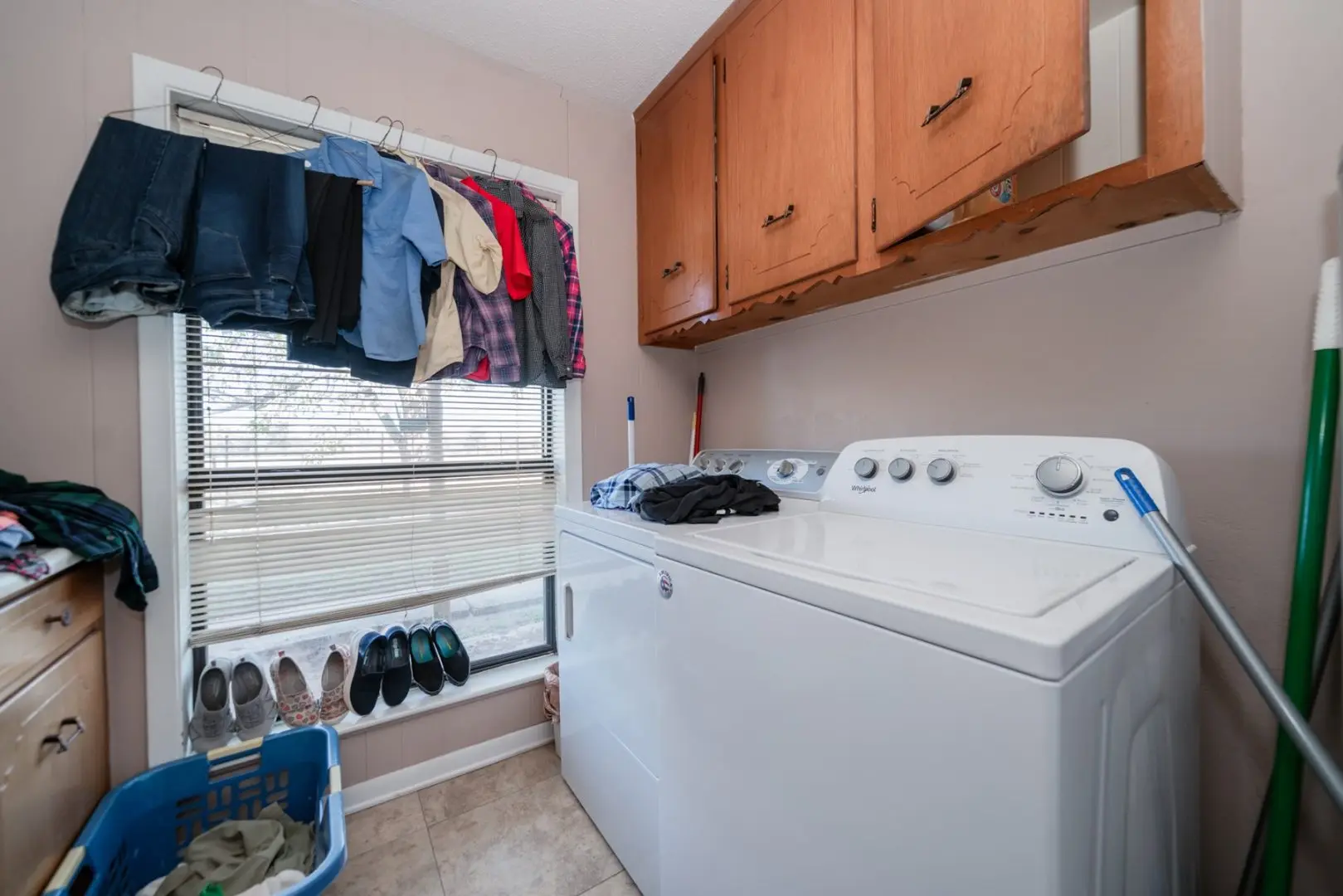 Adjacent to the kitchen, you’ll find a substantial utility room, perfect for storing freezers, bulk foods, and miscellaneous appliances, keeping them discreetly out of sight. Moving on, a spacious laundry room features ample countertop space and storage, streamlining your laundry routine.