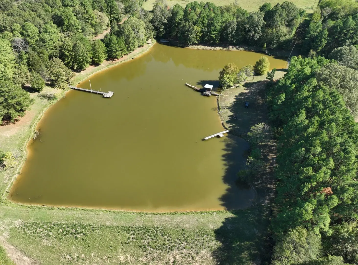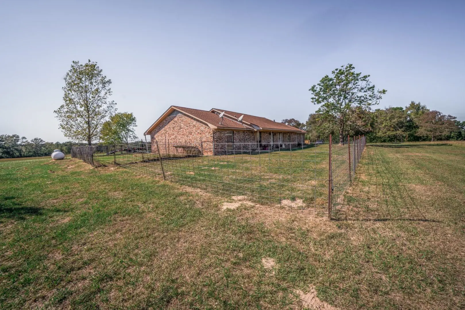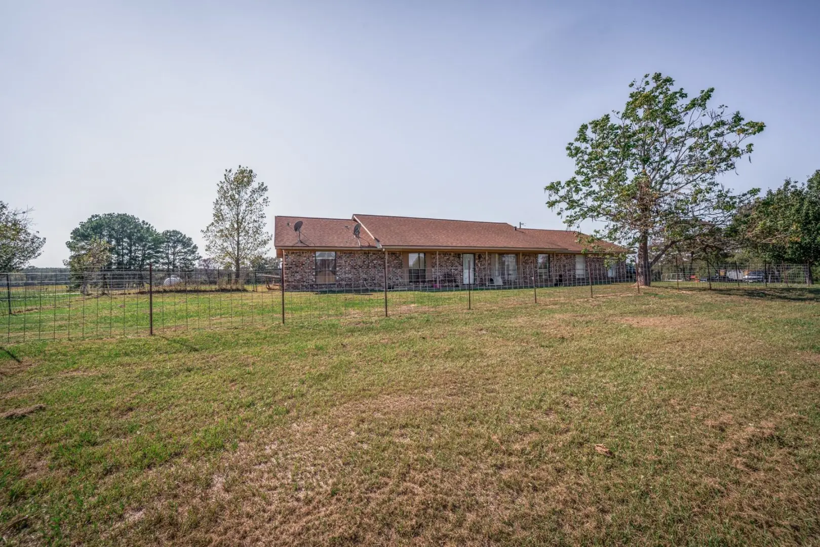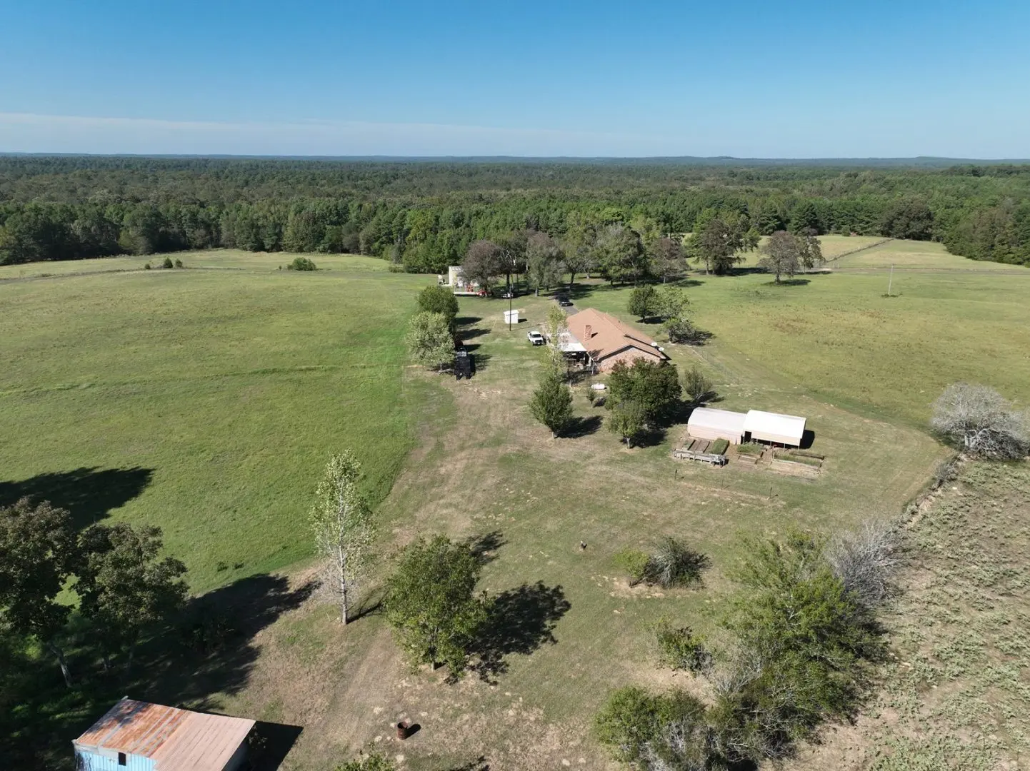 Tucked away within the expansive landscapes of Harrison County, this picturesque ranch in East Texas sprawls over an impressive 185± acres, featuring a charming rustic brick home and encompassing rolling fenced pastures, timberland, and multiple water sources.