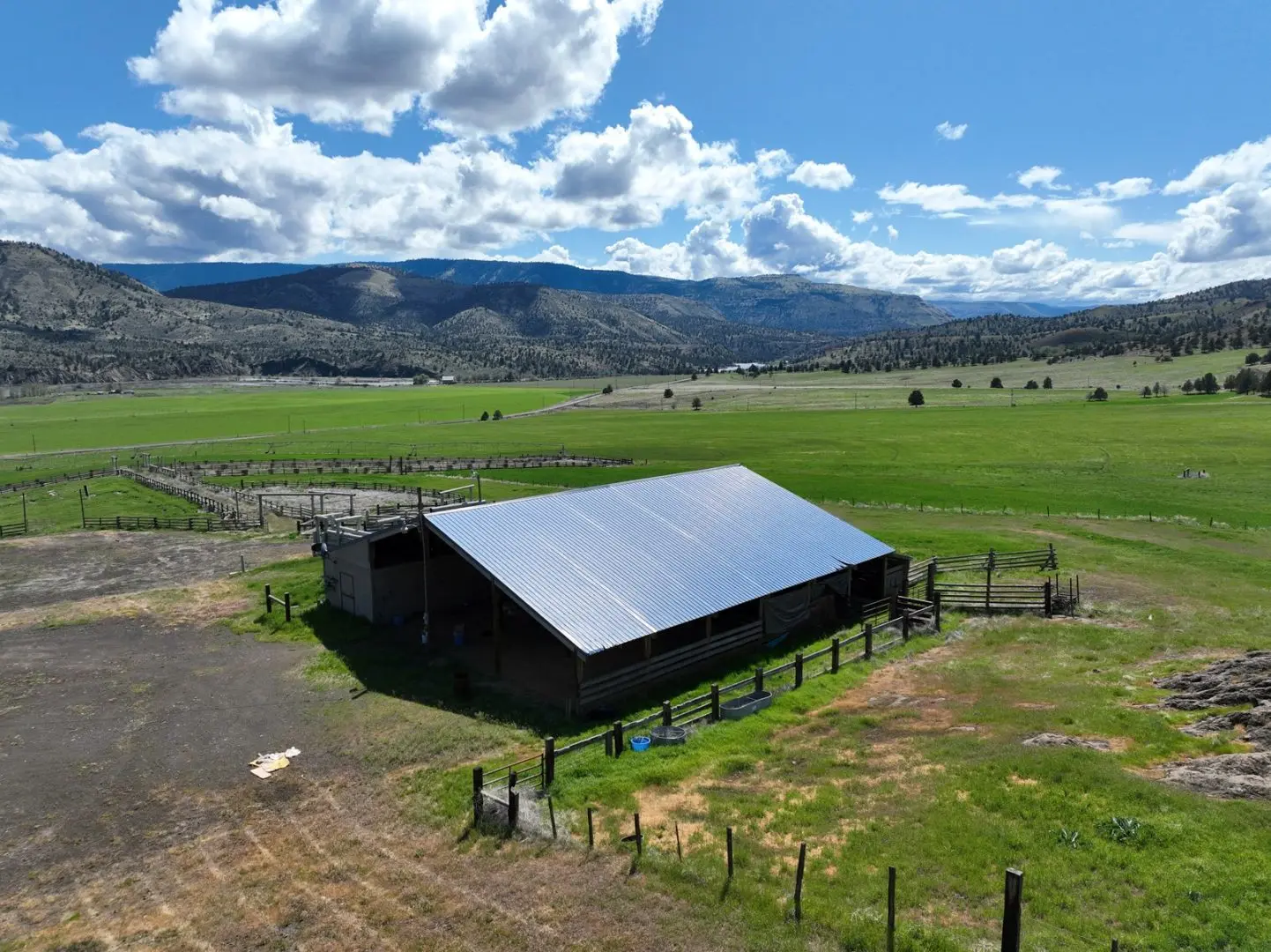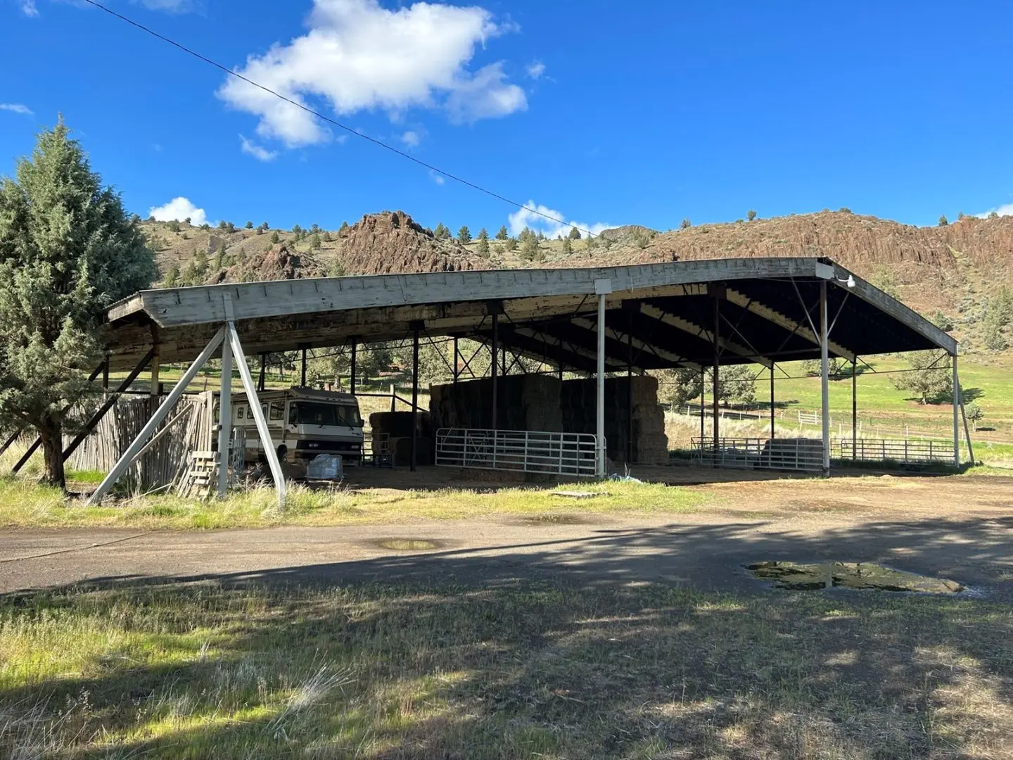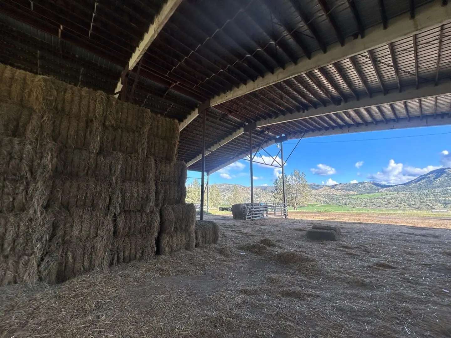 The improvements on this ranch in Eastern Oregon are a great addition to the farm grounds. The shop is a 6,600 sq/ft steel structure with concrete floors, fully insulated, & LED lighting that works fantastically. Inside the shop is a partial living quarters with a ¾ bath that is tied into water & septic. A covered animal working facility that is 4,752 sq/ft with a Powder River crowding tub, alleyway & chute. Additional to the working equipment there is a tack room that is plumbed & has heat. The hay cover is an astonishing 11,352 sq/ft structure with a rock base.