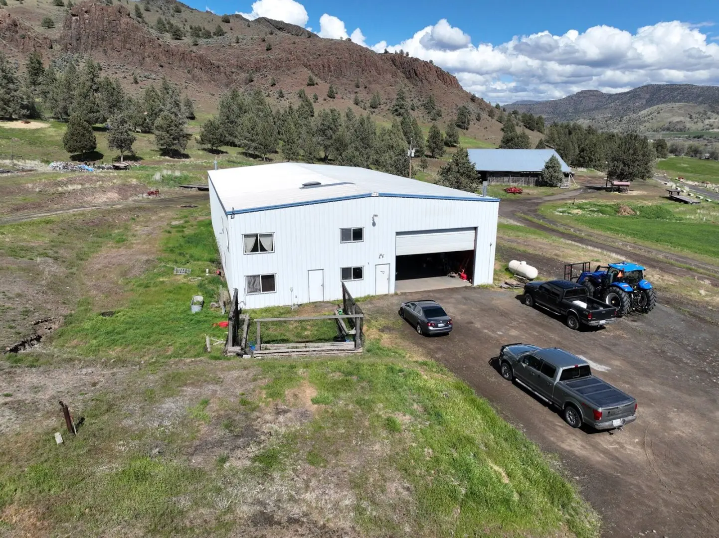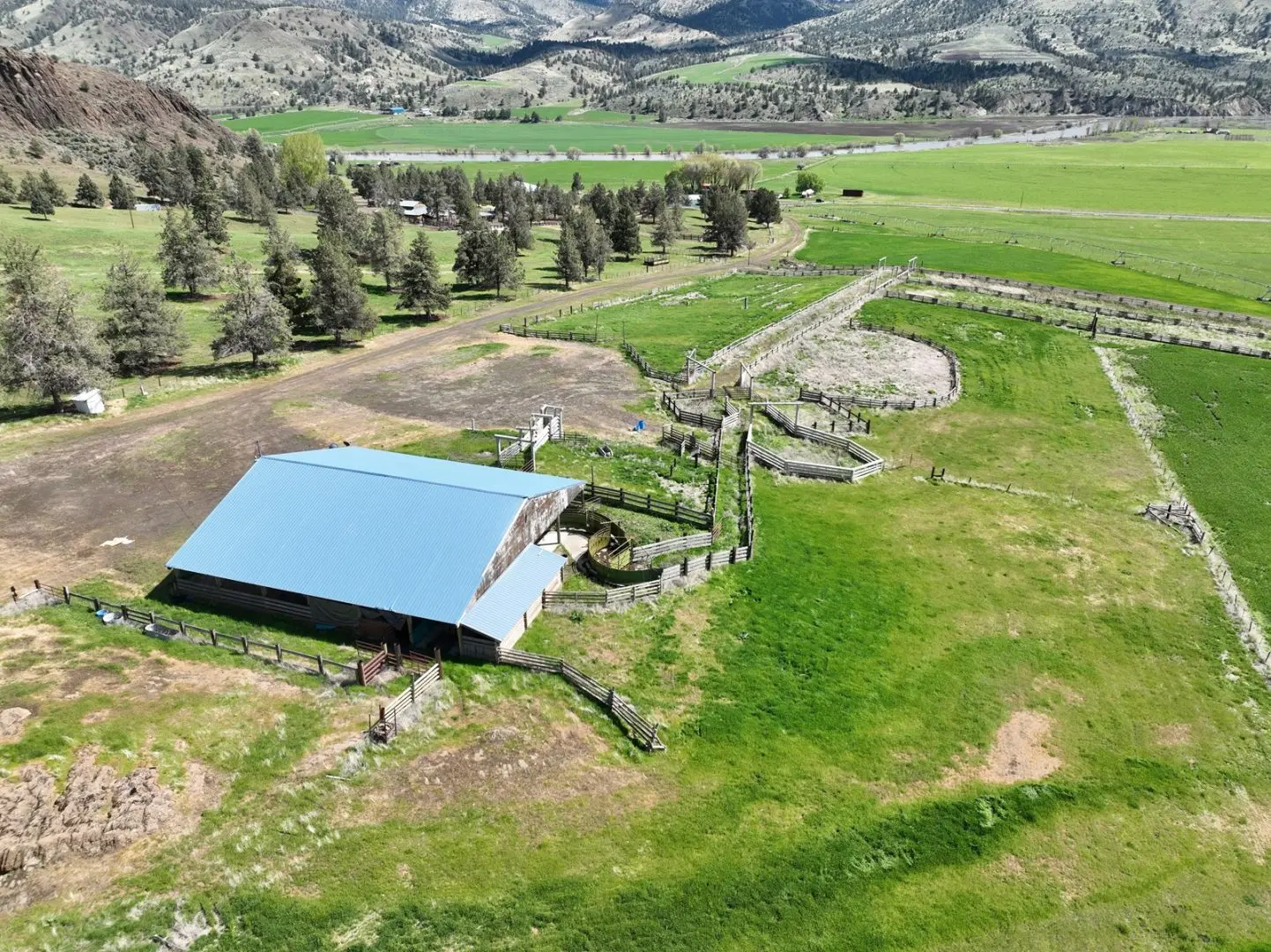 This ranch in Eastern Oregon is well put together with nice improvements such as a steel constructions shop, hay storage and covered working cattle facility. There is a great site to place your dream home overlooking the farm, Kimberly Valley and the river.