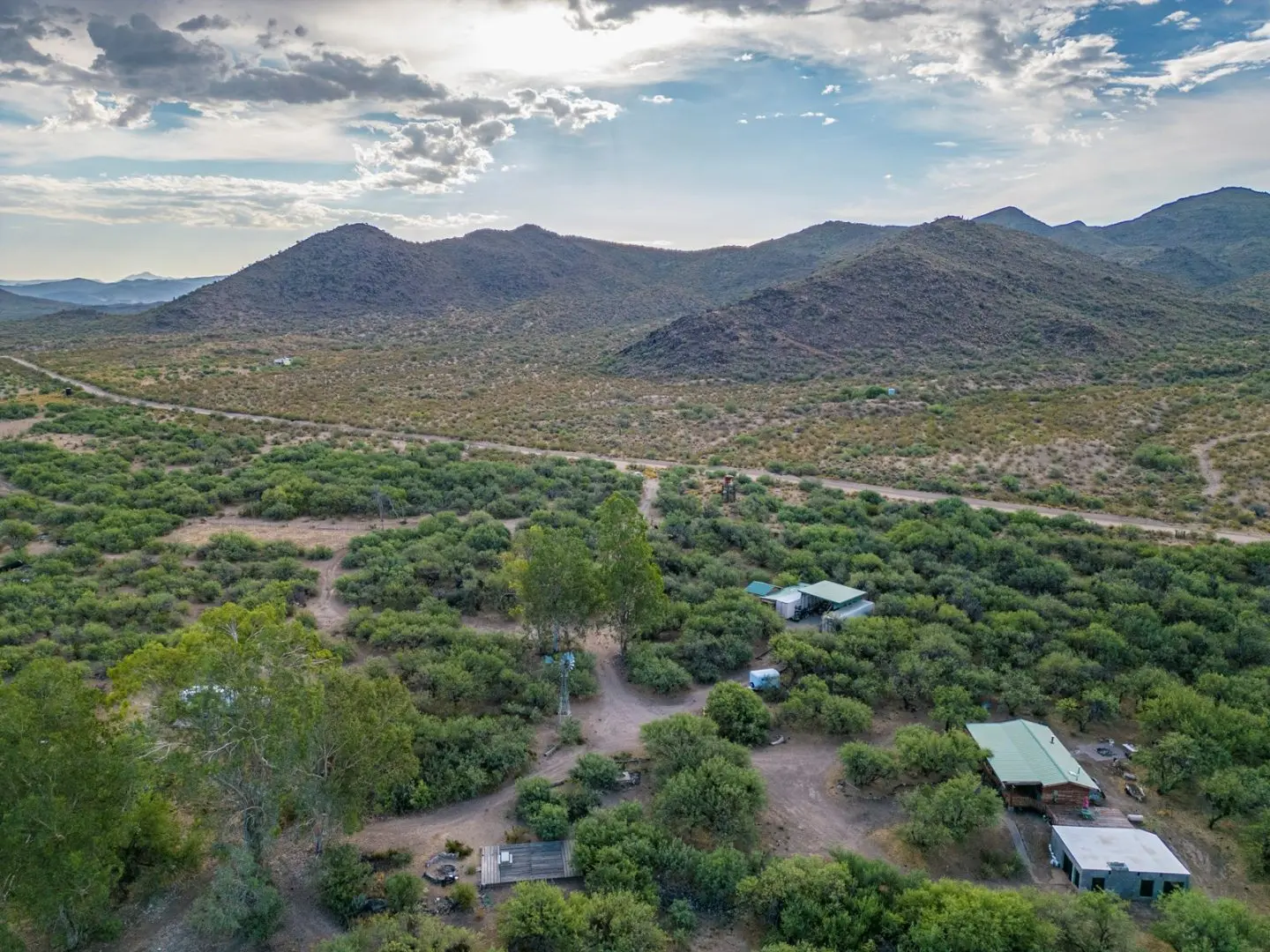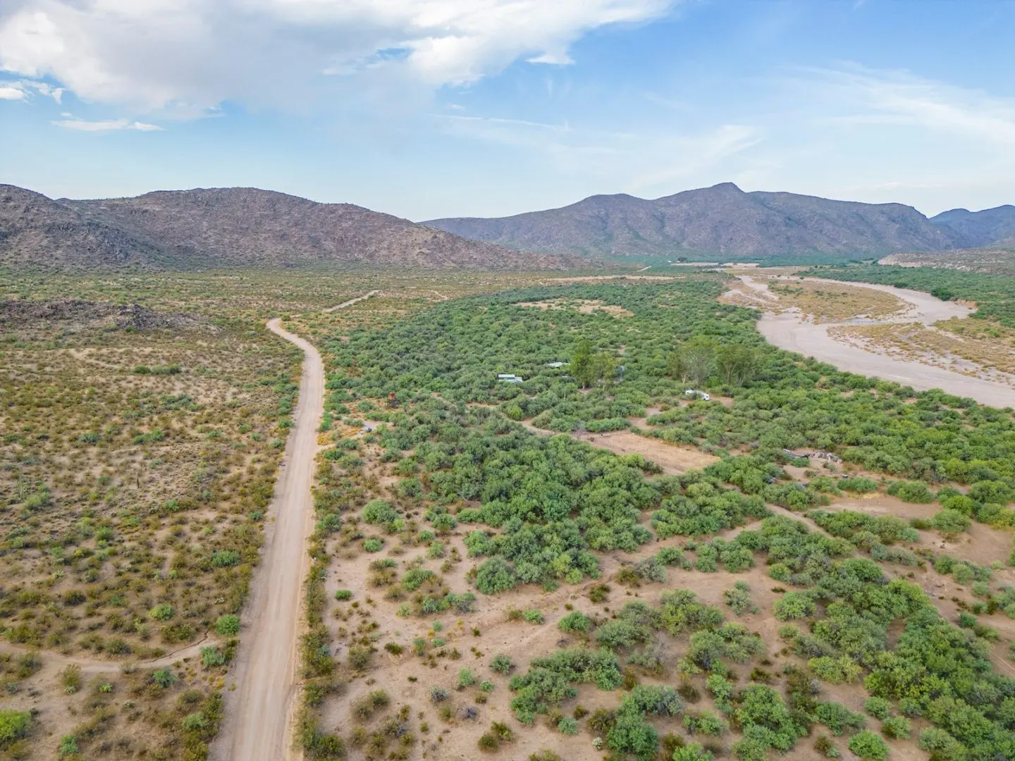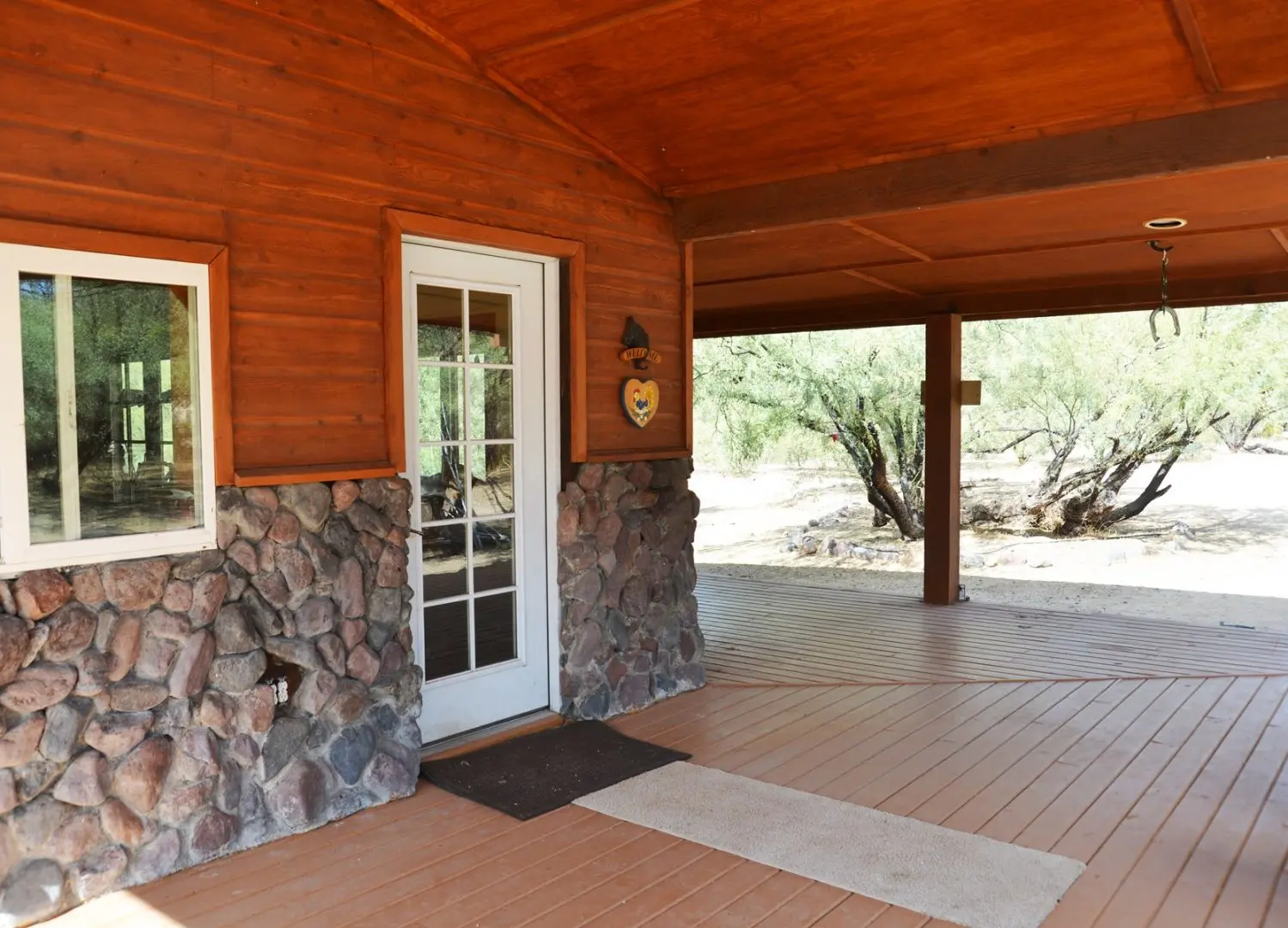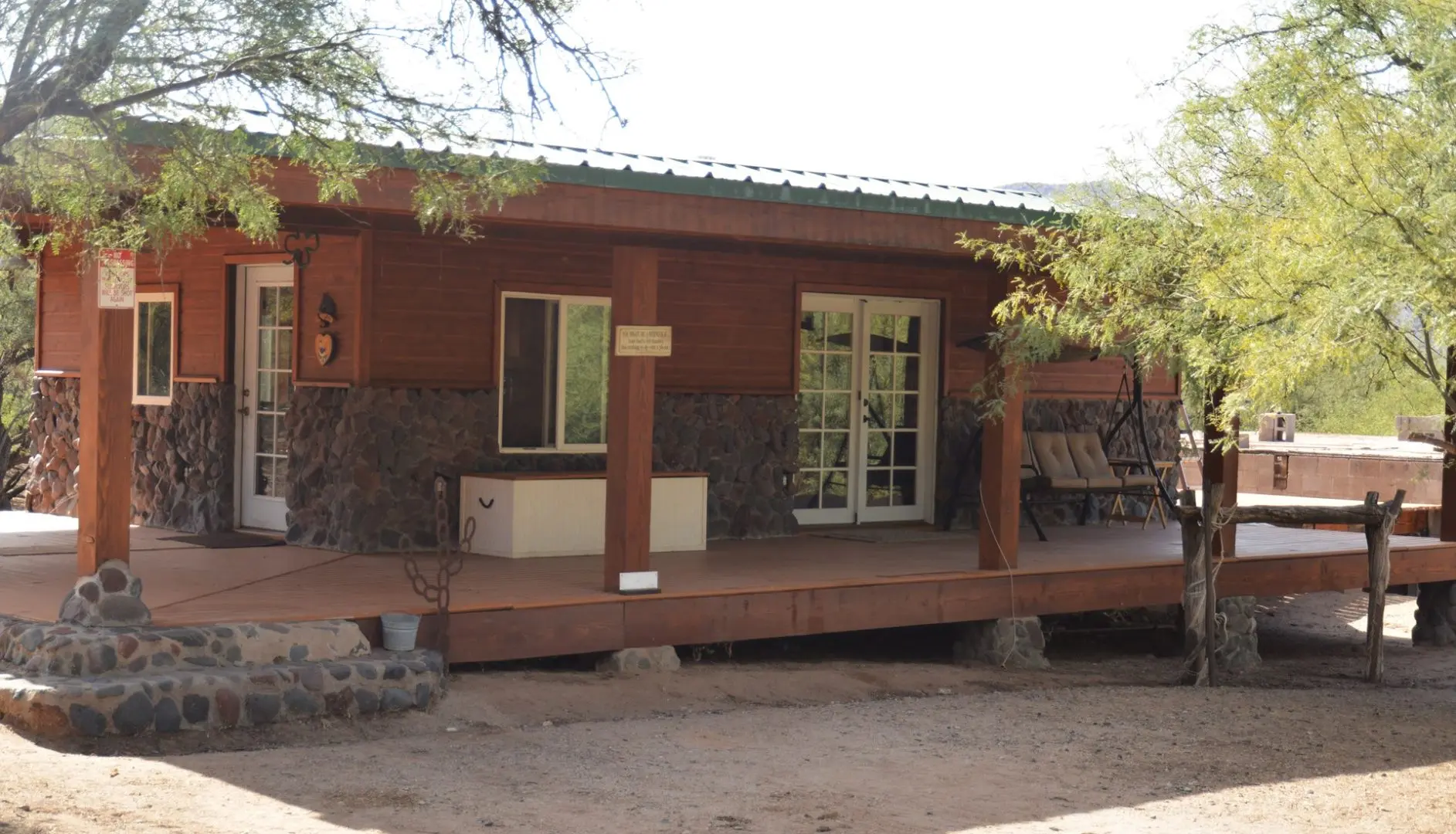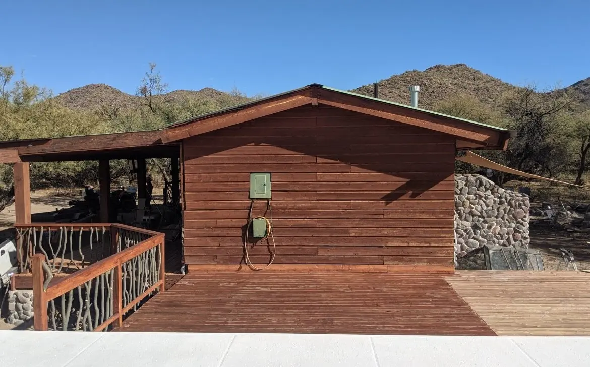 Stunning ranch in Hillside located northwest of Wickenburg AZ along the banks of the Santa Maria River. This unique ranch in Hillside offers a captivating blend of serene river frontage, seasonal surface running water, and a plethora of enticing features that will surely captivate any outdoor enthusiast or nature lover. As you enter the property, you’ll be greeted by the lush greenery of Eucalyptus trees, creating a tranquil atmosphere, a real oasis in the desert. The main dwelling on the property is a cozy and well-maintained home that has been thoughtfully designed to blend harmoniously with its surroundings.
