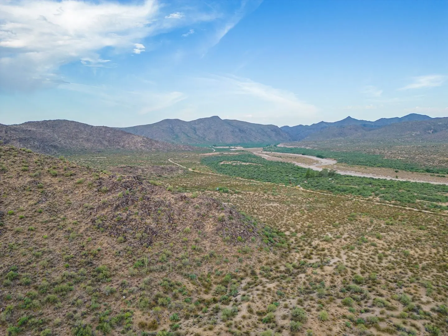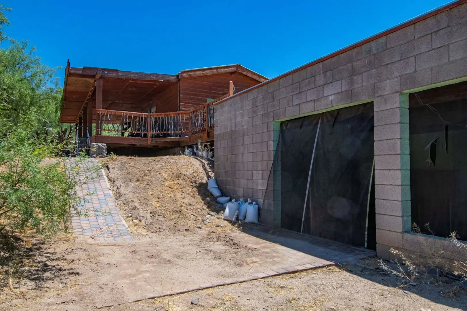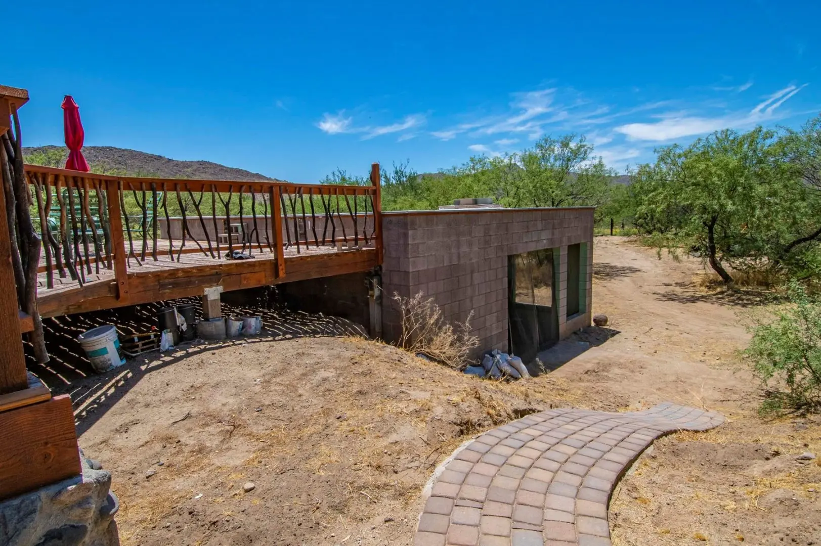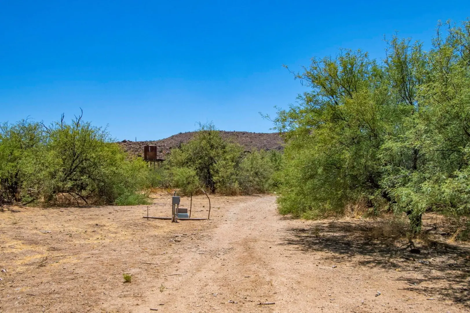 Stunning ranch in Hillside located northwest of Wickenburg AZ along the banks of the Santa Maria River. This unique ranch in Hillside offers a captivating blend of serene river frontage, seasonal surface running water, and a plethora of enticing features that will surely captivate any outdoor enthusiast or nature lover. As you enter the property, you’ll be greeted by the lush greenery of Eucalyptus trees, creating a tranquil atmosphere, a real oasis in the desert. The main dwelling on the property is a cozy and well-maintained home that has been thoughtfully designed to blend harmoniously with its surroundings.