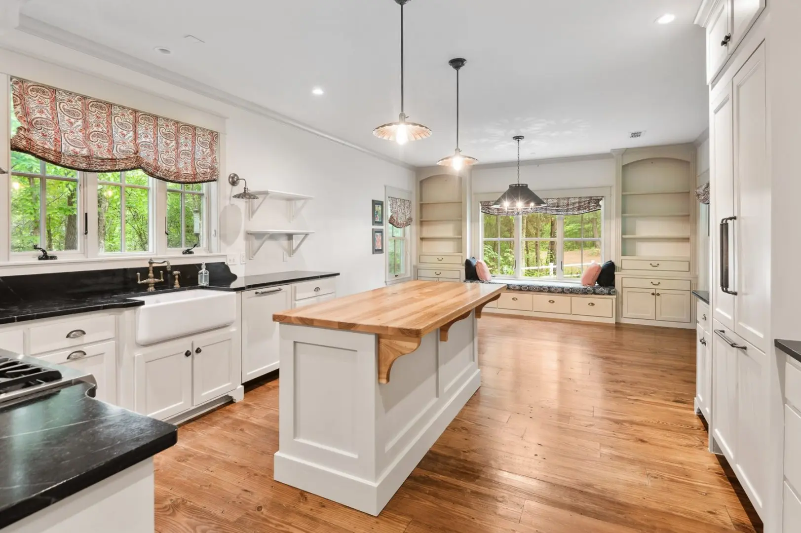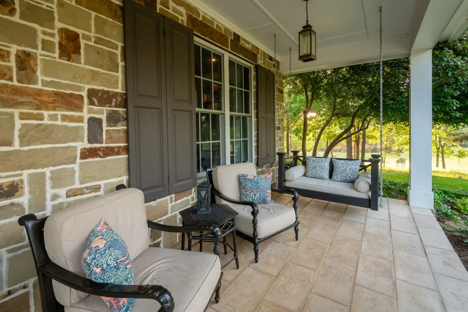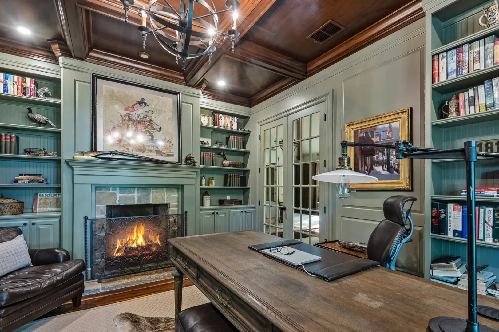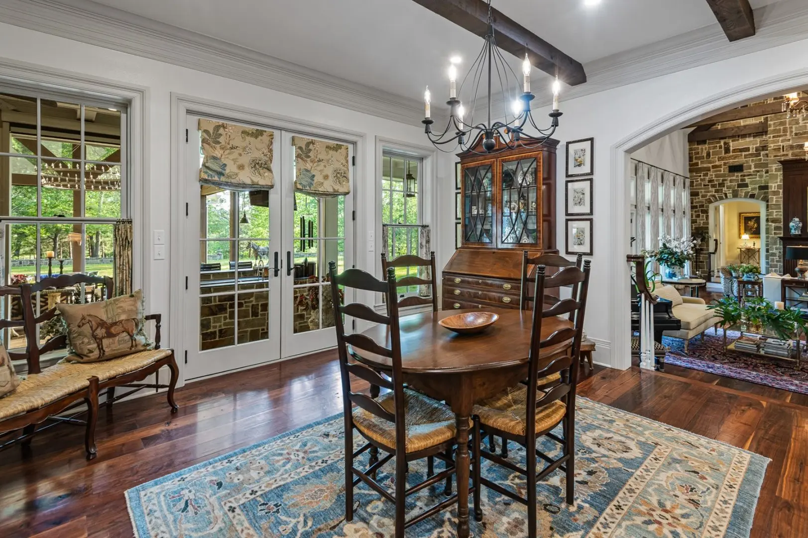 Complementing the main house is a 2,147 SF guest home featuring vaulted ceilings, a stone fireplace, a wraparound porch, and a screened-in porch, which creates an inviting atmosphere for guests or caretaker’s home. Outdoor entertainment and living areas include a back patio with a stone fireplace, a wood-burning pizza oven, and a landscaped garden. A custom chicken house adds a unique flair.