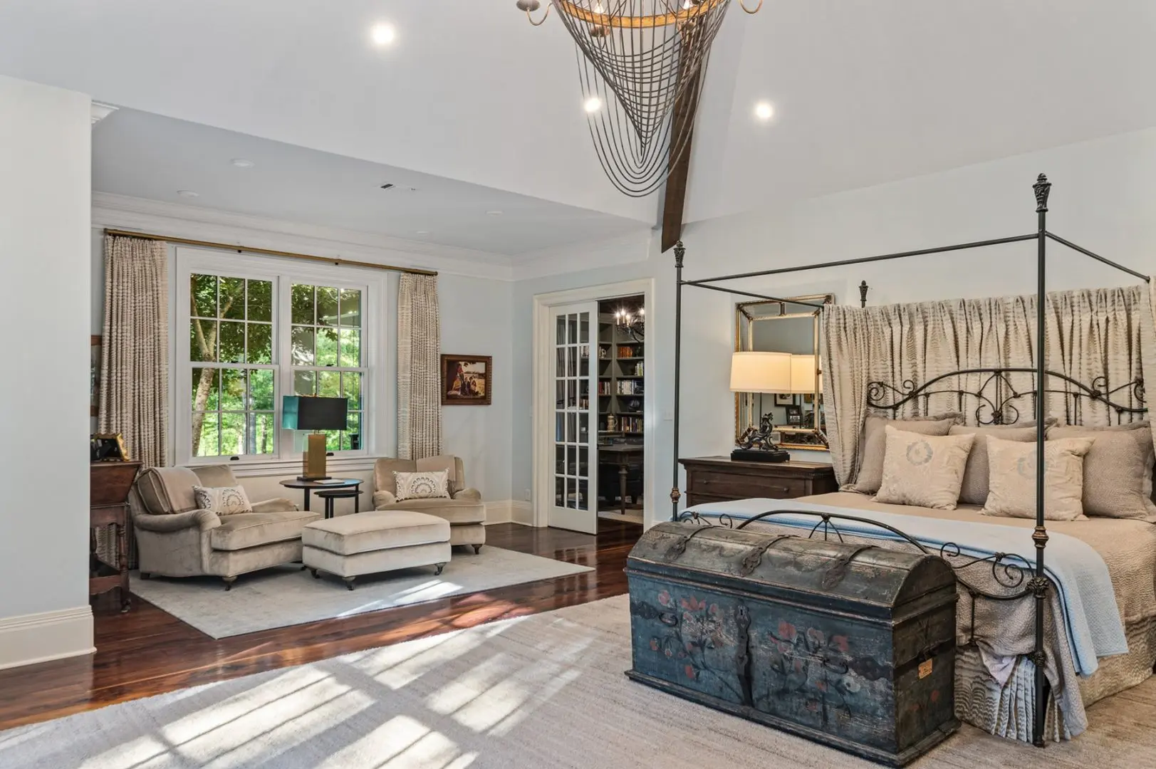 At the heart of the estate is a stunning 5,820 SF Texas ranch home built with a keen eye for detail and craftsmanship. This home boasts modern luxuries while retaining classic elegance set apart by antique walnut floors, walnut coffered ceilings, a state-of-the-art kitchen with a hidden pantry, a sizable LaCanche range, and a custom dining room. The deluxe primary suite with impressive land views, a well-equipped laundry room, and office space with a fireplace create a balance of comfort and functionality.