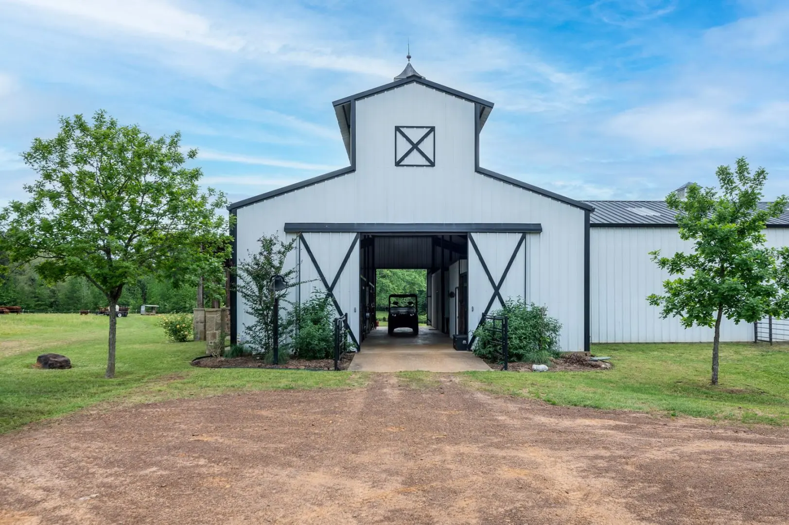 This unique East Texas ranch benefits from its proximity to major Texas cities—it is located 120 miles east of Dallas and 170 miles north of Houston. This strategic location offers convenient access to metroplex amenities, events, and major airports, including Dallas-Fort Worth International (DFW), Dallas Love Field (DAL), Bush Intercontinental Airport (IAH), and William P. Hobby Airport (HOU). Regional airports like Tyler Pounds Regional Airport (TYR) and East Texas Regional Airport near Longview (GGG) are just a short drive away, offering direct flights to Dallas-Fort Worth.