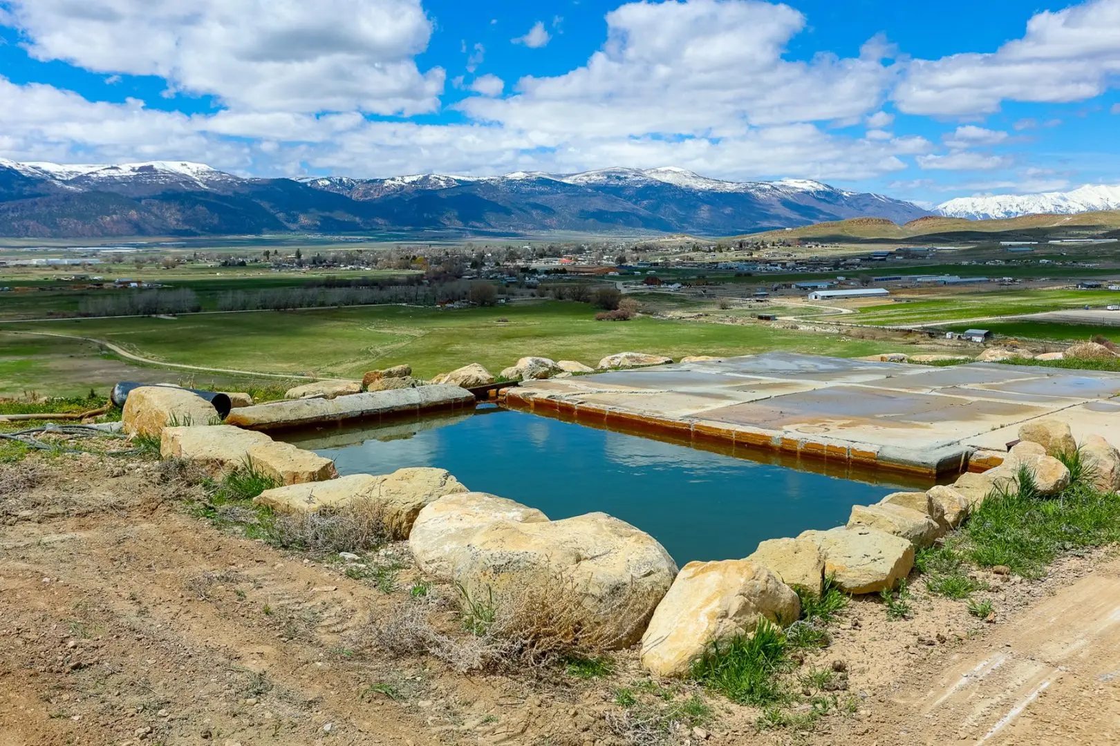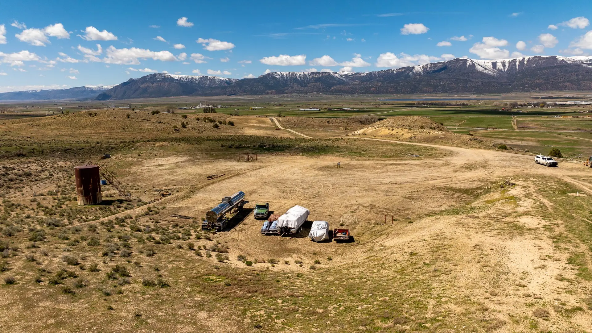 The property has creek water rights and also has historically used the water well production to irrigate approximately 35 acres of land for alfalfa and hay production. These fields are watered from the 8″ water line with risers, utilizing side roll sprinkler systems. The balance of the property is in low rolling hills that have beautiful views of the surrounding mountain ranges. Access is good via main county roads, and the well has a high enough flow to provide domestic water for hundreds of homes. This property is only 1.5 hours south of Salt Lake City and the climate is pleasant.