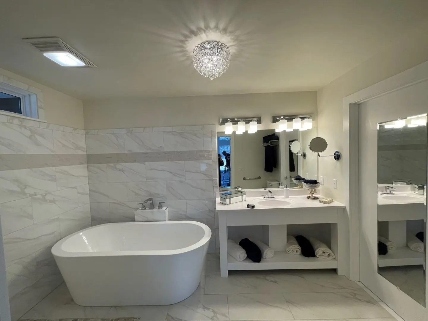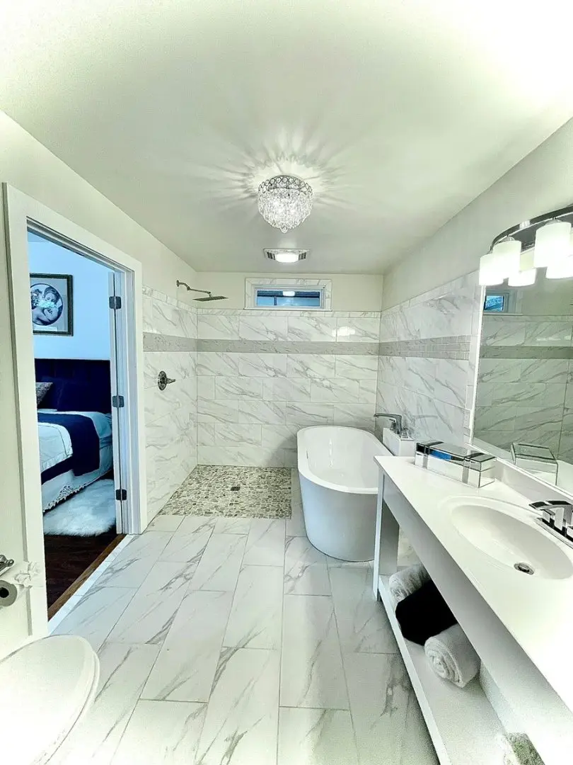 - The recently added honeymoon suite (2019) features a separate entrance, electric fireplace with heat, large transom windows, and open shower.
